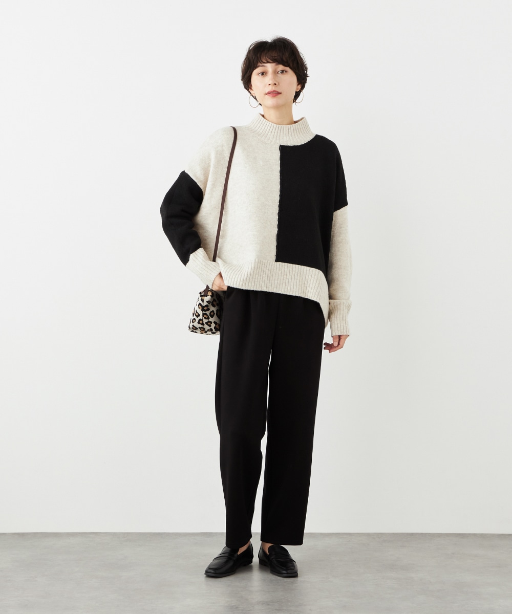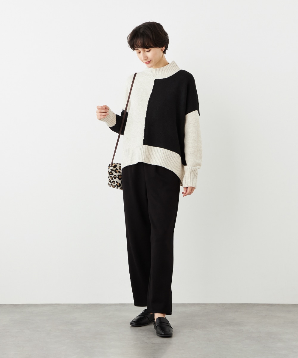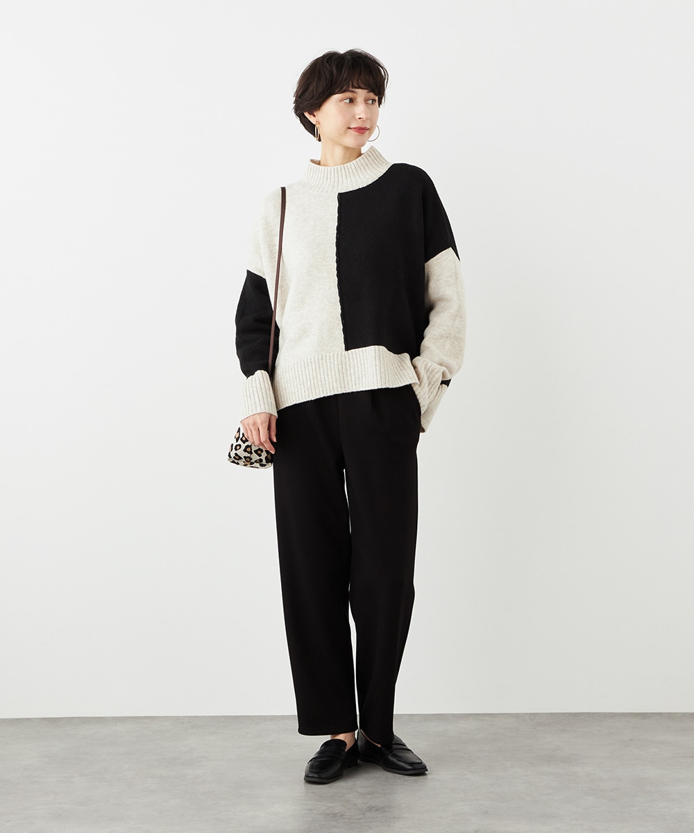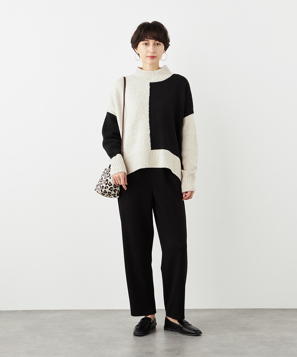 デザインはごくシンプルにまとまり、幅広く活用できます。ストレッチが効いて動きやすく、普段使いにもぴったりです。ウエストは両サイドからバックにかけてゴム仕様で、フィット感良く着用できます。チュニック丈のニットと合わせるのがおすすめのコーディネートです。