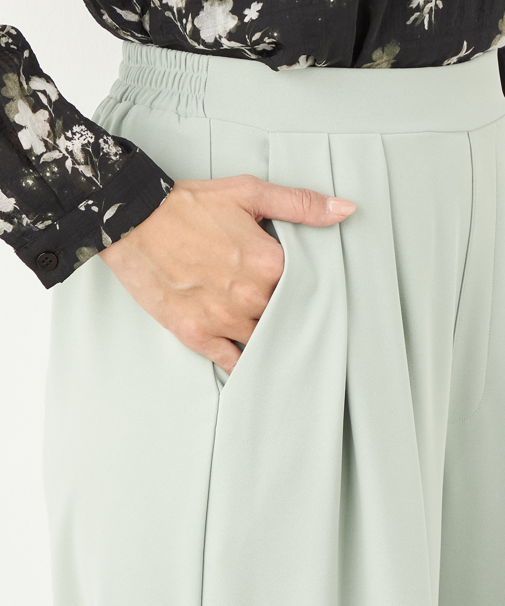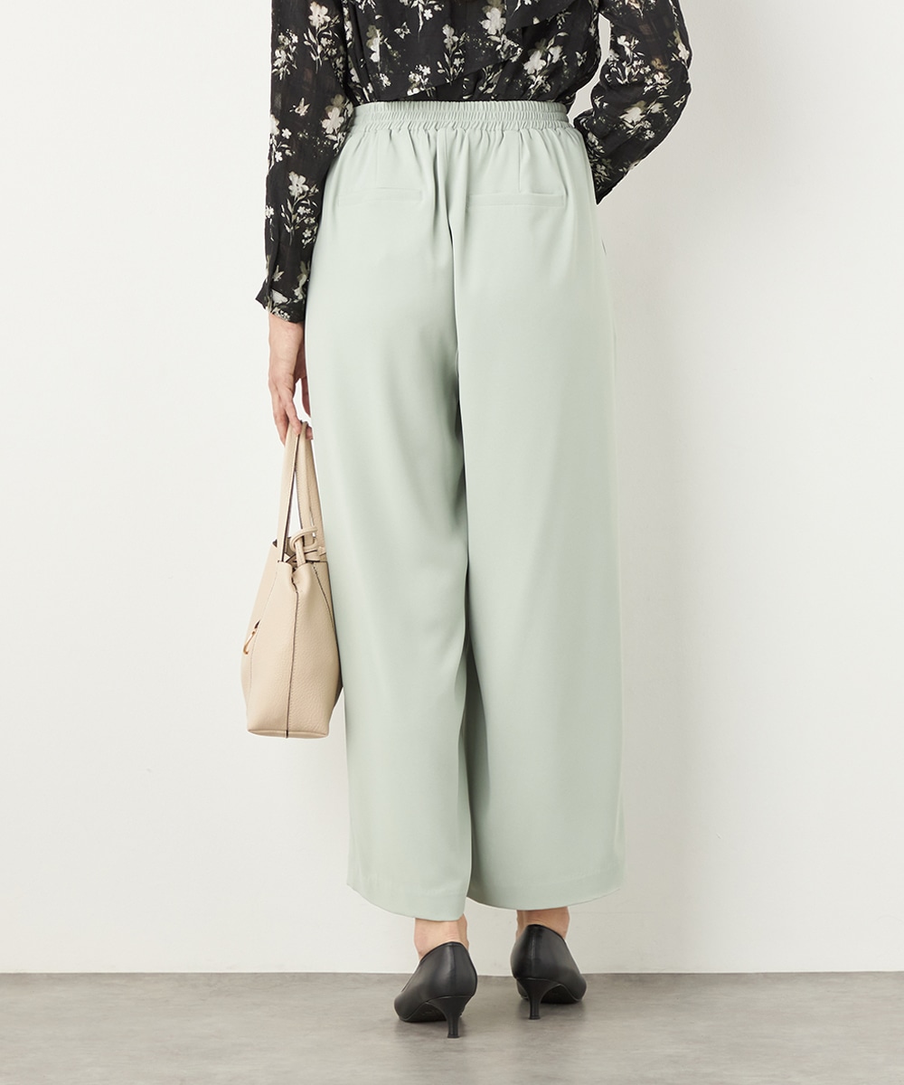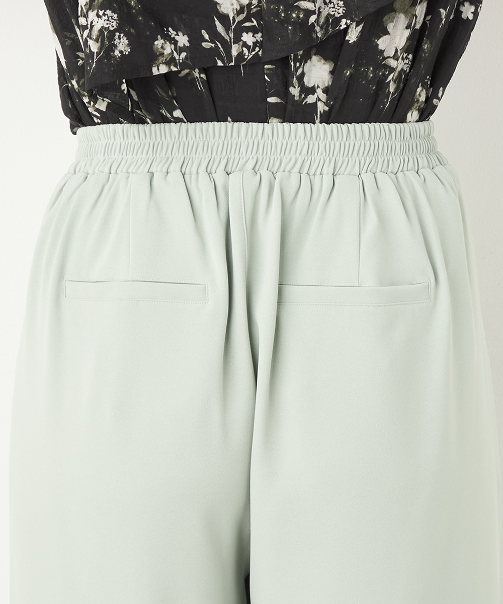 トップスや足元のアレンジ次第でオンオフを問わず取り入れられる便利なアイテムです。今季のトレンドカラーであるグリーンは、コーディネートの差し色としても重宝します。後ろウエストはゴム仕様でフィット感良く着用できます。