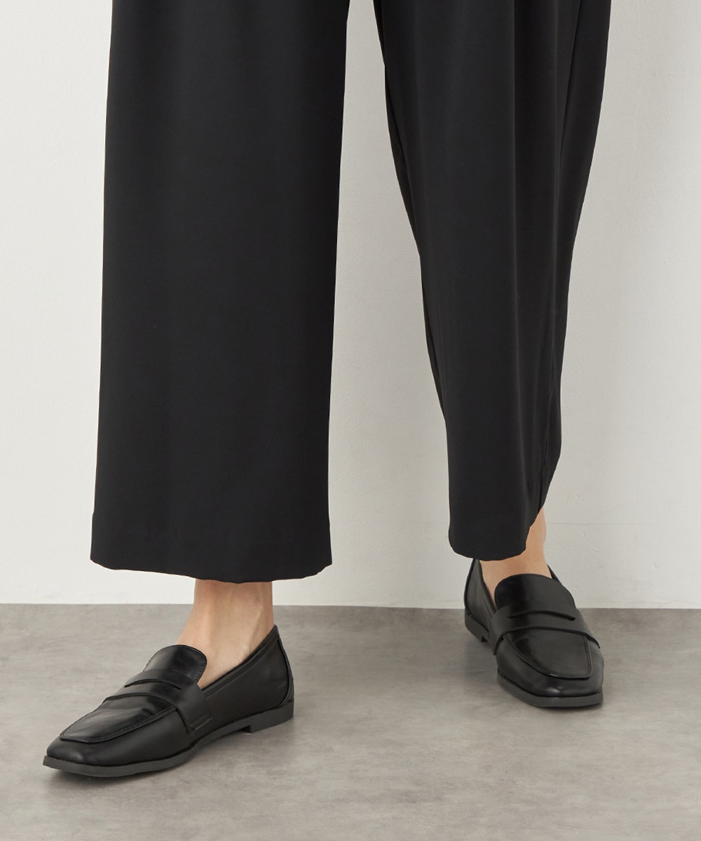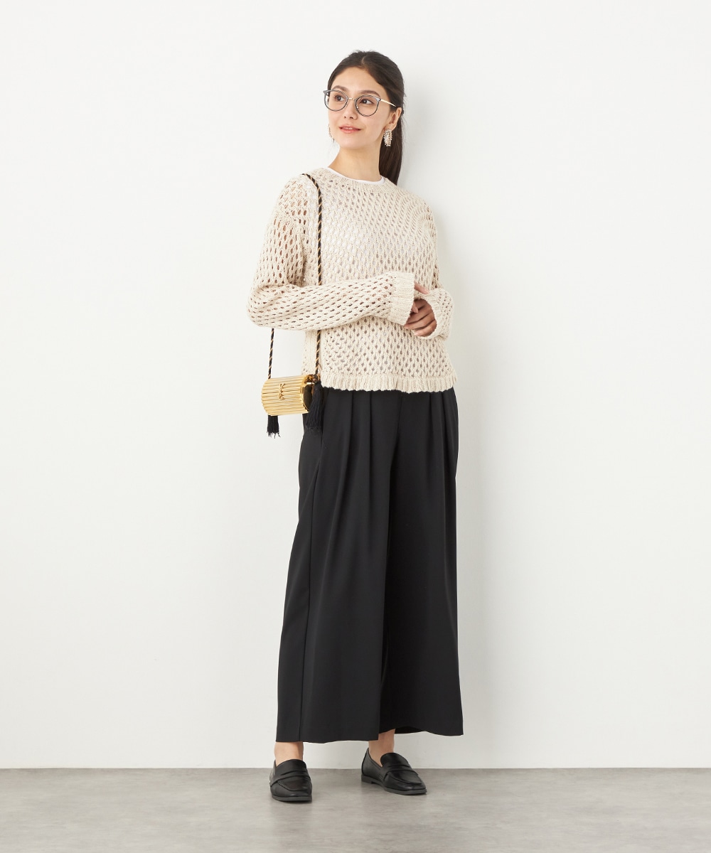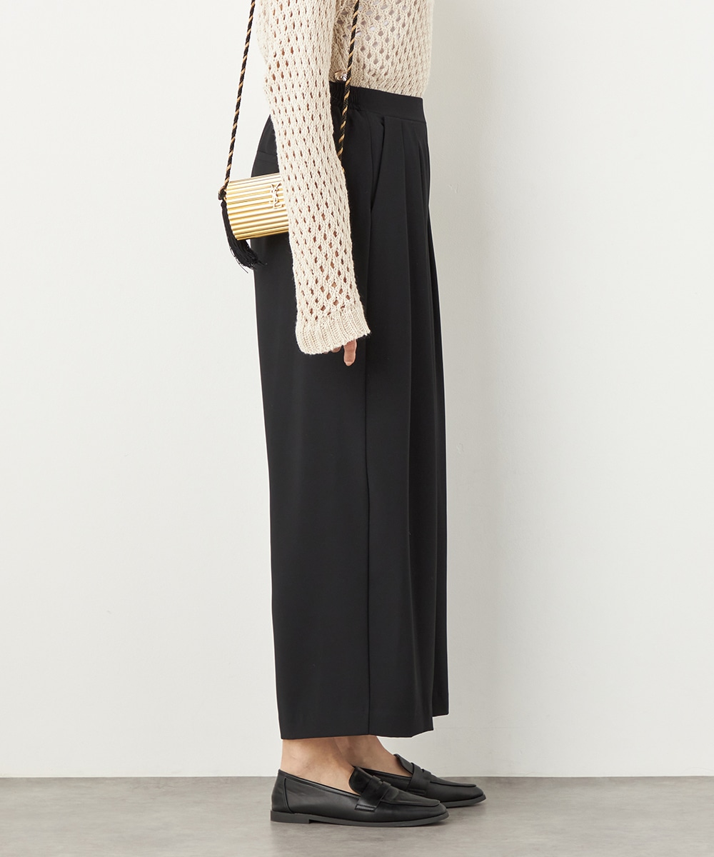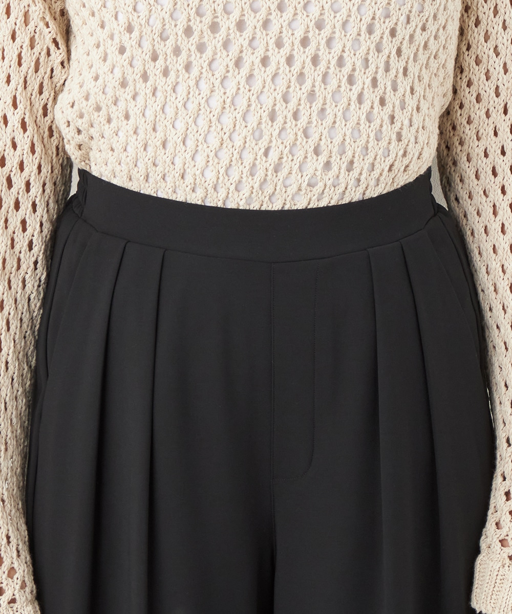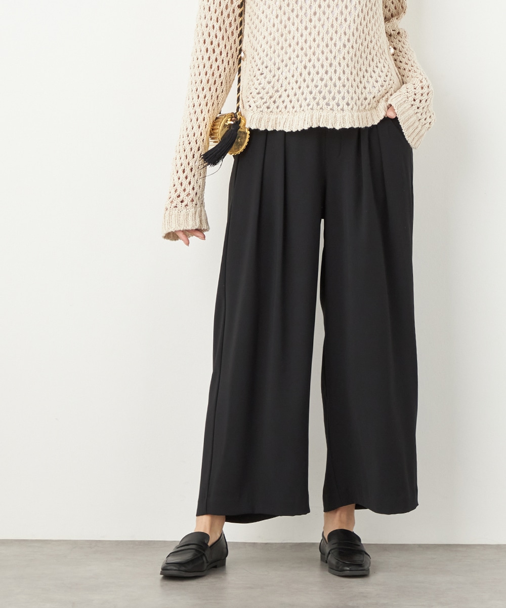 トップスや足元のアレンジ次第でオンオフを問わず取り入れられる便利なアイテムです。コーディネート全体を引き締めてくれるシックなブラックは、すっきりとした着こなしを叶えてくれます。後ろウエストはゴム仕様でフィット感良く着用できます。