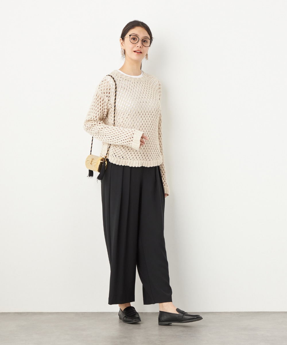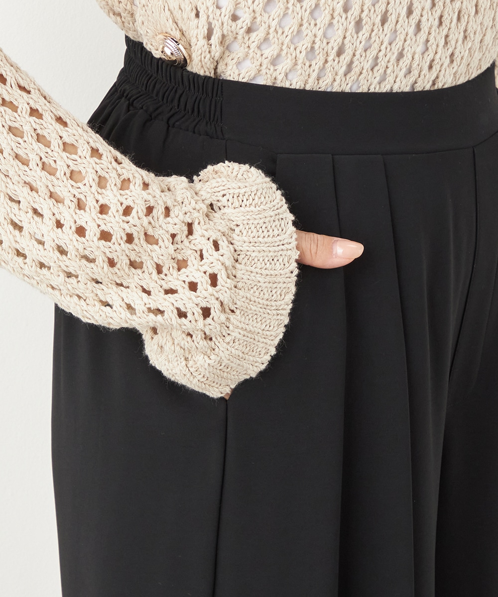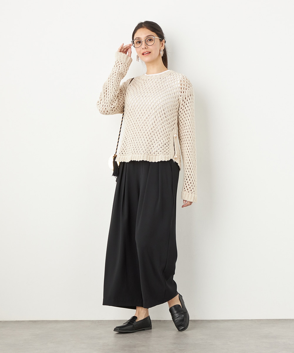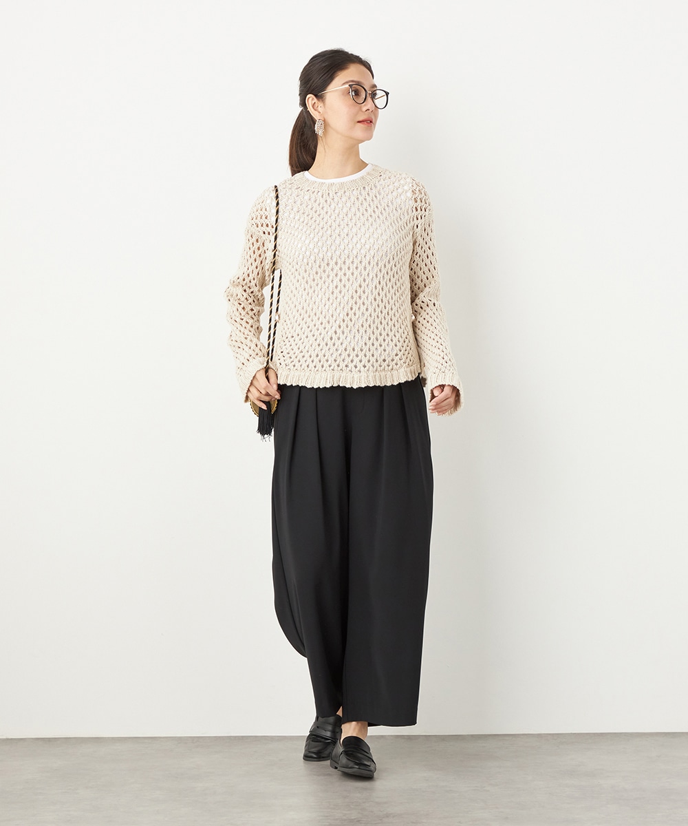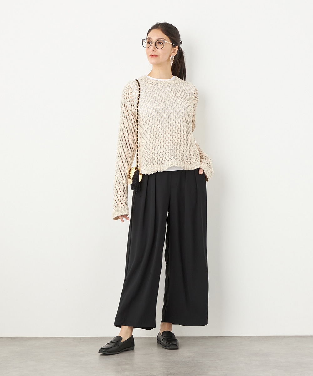 トップスや足元のアレンジ次第でオンオフを問わず取り入れられる便利なアイテムです。コーディネート全体を引き締めてくれるシックなブラックは、すっきりとした着こなしを叶えてくれます。後ろウエストはゴム仕様でフィット感良く着用できます。
