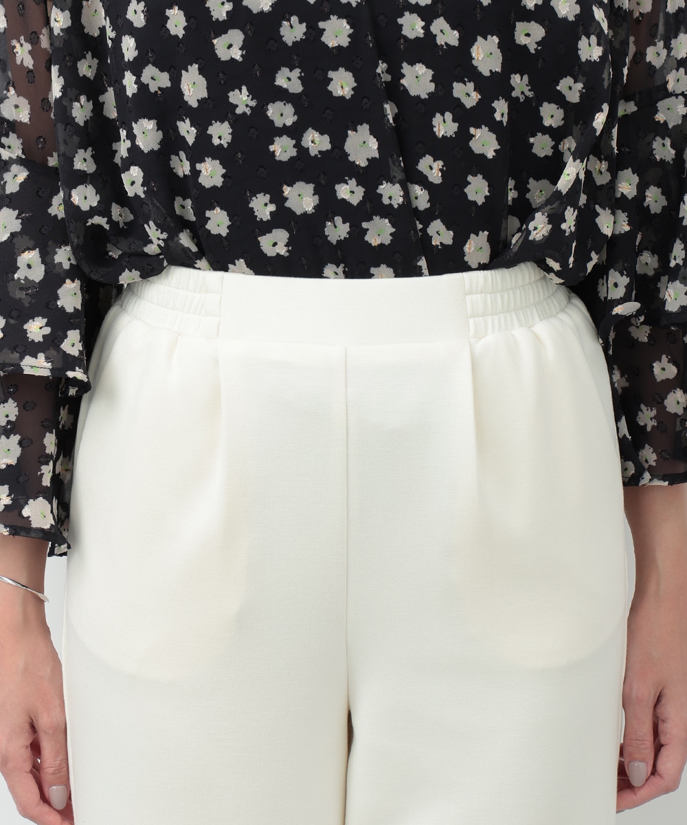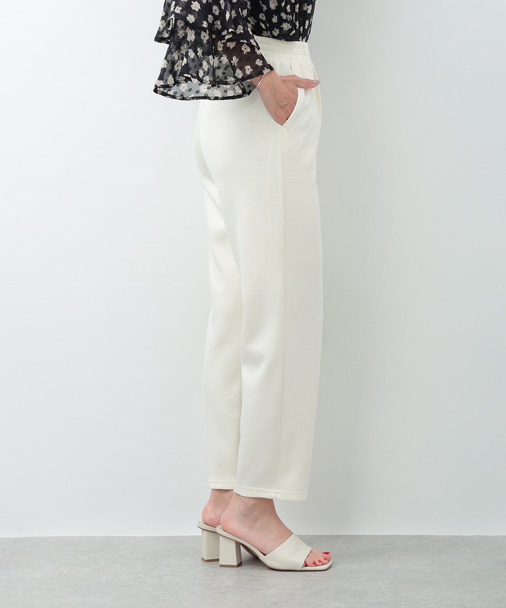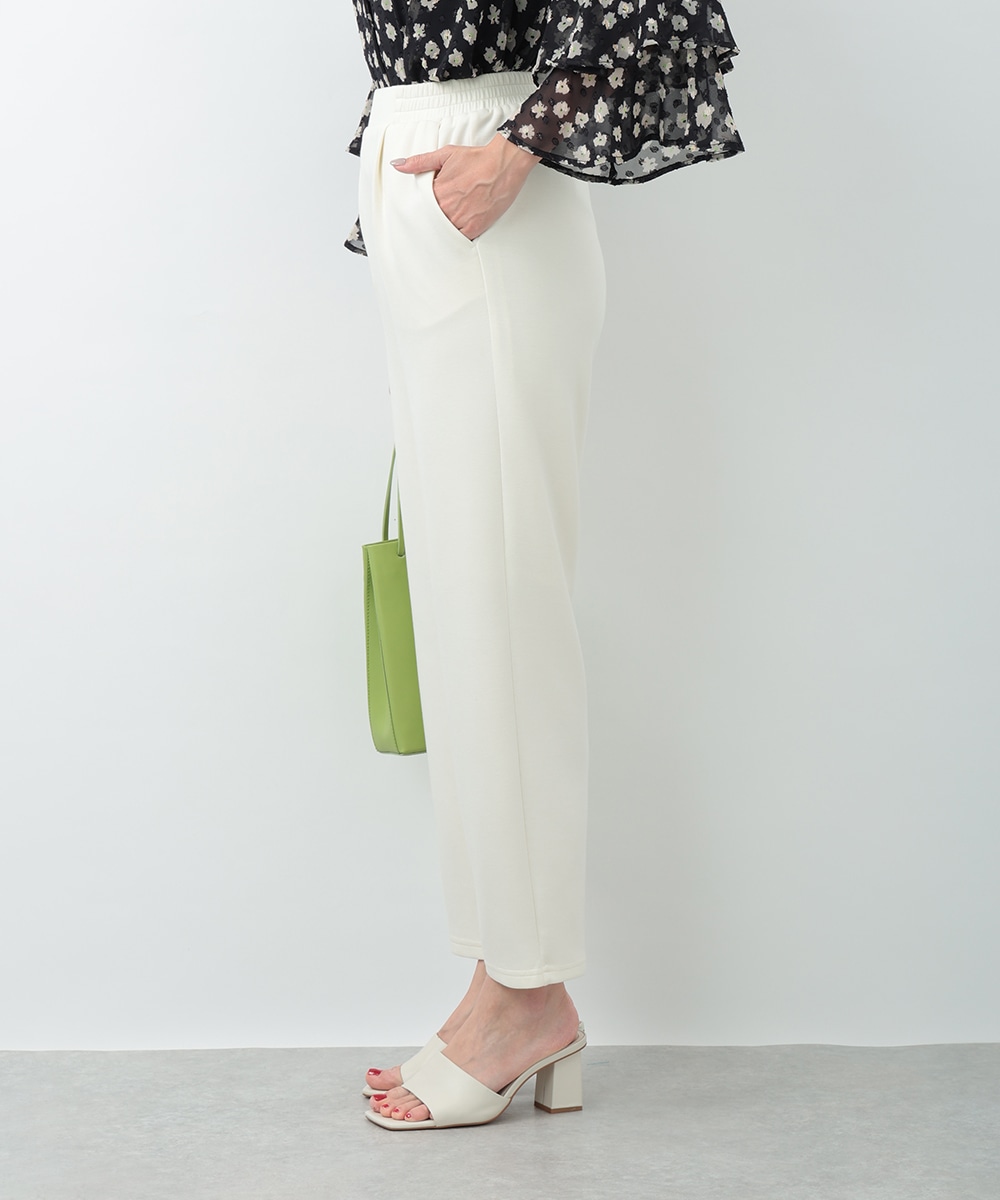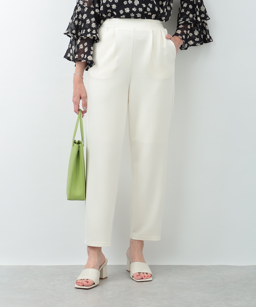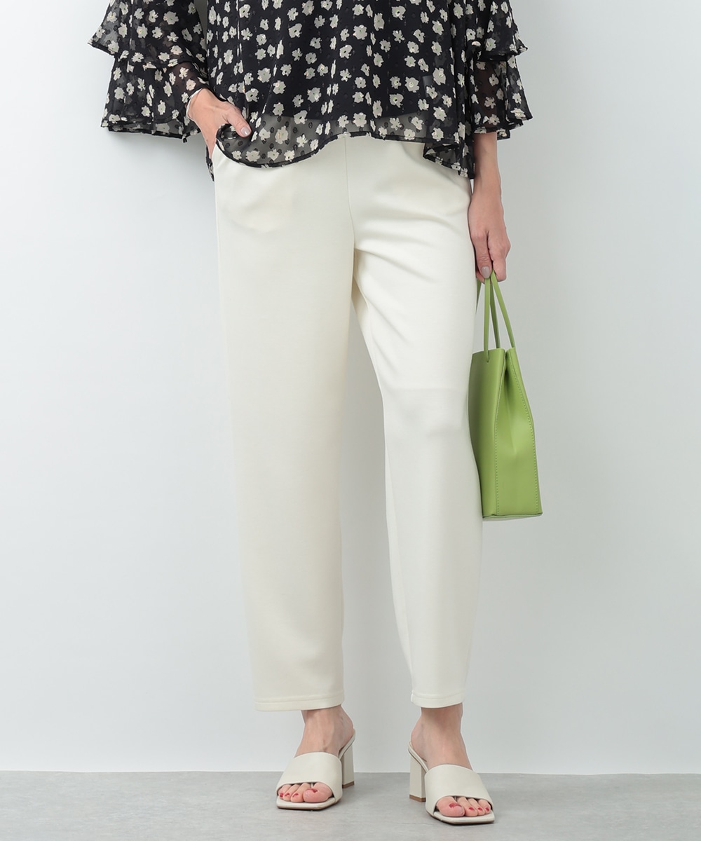 程よいハリと落ち感のある素材感が魅力のイージーパンツ。すっきりとしたシルエットで、リラックス感がありながらもきれいめに着こなせる一着です。ウエストはフィット感のある仕様で、快適な穿き心地を実現。オンオフ問わず活躍する、着回し力の高い万能アイテムです。ブラウスで上品に、Tシャツでカジュアルにと幅広く楽しめます。