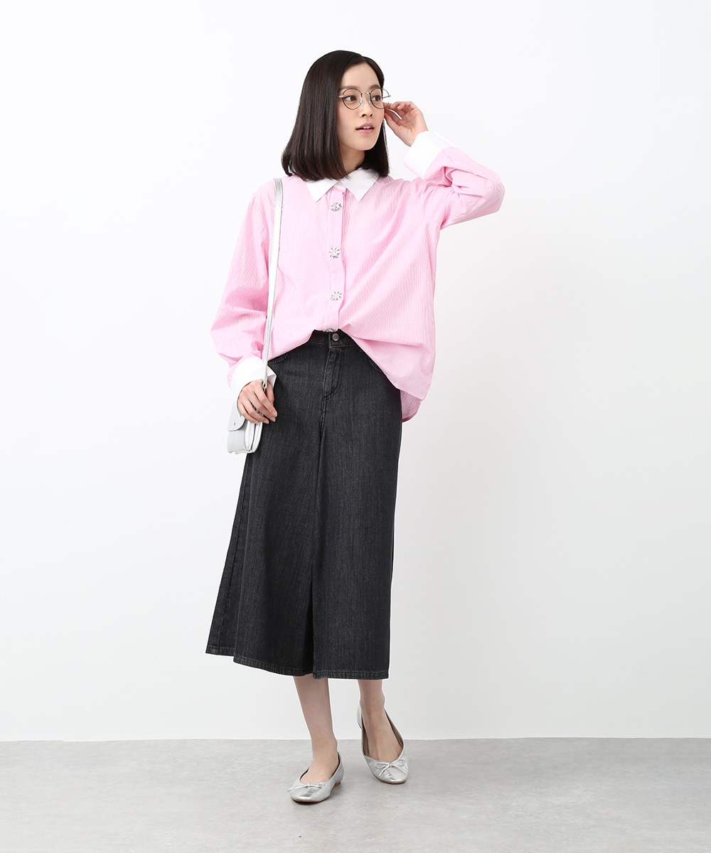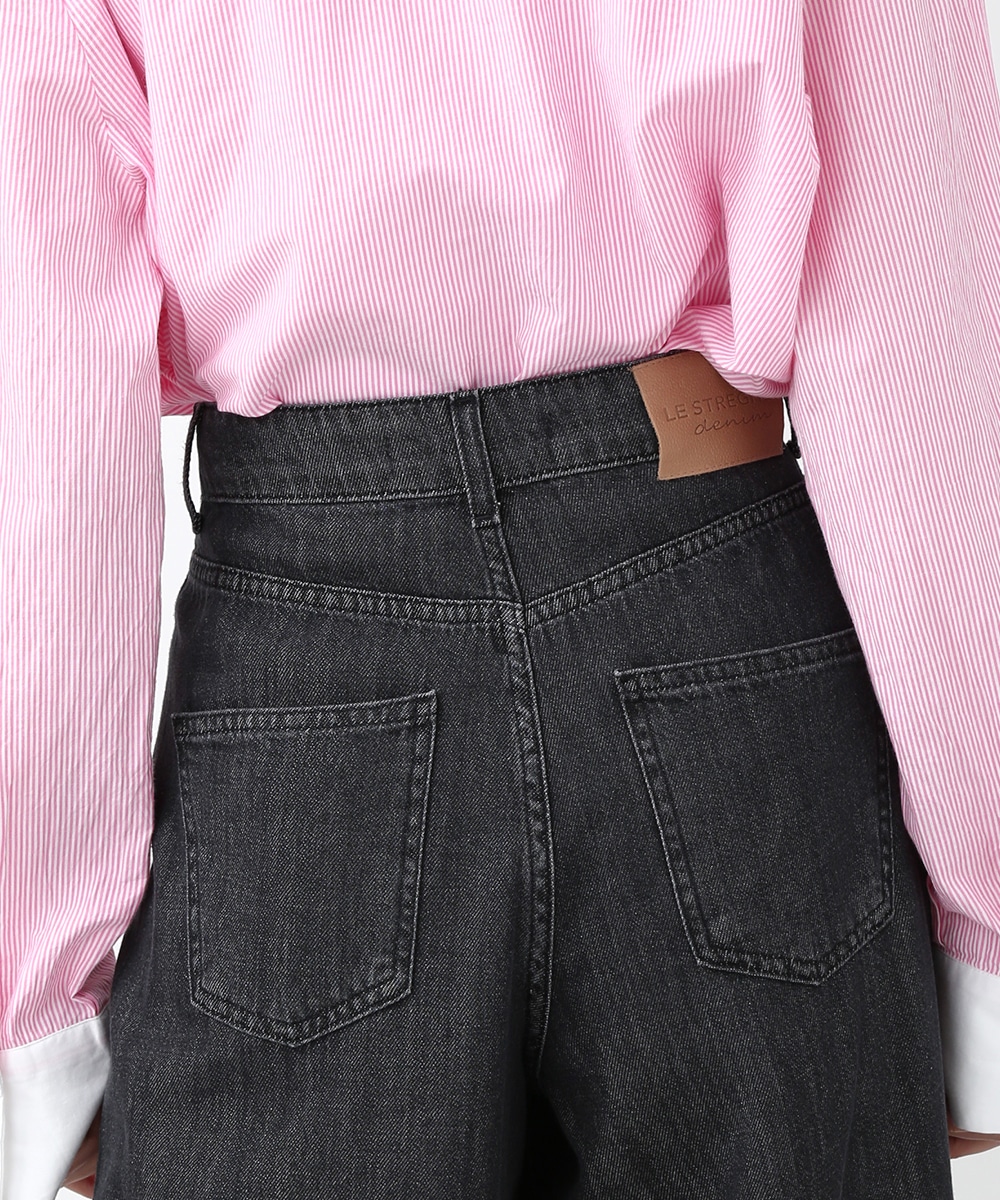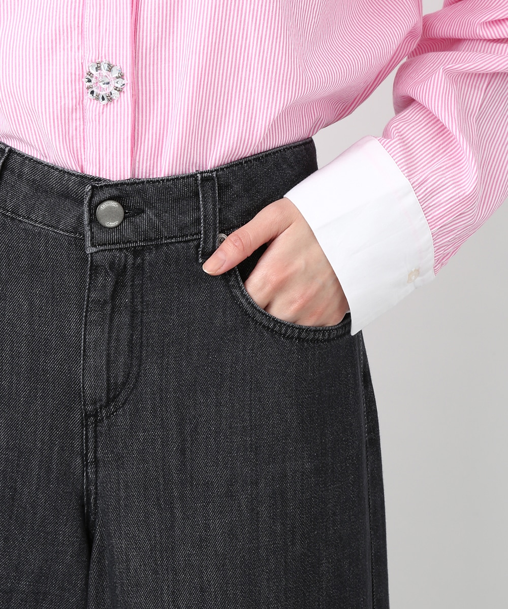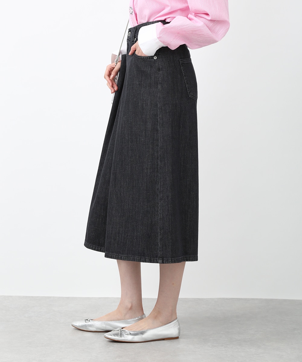 グレーカラーのデニムで仕立てたワイドキュロット。フレアに広がるシルエットが、カジュアルな中にやわらかな印象をプラスします。膝下丈でバランスが取りやすく、足元の合わせ次第で幅広いスタイリングが楽しめるのもポイント。シャツをインしてウエストまわりをすっきり見せ、程よくメリハリのある着こなしもおすすめです。