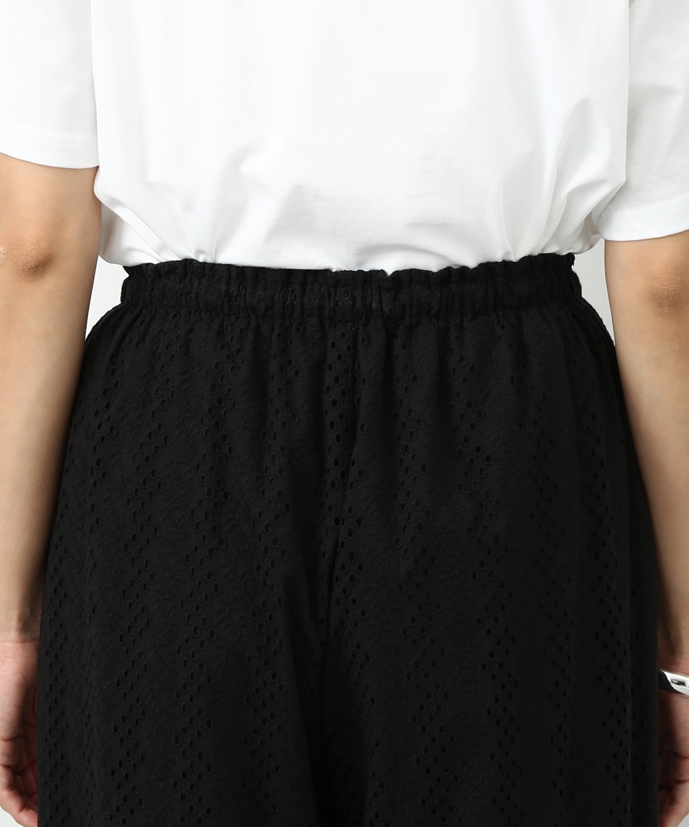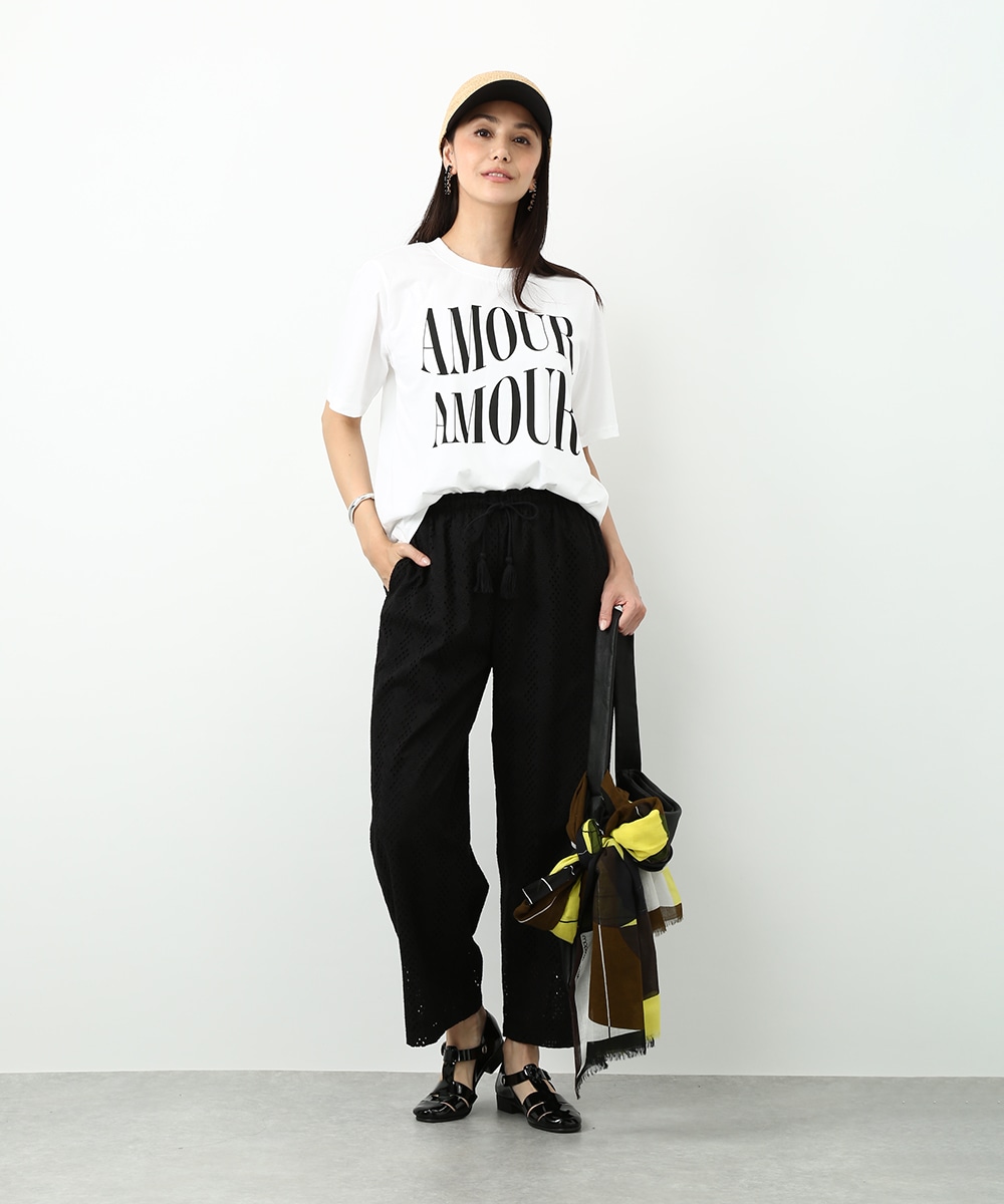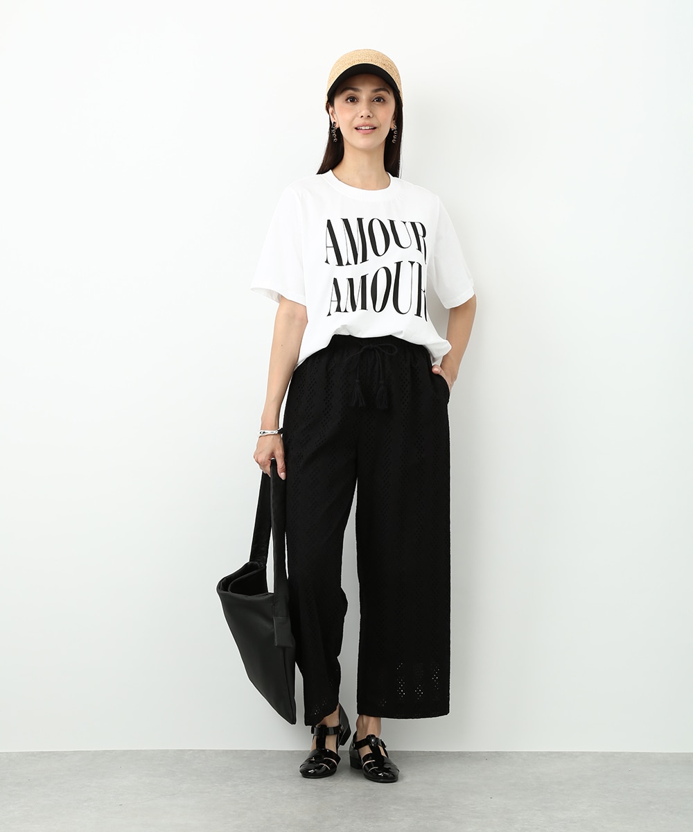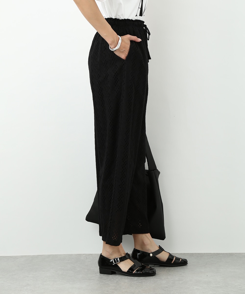 贅沢にアイレット刺繍を施したコットン100%素材のパンツ。通気性のよいナチュラルな風合いで、涼しく取り入れやすい仕上がりです。ロゴTを合わせてラフさをプラスしつつ、刺繍の表情で大人カジュアルにまとめた着こなしもおすすめです。シンプルな中にさりげない華やかさを加えてくれます。