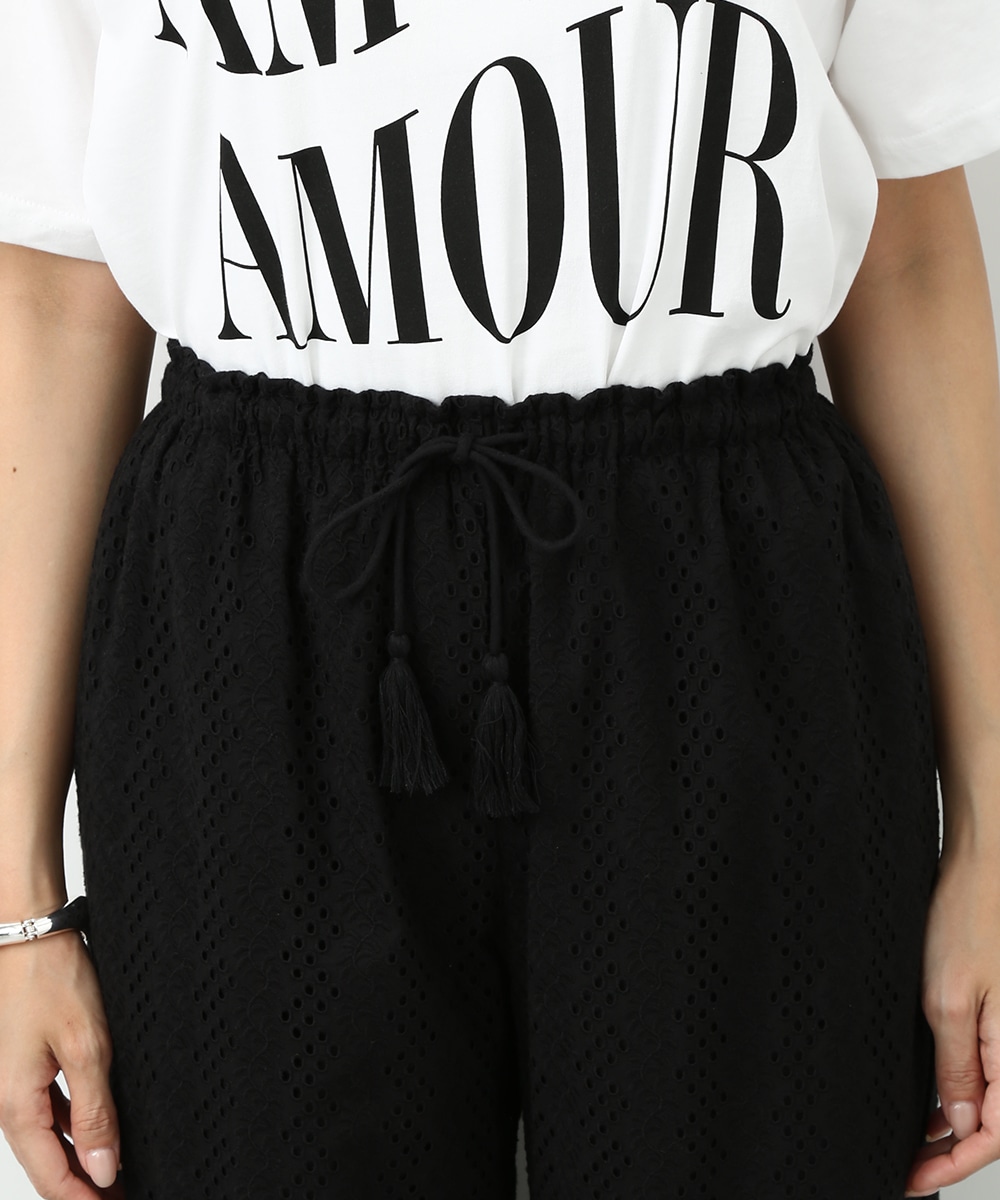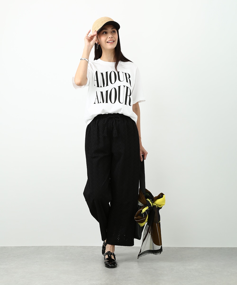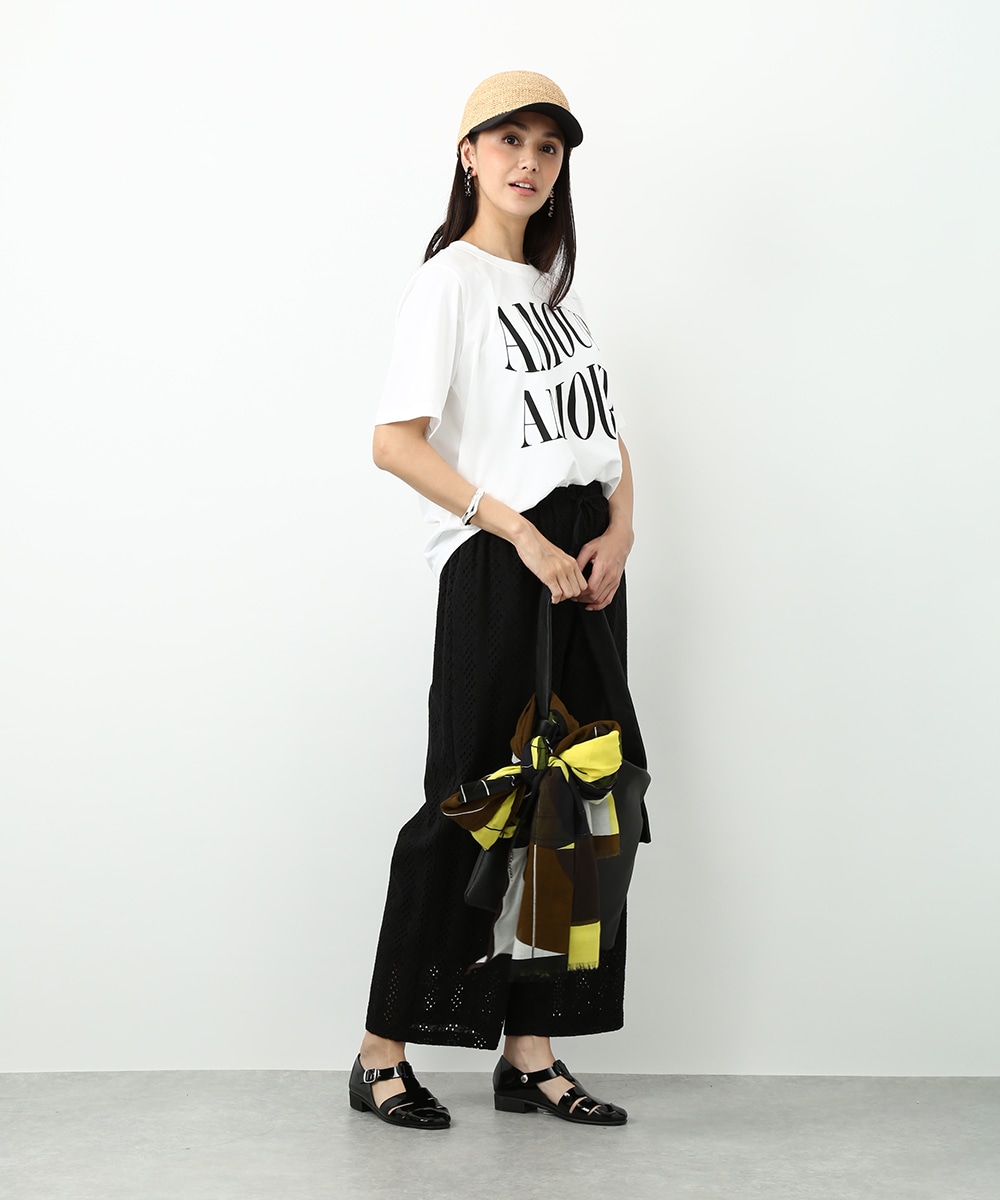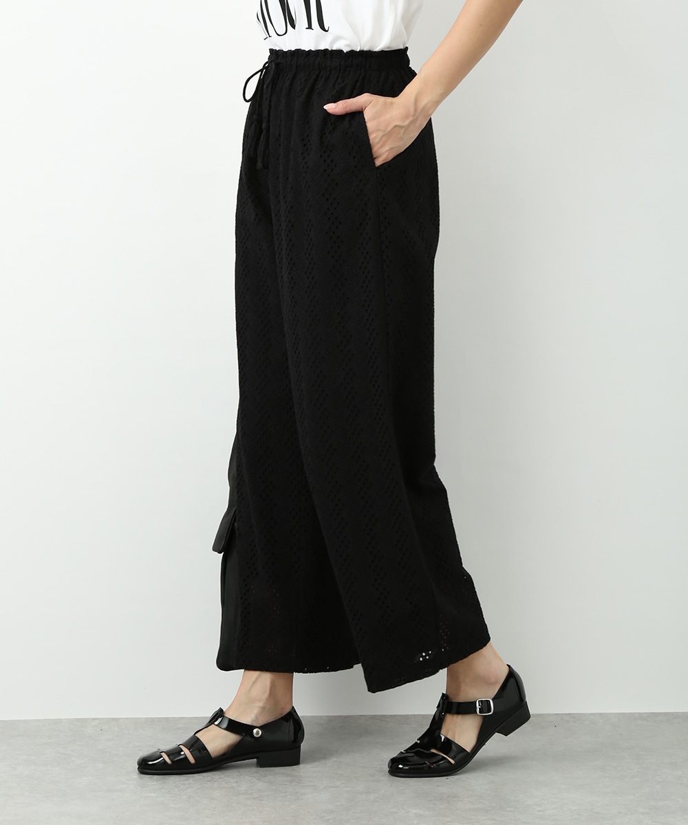 贅沢にアイレット刺繍を施したコットン100%素材のパンツ。通気性のよいナチュラルな風合いで、涼しく取り入れやすい仕上がりです。ロゴTを合わせてラフさをプラスしつつ、刺繍の表情で大人カジュアルにまとめた着こなしもおすすめです。シンプルな中にさりげない華やかさを加えてくれます。