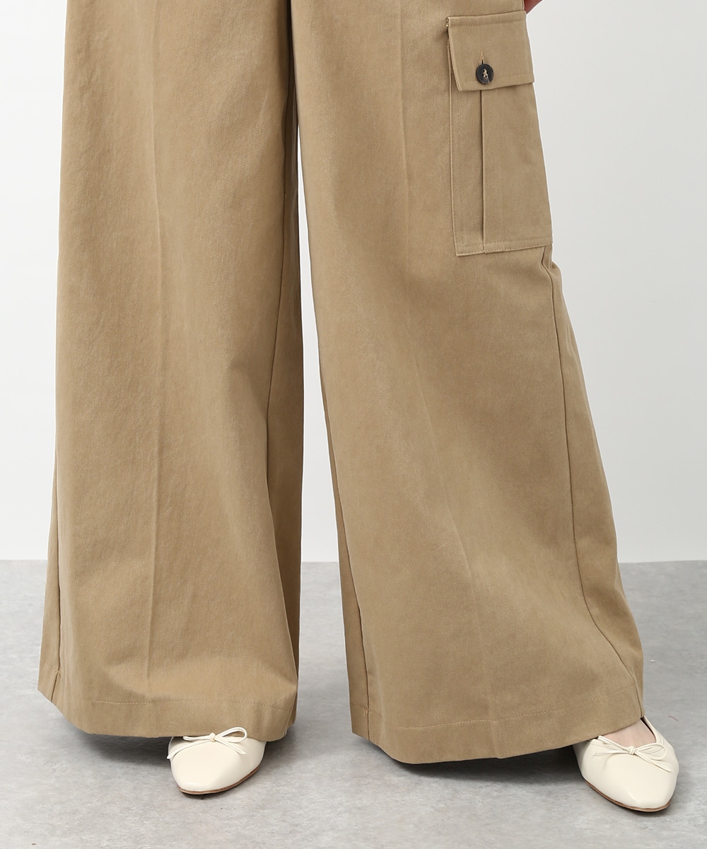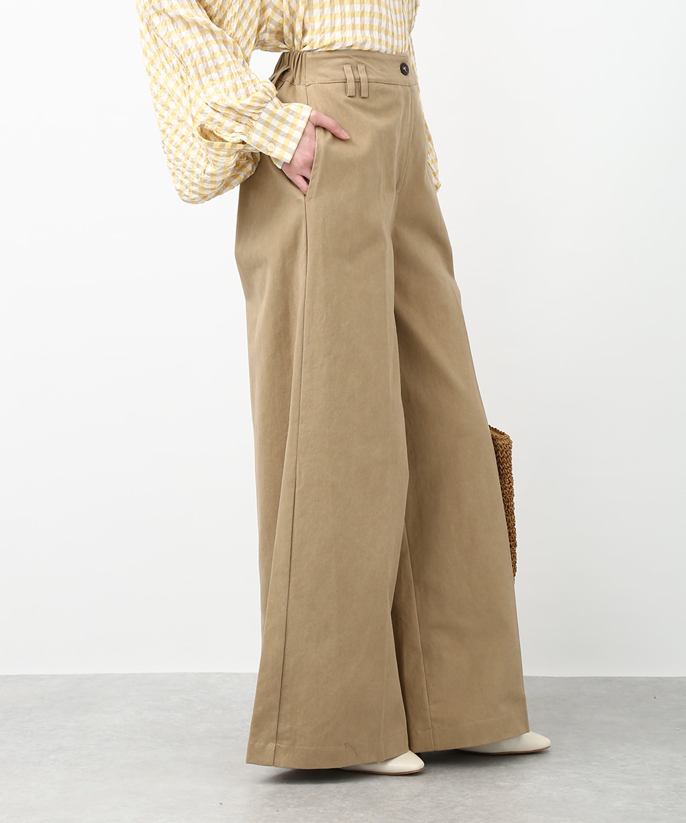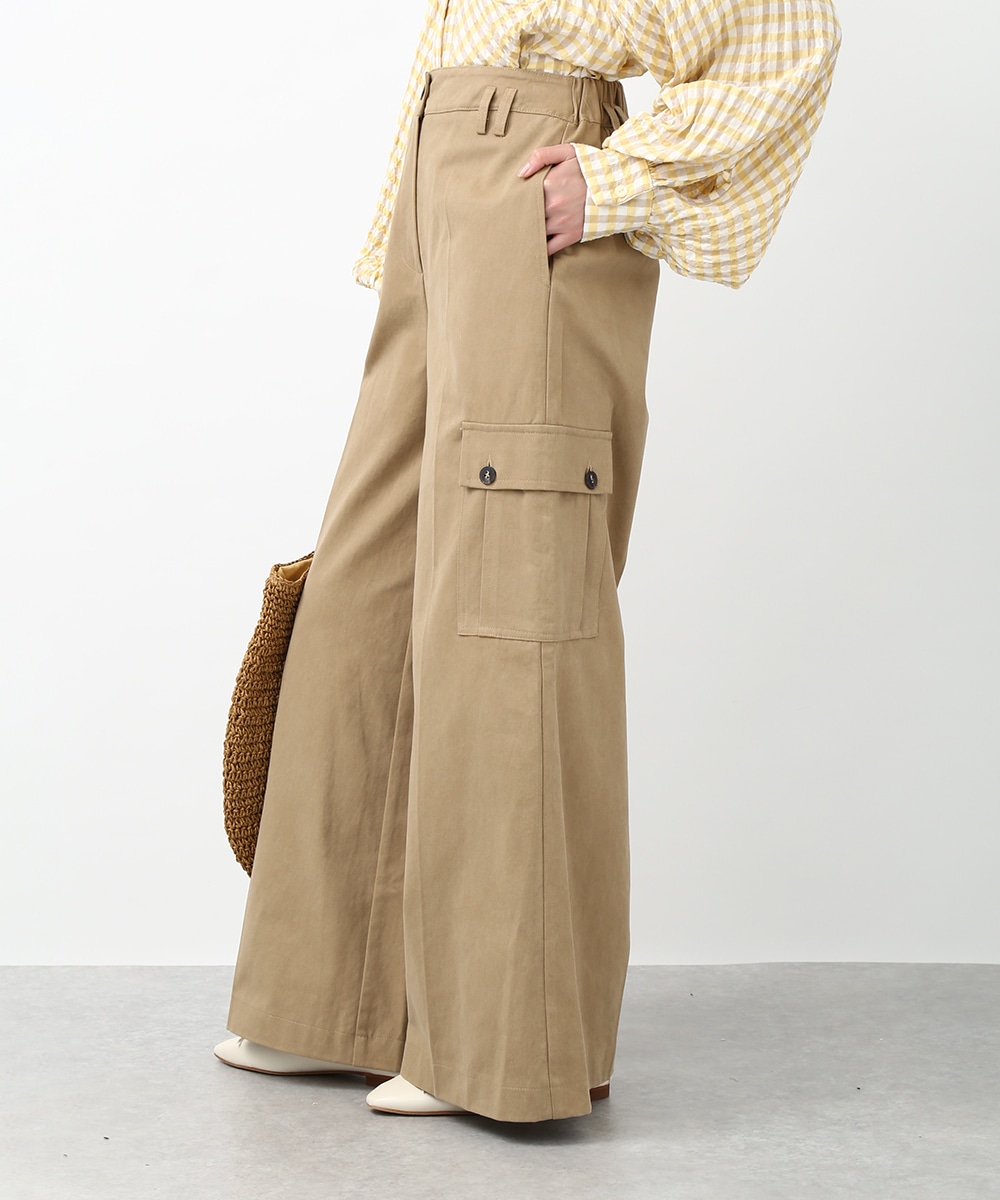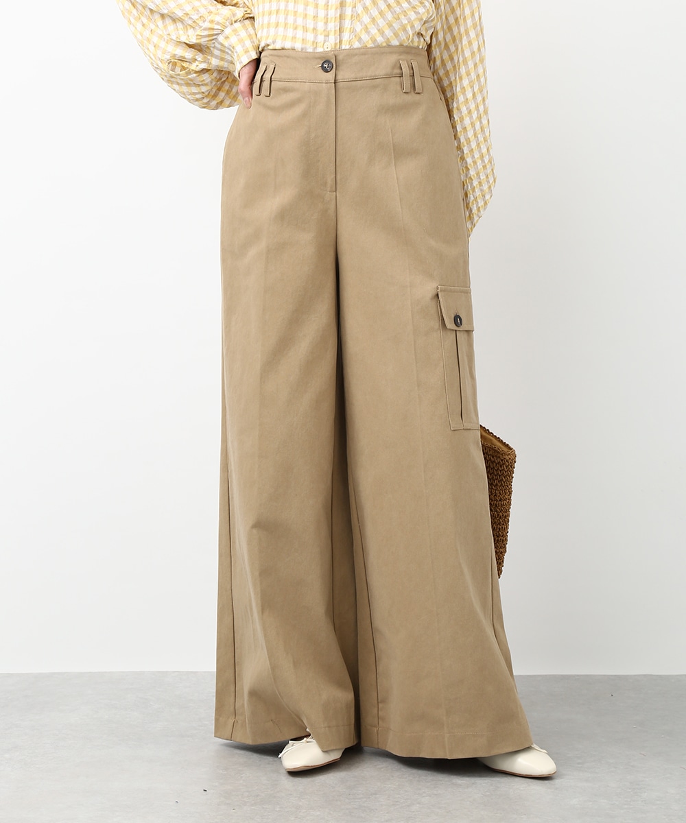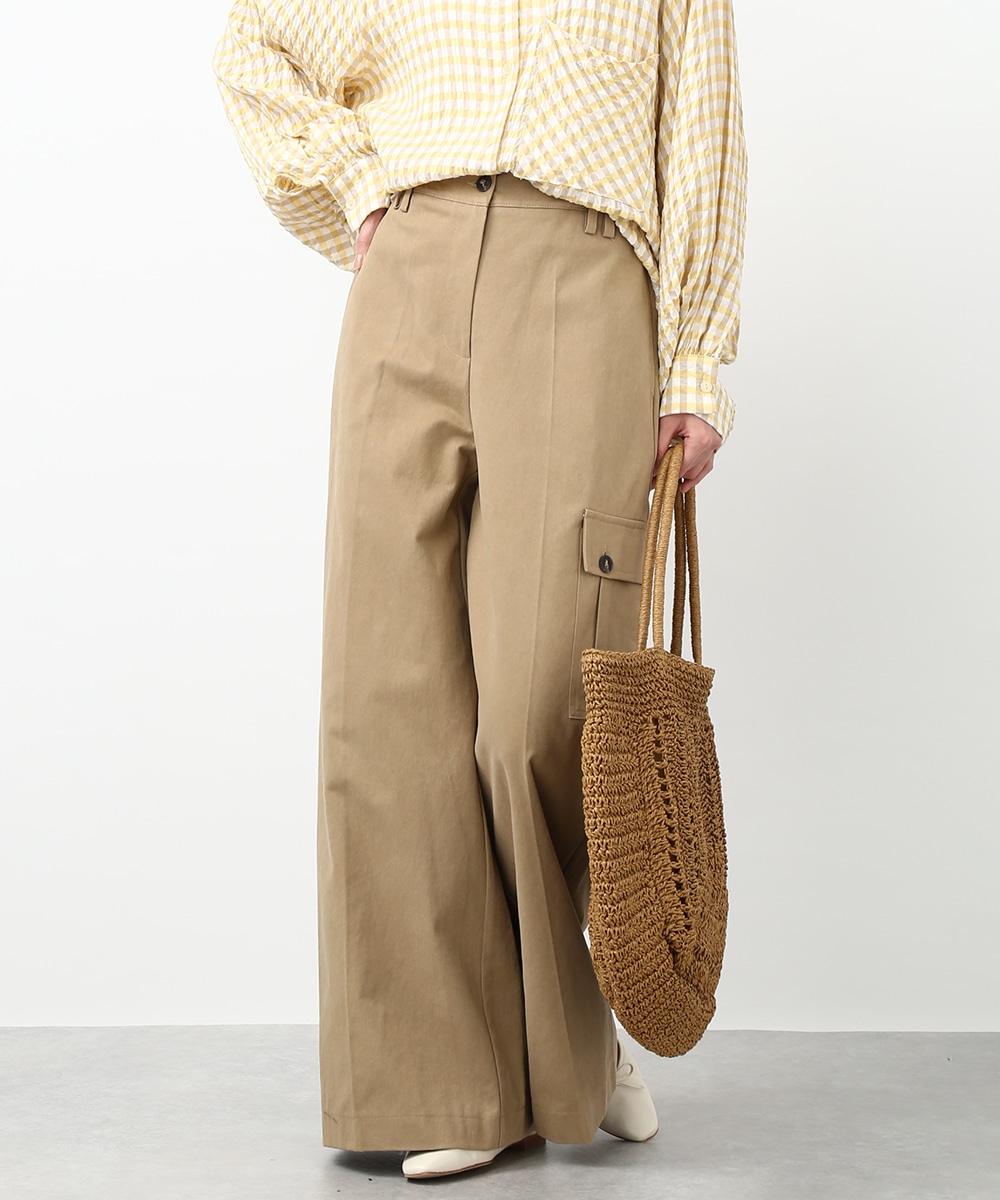 きれいなシルエットで穿けるワイドパンツ。すっきりとしたラインに、アシンメトリーなポケットデザインがアクセントをプラスします。程よくゆとりのあるシルエットで脚のラインを拾いにくく、ラフになりすぎず上品にまとまるのも魅力。同系色のトップスを合わせてトーンを揃えた、落ち着きのある着こなしもおすすめです。