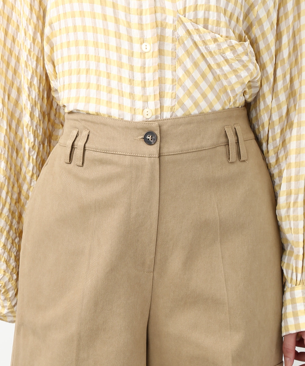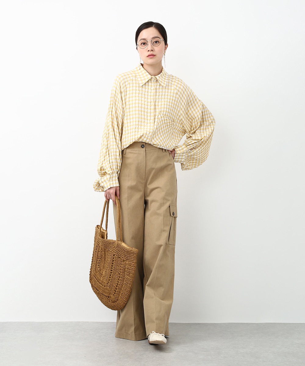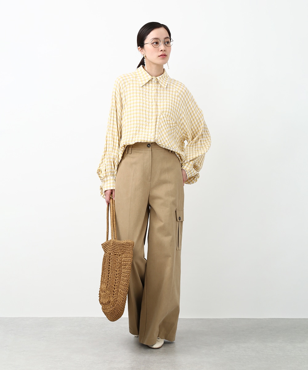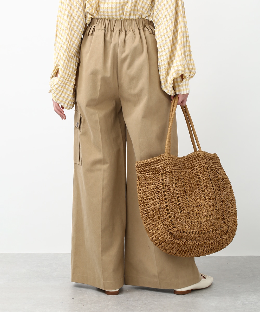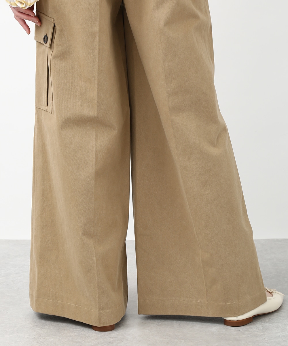 きれいなシルエットで穿けるワイドパンツ。すっきりとしたラインに、アシンメトリーなポケットデザインがアクセントをプラスします。程よくゆとりのあるシルエットで脚のラインを拾いにくく、ラフになりすぎず上品にまとまるのも魅力。同系色のトップスを合わせてトーンを揃えた、落ち着きのある着こなしもおすすめです。