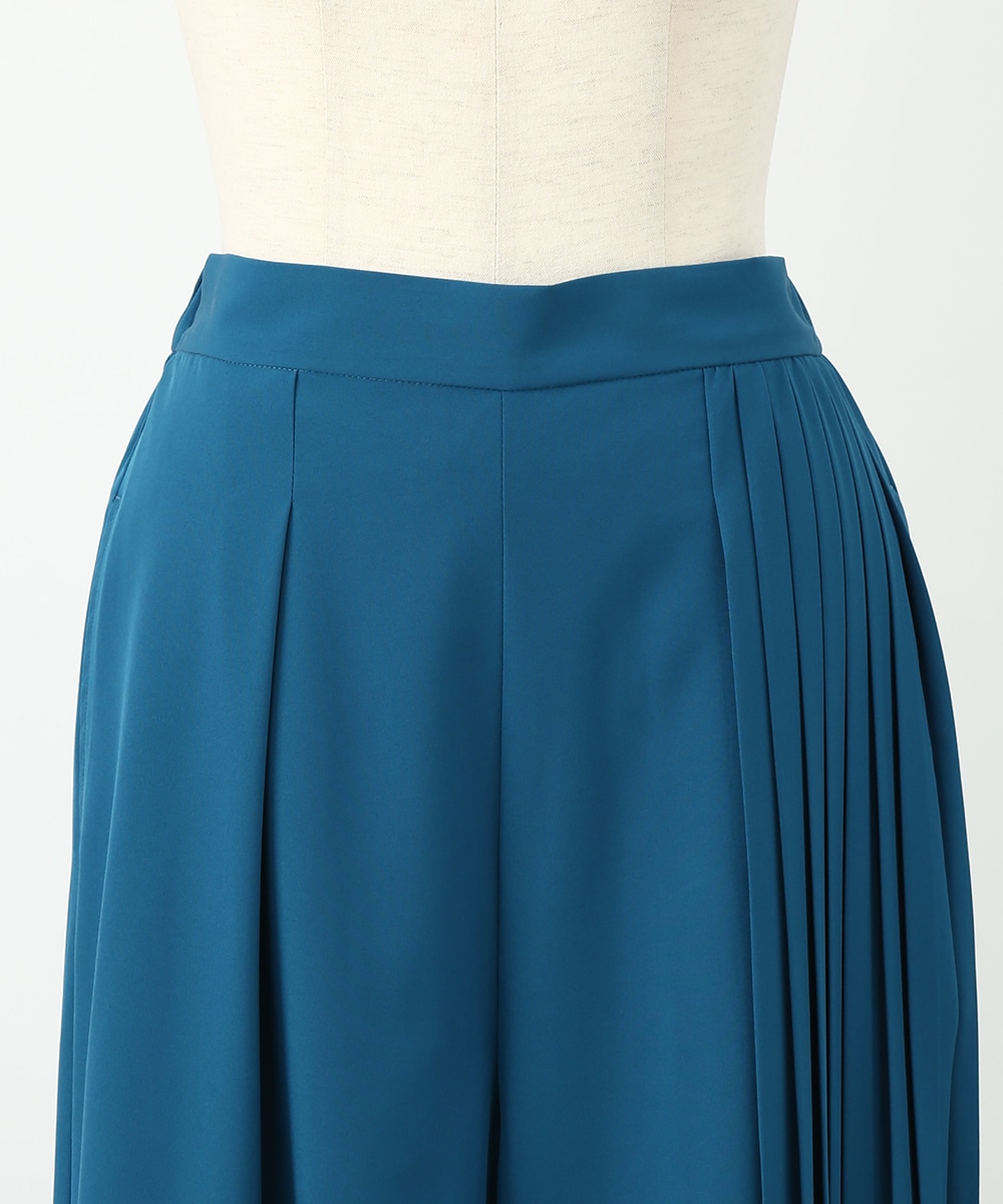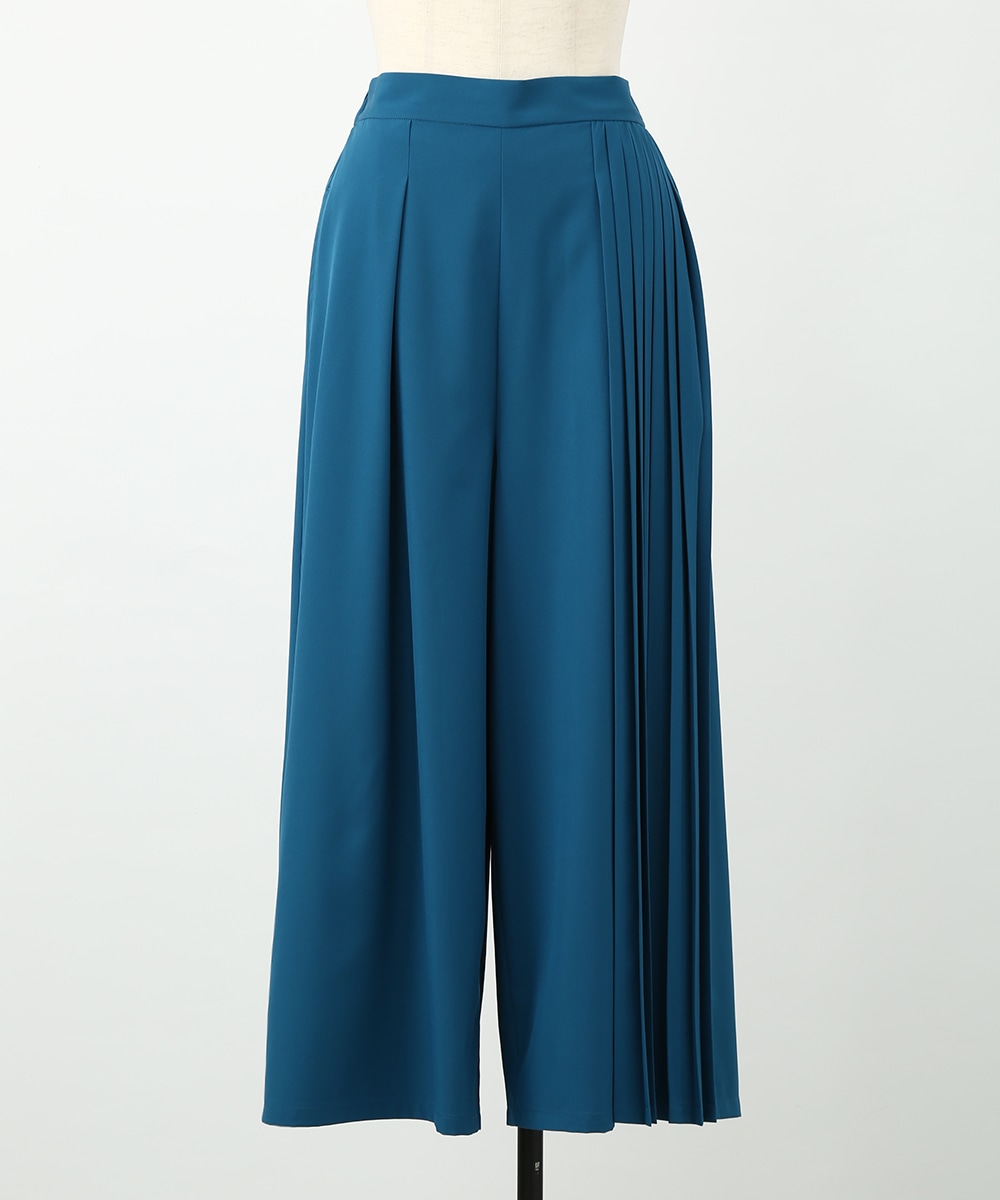 アシンメトリーに施したプリーツが目を引くデザインパンツ。軽やかな素材で取り入れやすく、程よい丈感でバランスよく穿けるのもポイントです。プリントTを合わせてラフにまとめつつ、パンツのデザインを引き立てた着こなしもおすすめです。シンプルな組み合わせでも存在感のあるスタイルに仕上がります。