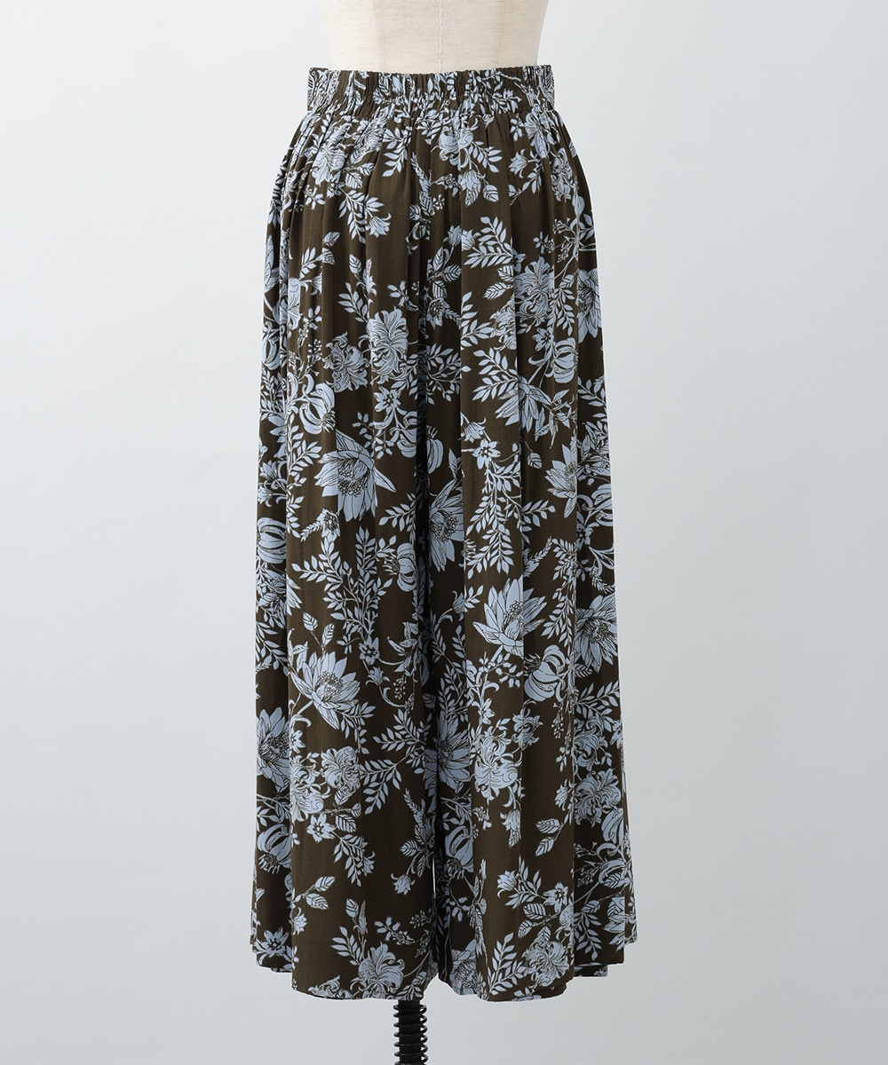 レイヤード風の動きのあるラップデザインがスタイルアップを叶えるパンツ。細やかなスカーフ柄プリントが、上品で大人びた雰囲気を演出します。背面のウエストはゴム仕様になっており、リラックス感のある着心地に。足元はパンプスと合わせた抜け感のあるスタイリングがおすすめです。