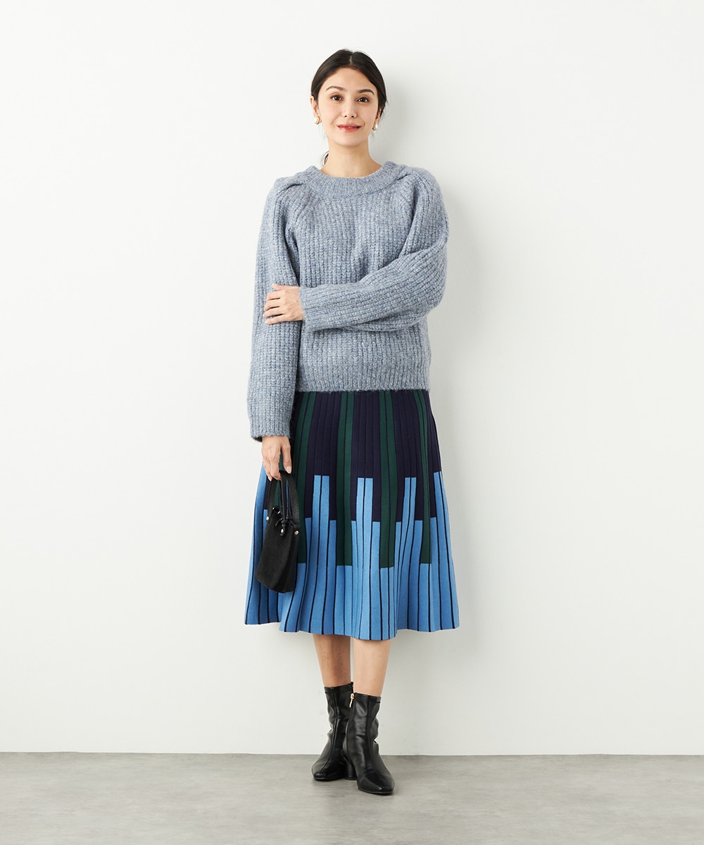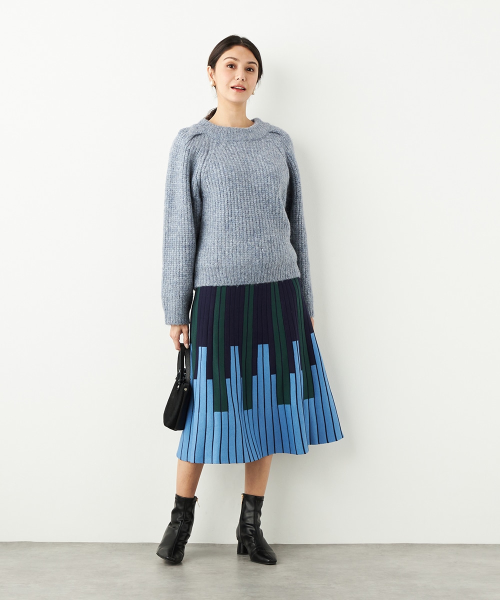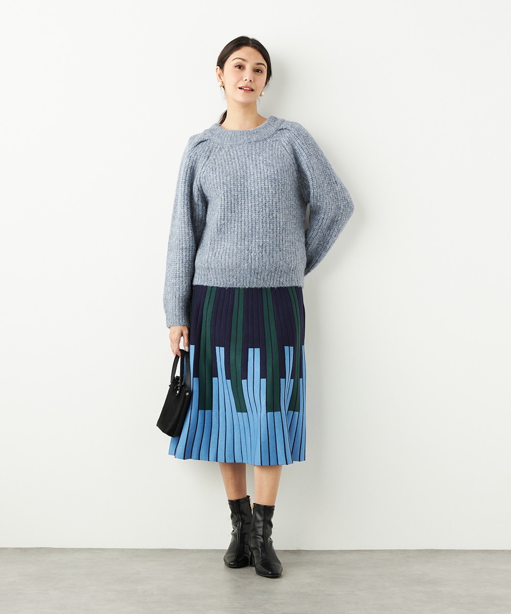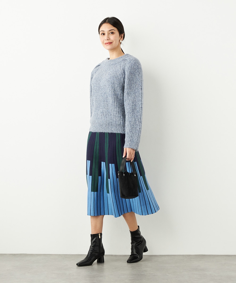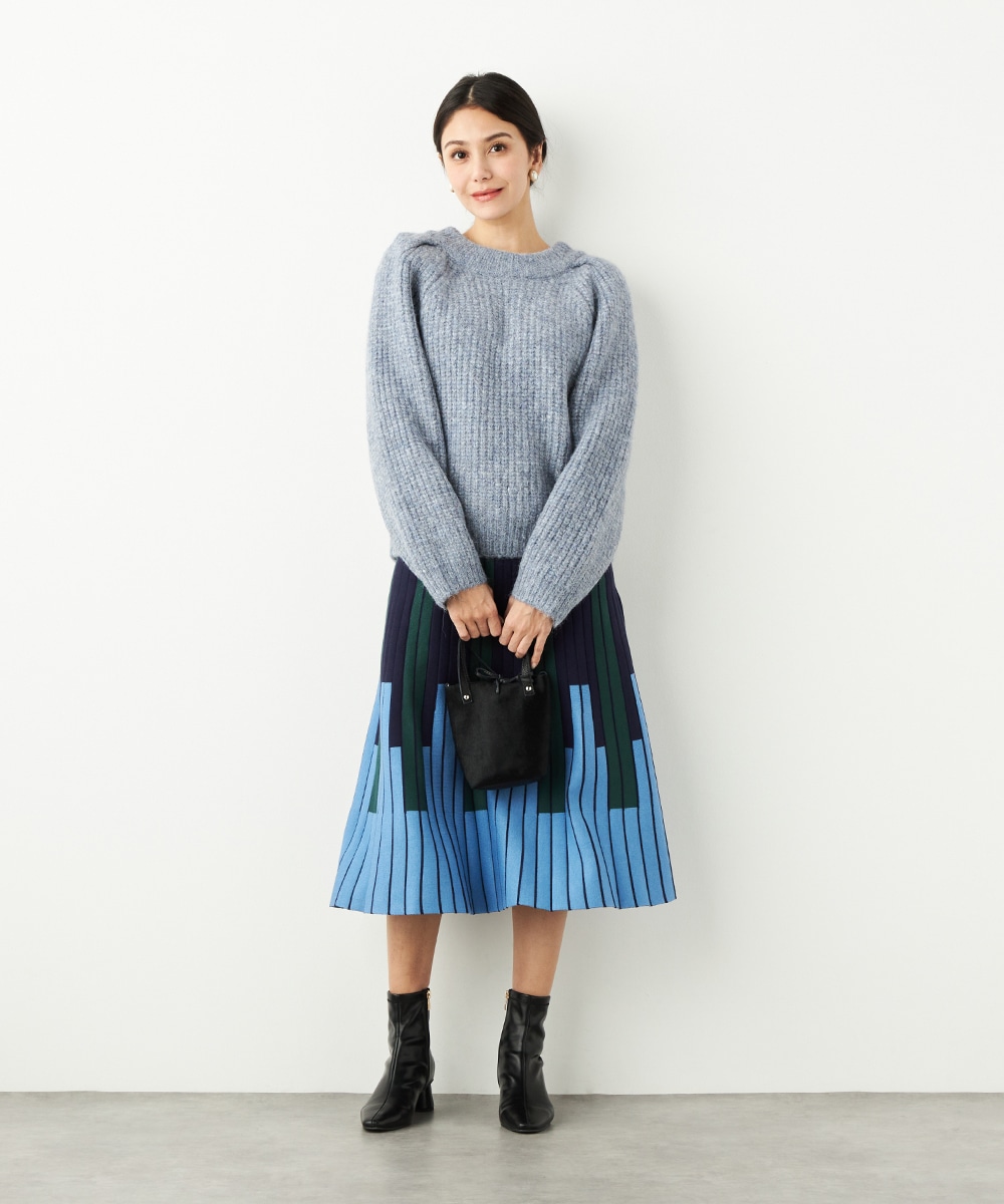 モードな雰囲気やキュートさがある幾何学的なデザインです。縦のラインがさりげなく強調される柄使いで、すっきりと穿きこなせます。大人っぽく上品なロング丈を採用。アレンジ次第で普段使いからお出かけまで、幅広く活用できます。ウエストはフィット感が快適な総ゴム仕様です。