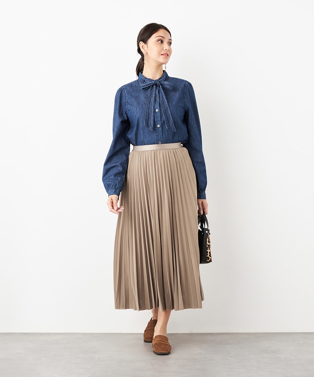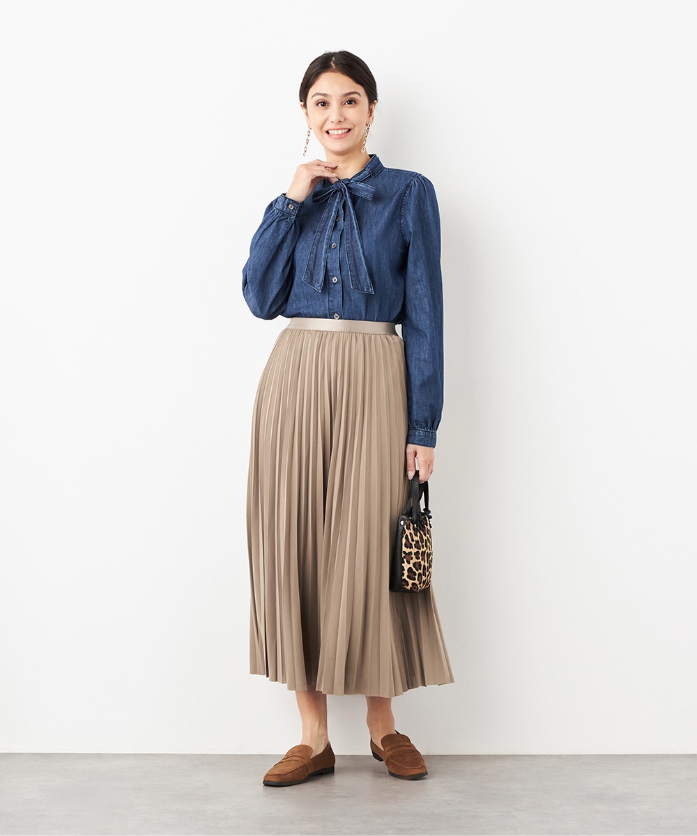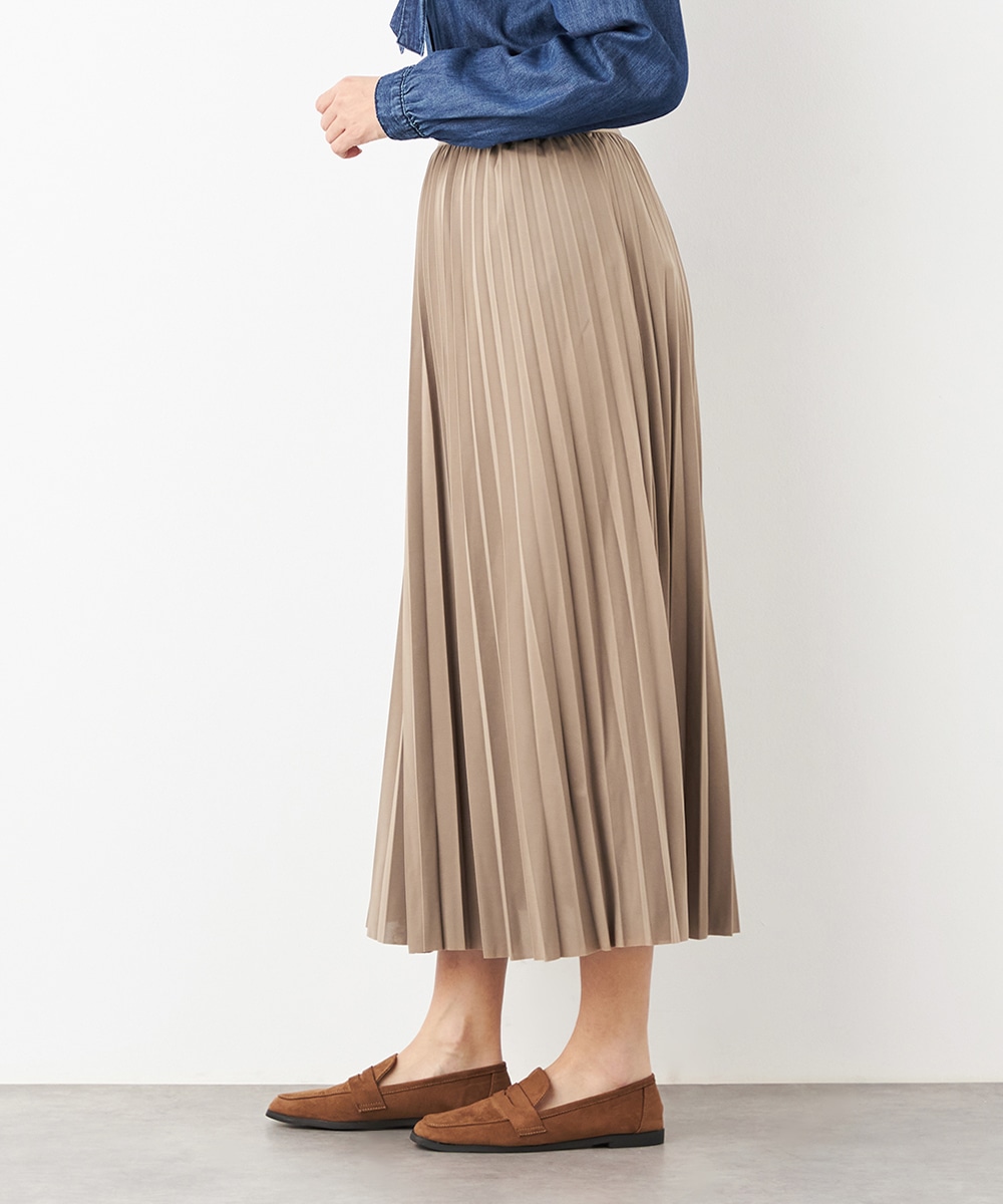 動きに合わせての揺れ感が女性らしくエレガントな印象です。大人っぽく上品なコーディネートを演出できるロング丈のデザイン。ウエストはゴム仕様でフィット感良く身に着けられます。アレンジ次第で普段使いにも、ちょっとしたお出かけにも対応可能なアイテムです。
