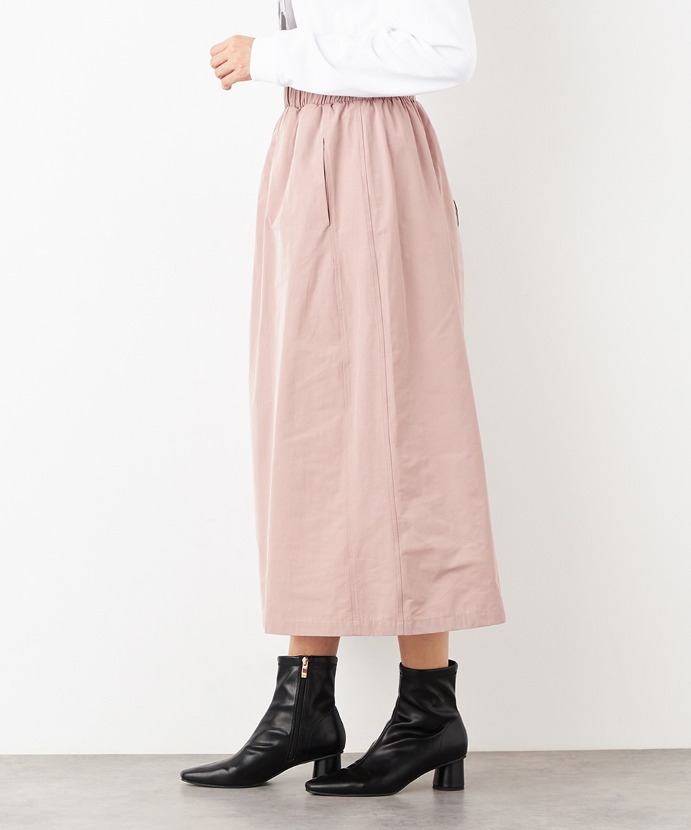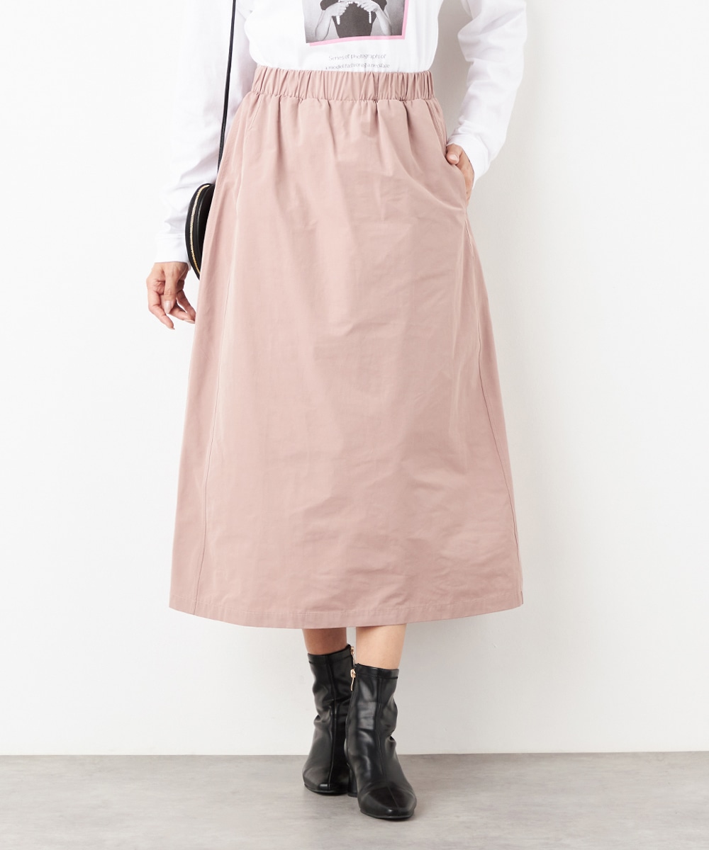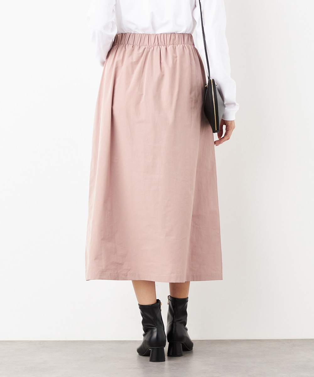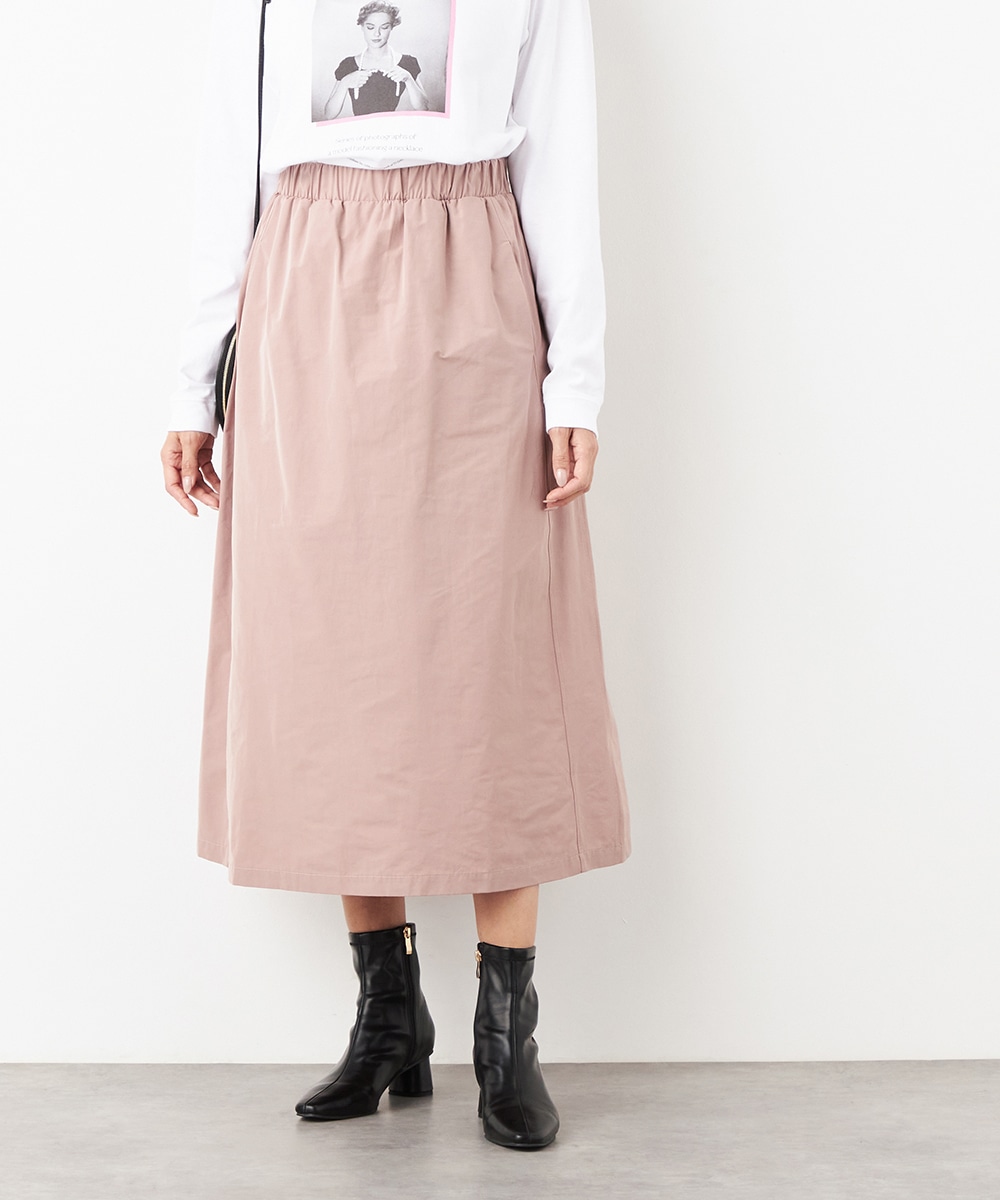 ウエストは総ゴム仕様でギャザーが自然に表現されます。心地よいフィット感も魅力です。広がりすぎないシルエットとロング丈が大人っぽく上品な印象。装飾を省いてごくシンプルにまとめられ、さまざまなアレンジを楽しめます。サイドには、スマートフォンなどの小物の収納に適したポケット付きです。