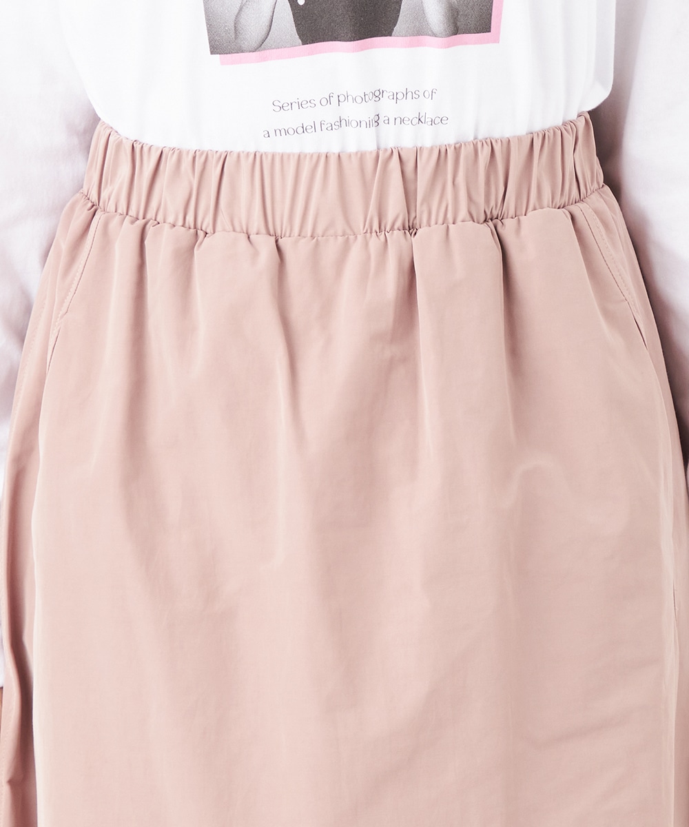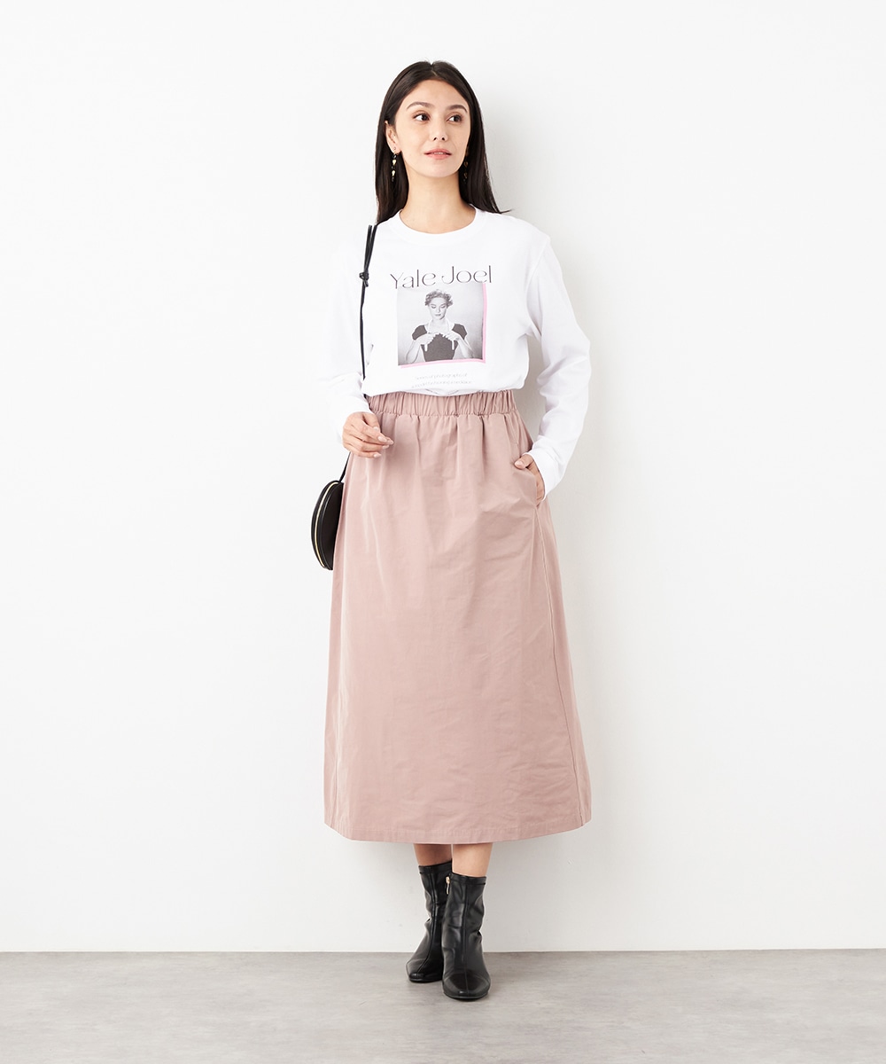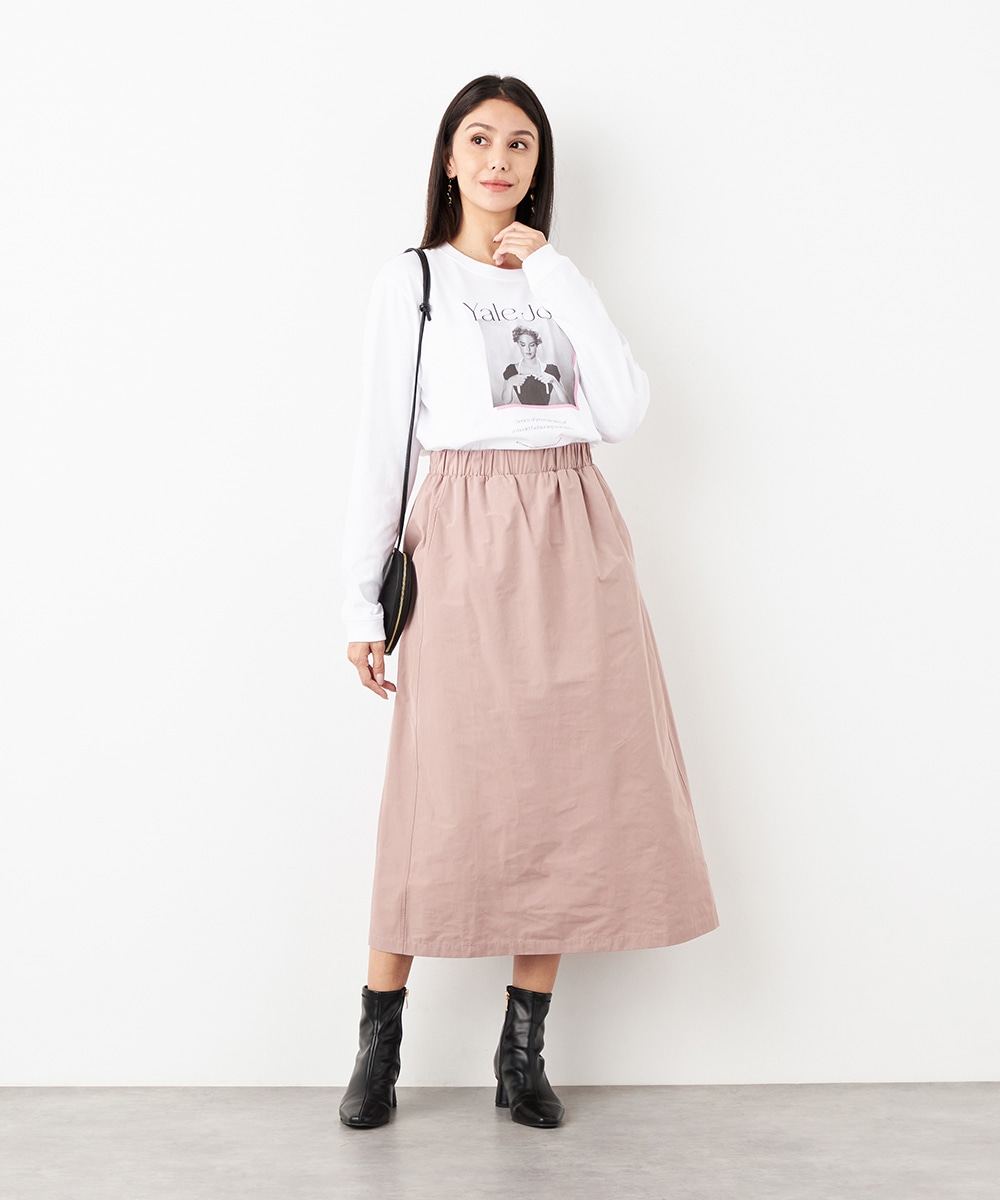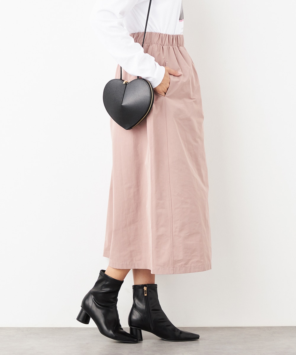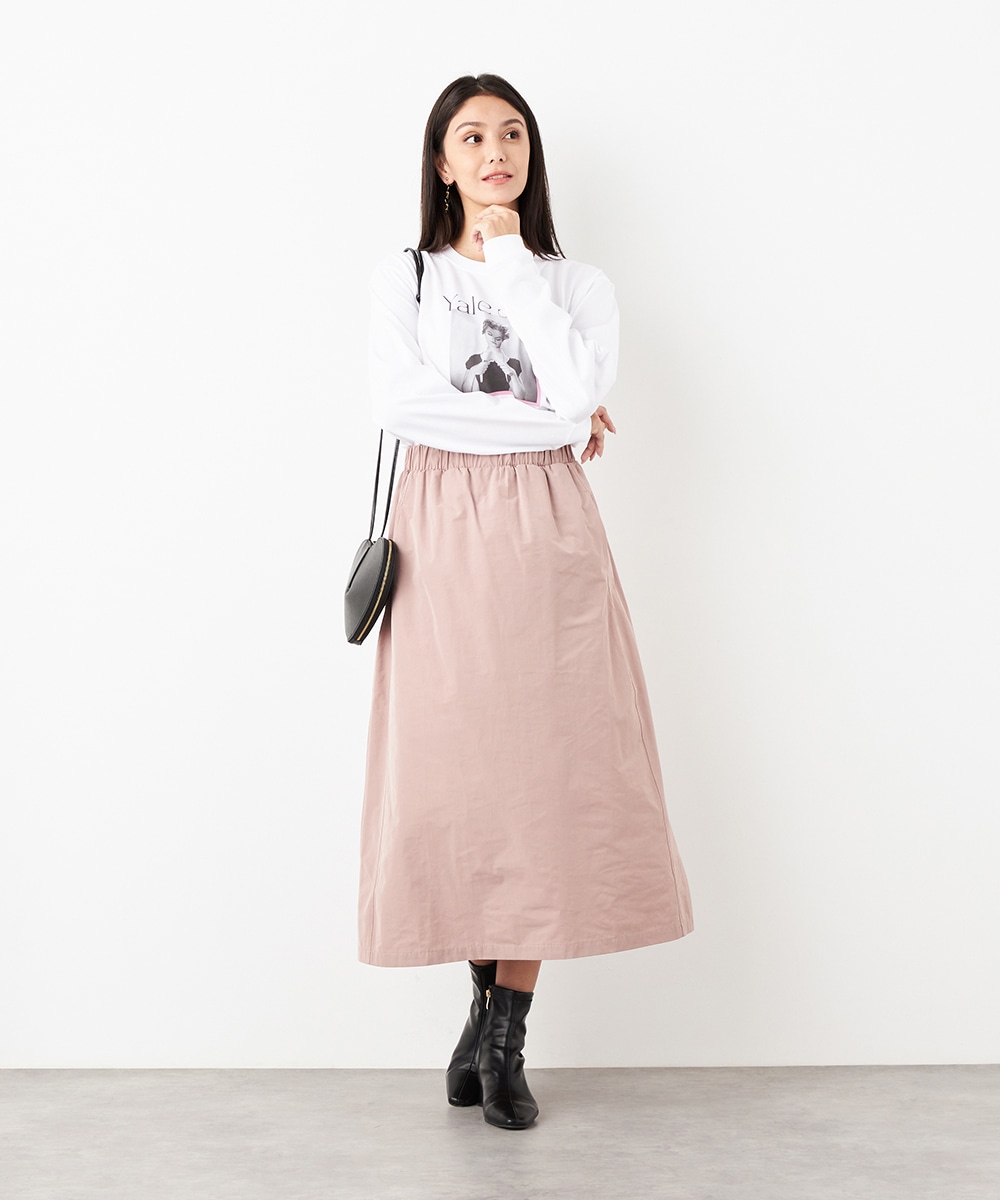 ウエストは総ゴム仕様でギャザーが自然に表現されます。心地よいフィット感も魅力です。広がりすぎないシルエットとロング丈が大人っぽく上品な印象。装飾を省いてごくシンプルにまとめられ、さまざまなアレンジを楽しめます。サイドには、スマートフォンなどの小物の収納に適したポケット付きです。