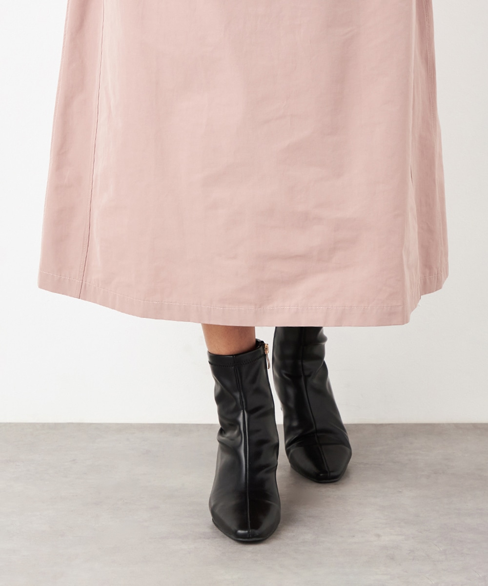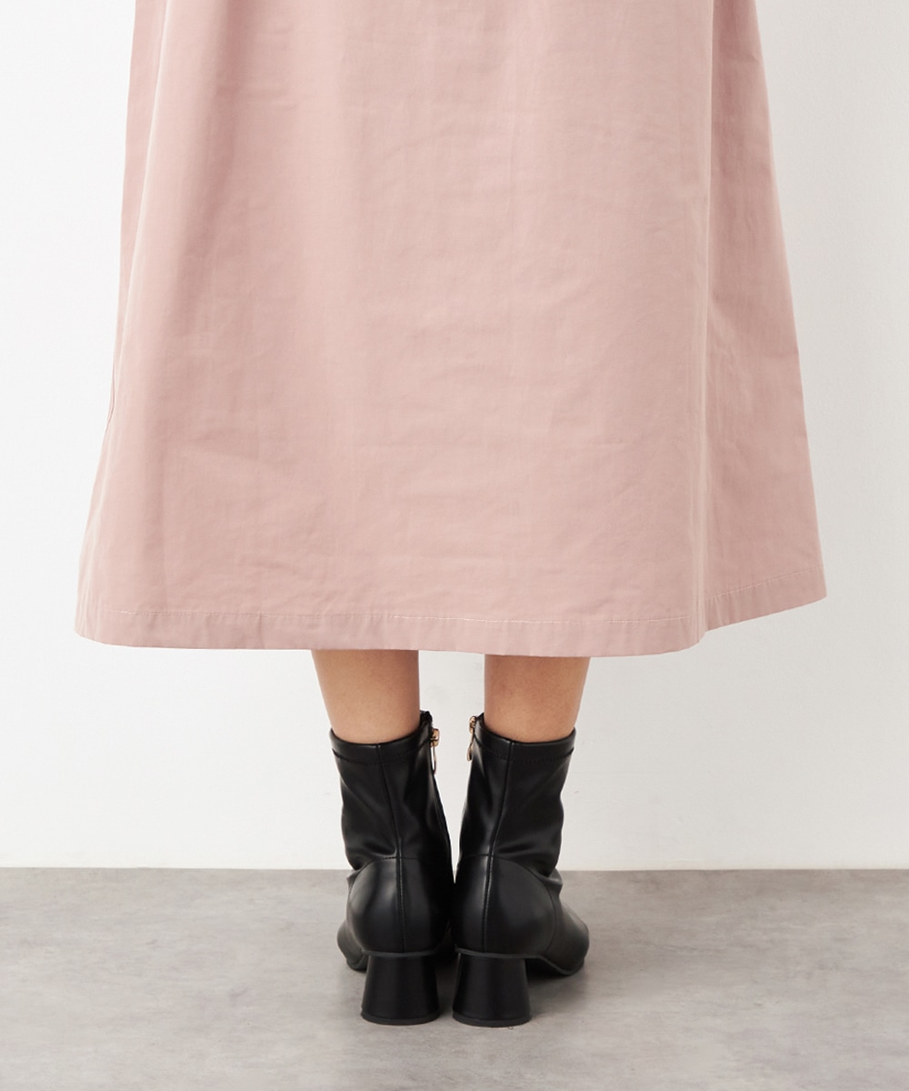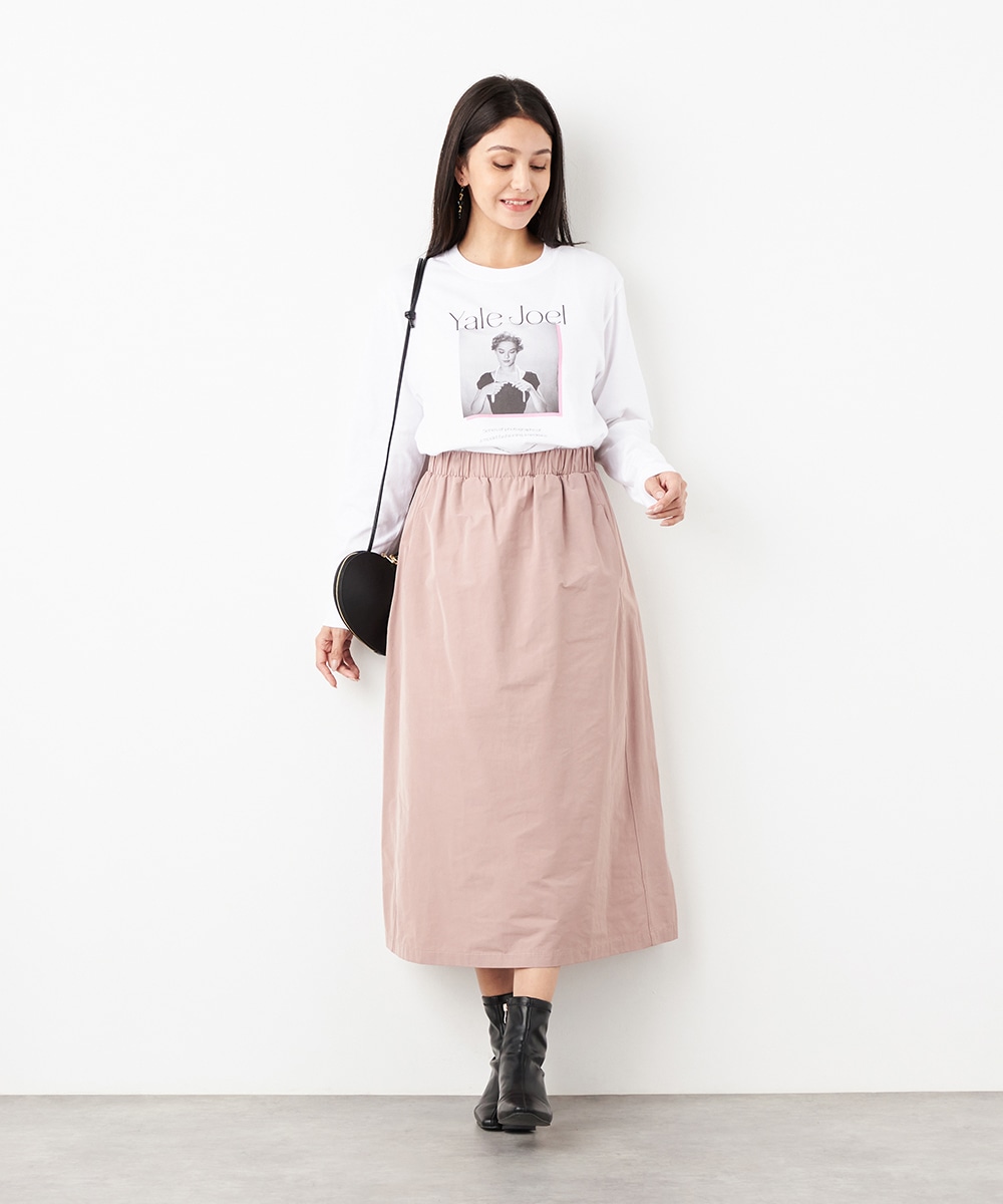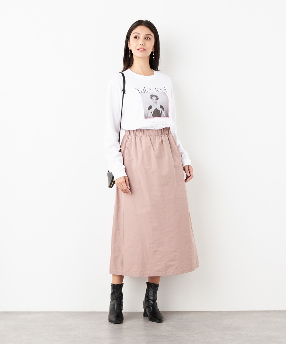 ウエストは総ゴム仕様でギャザーが自然に表現されます。心地よいフィット感も魅力です。広がりすぎないシルエットとロング丈が大人っぽく上品な印象。装飾を省いてごくシンプルにまとめられ、さまざまなアレンジを楽しめます。サイドには、スマートフォンなどの小物の収納に適したポケット付きです。