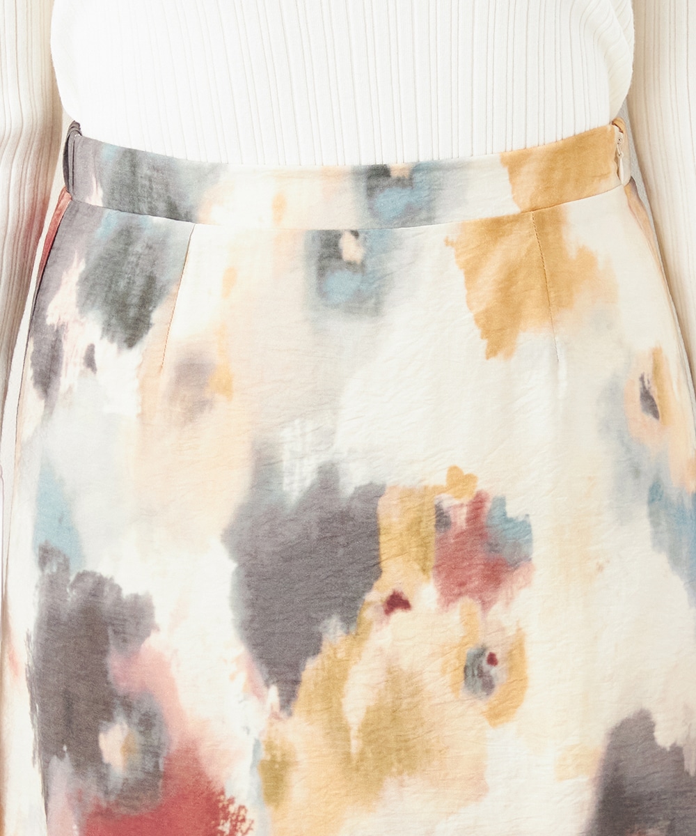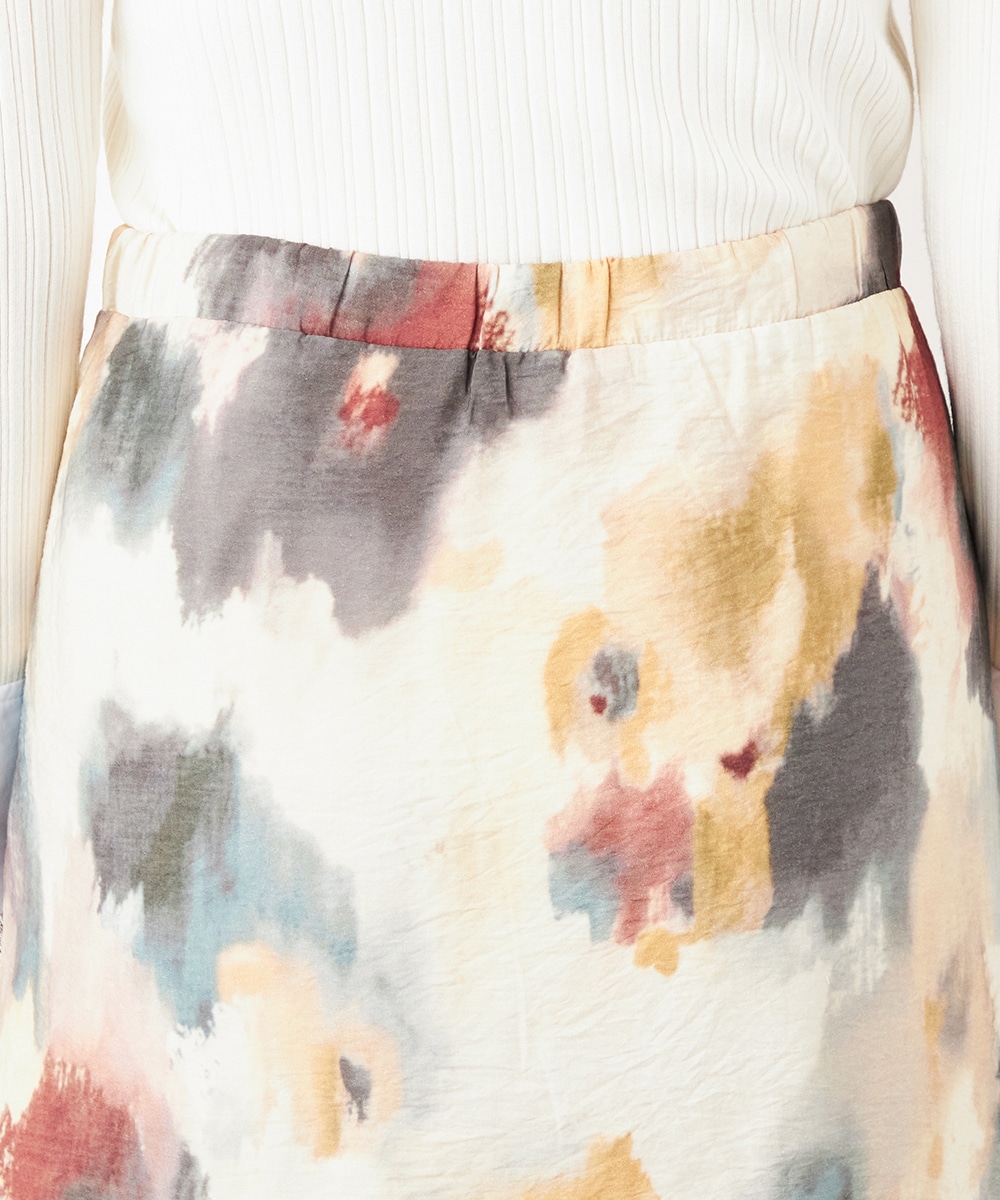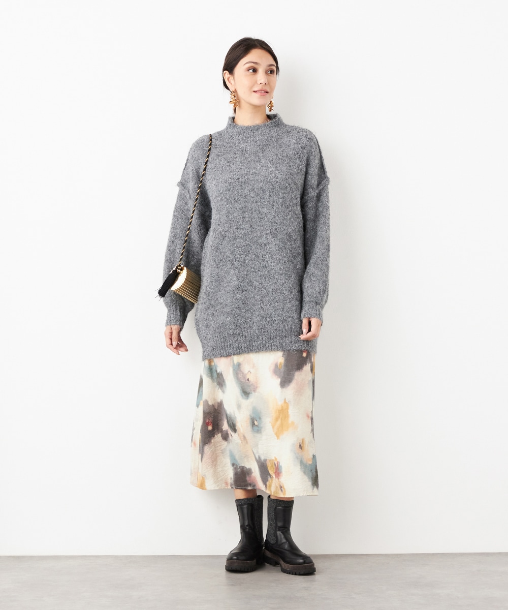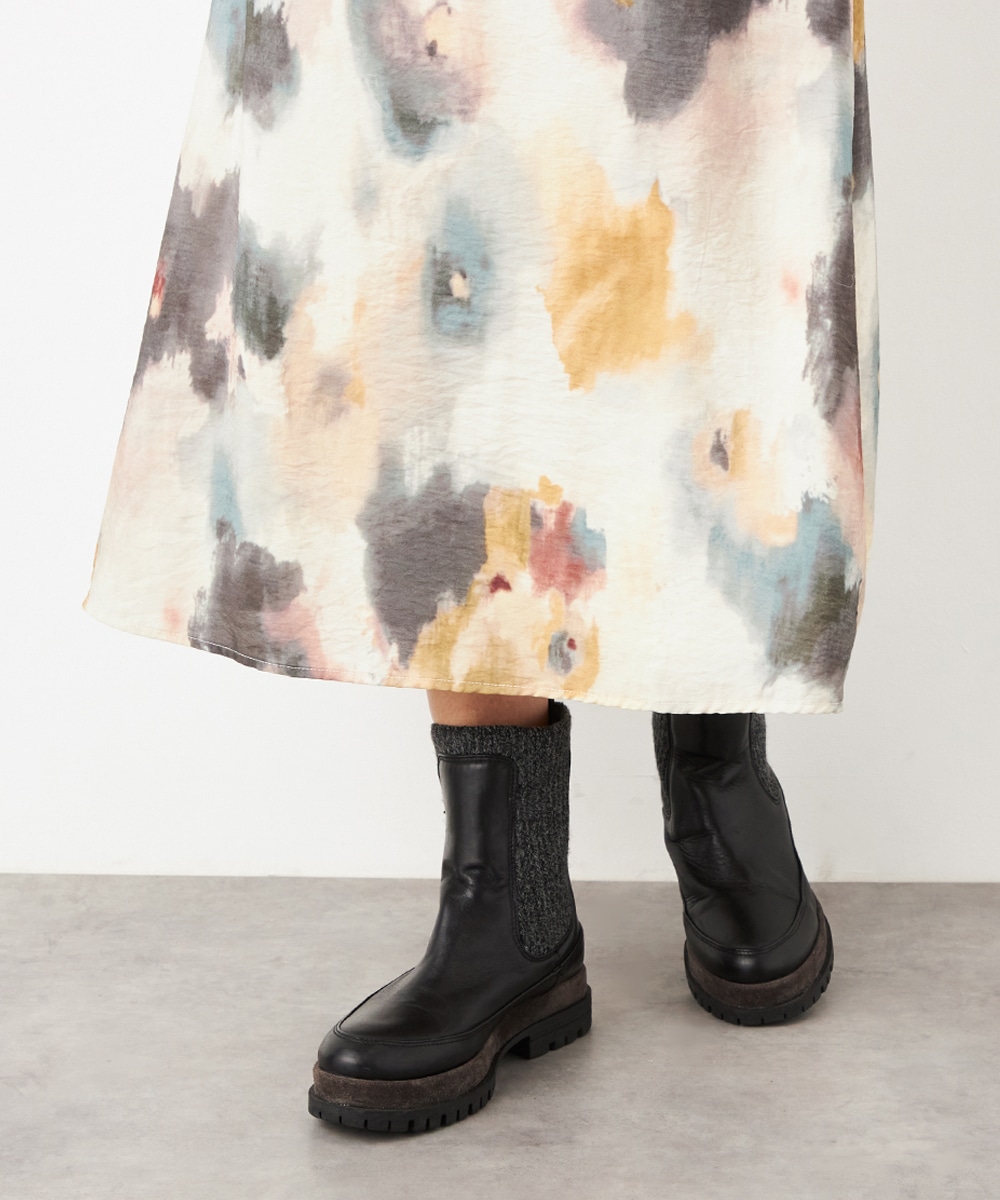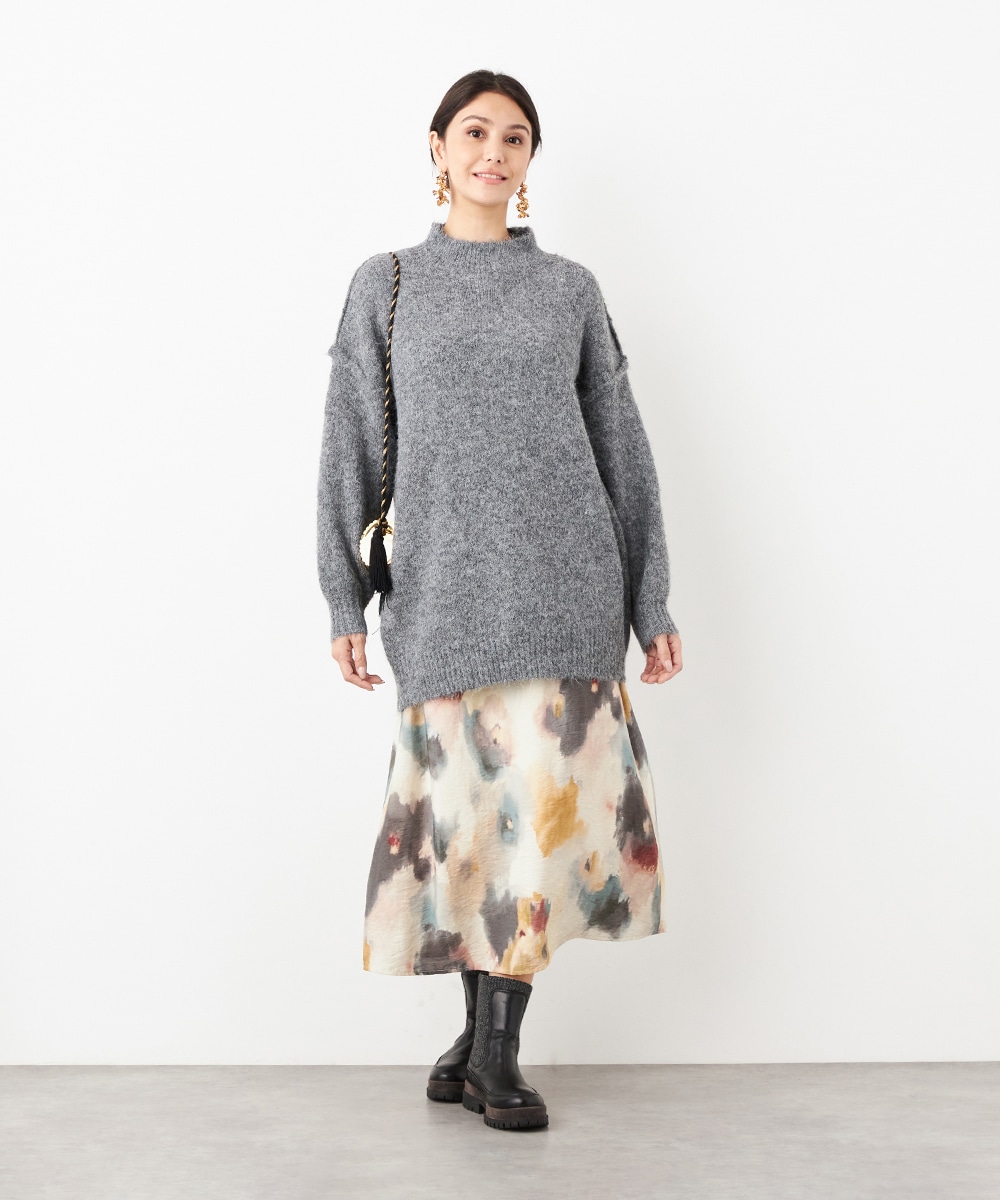 穿きこなしやすい、適度なボリューム感のフレアシルエットです。お腹回りがすっきりと見えて、ニットと合わせても好バランスのコーディネートを楽しめます。上品さがあり、お出かけにも適したロング丈のデザインです。後ろウエストにはゴムが入ってフィット感良く着用できます。
