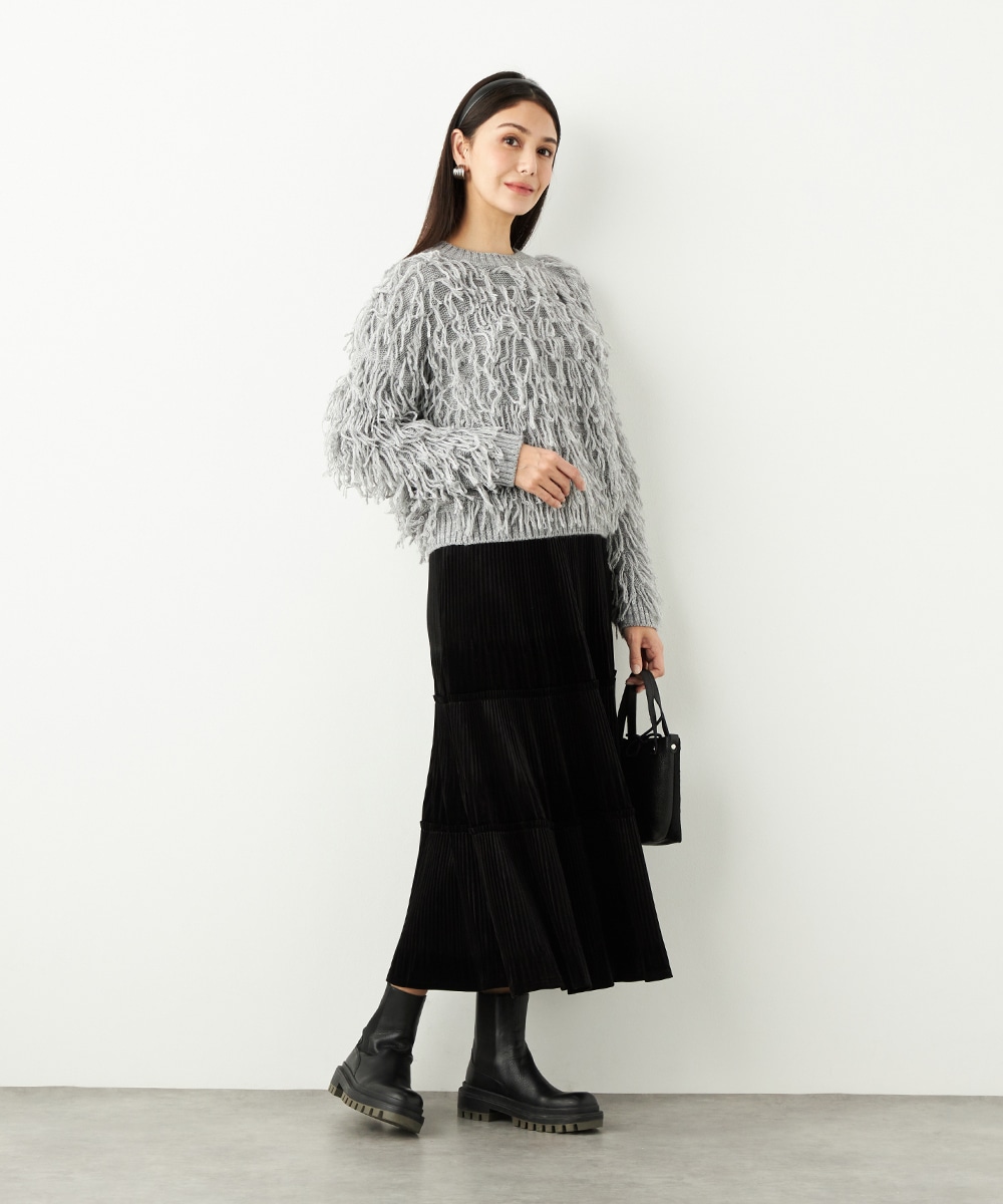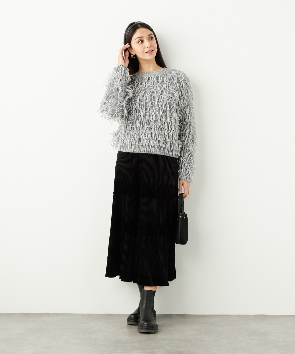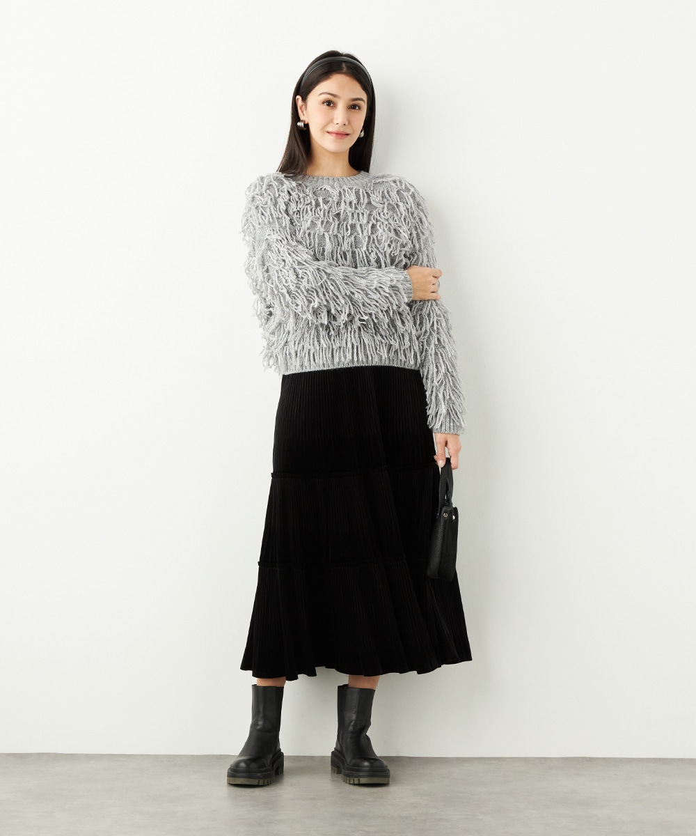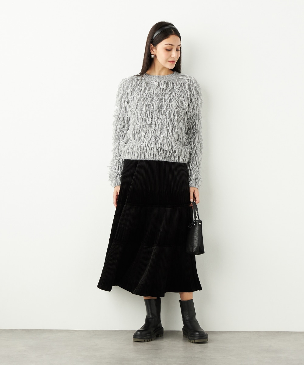 ベーシックカラーの無地ながらも華やかな仕上がりです。ガーリー感あふれるティアードシルエットを採用。細かなプリーツを施してクラシカルな雰囲気もプラスしています。長めの着丈で大人っぽく上品に穿きこなせ、幅広いシーンで重宝する1枚です。ウエストは総ゴム仕様でフィット感良く着用できます。