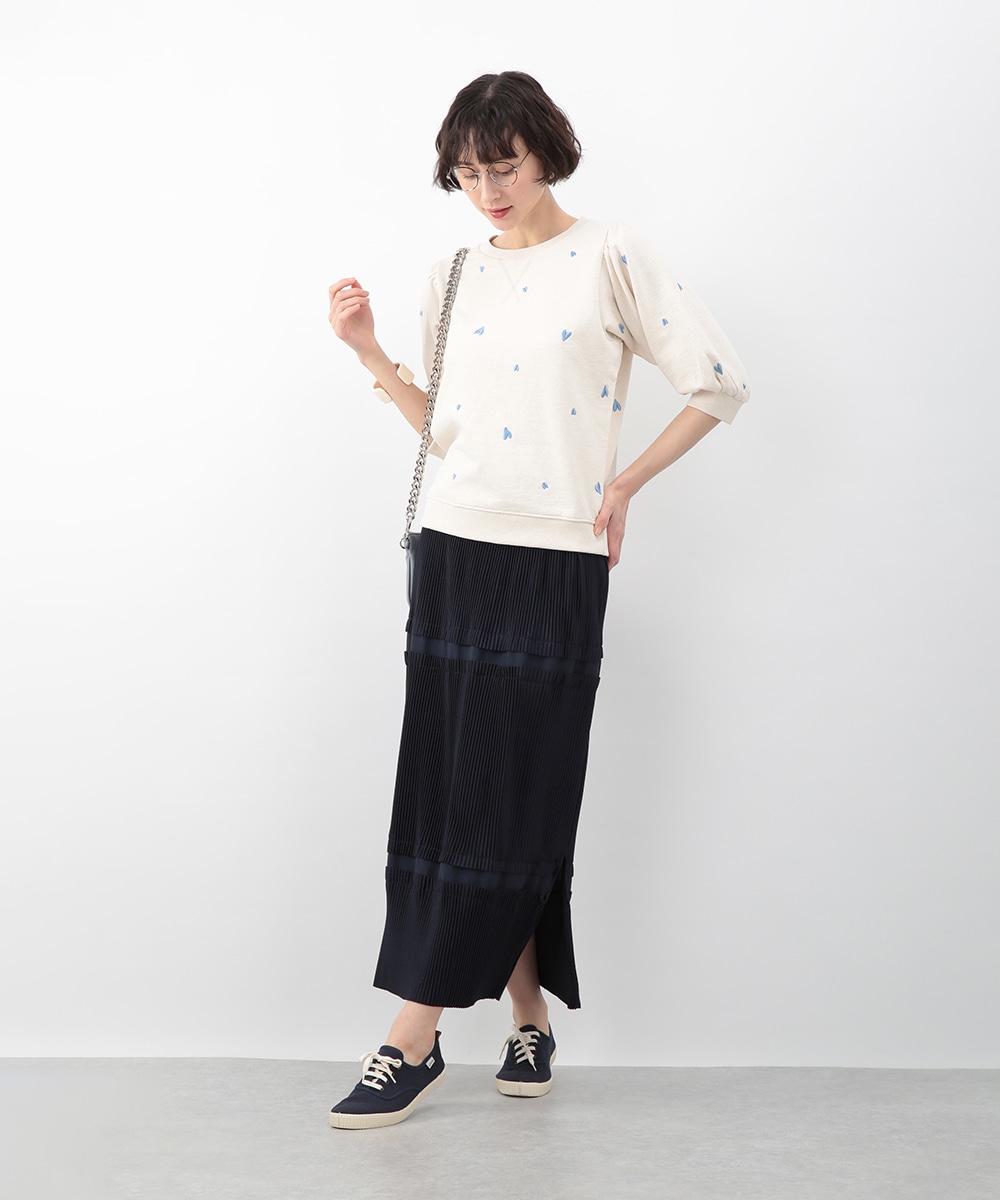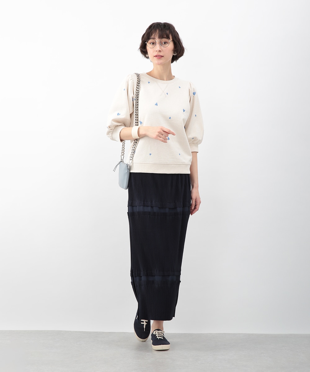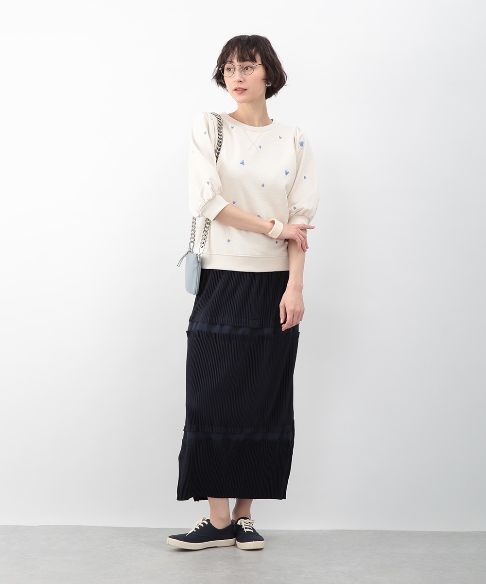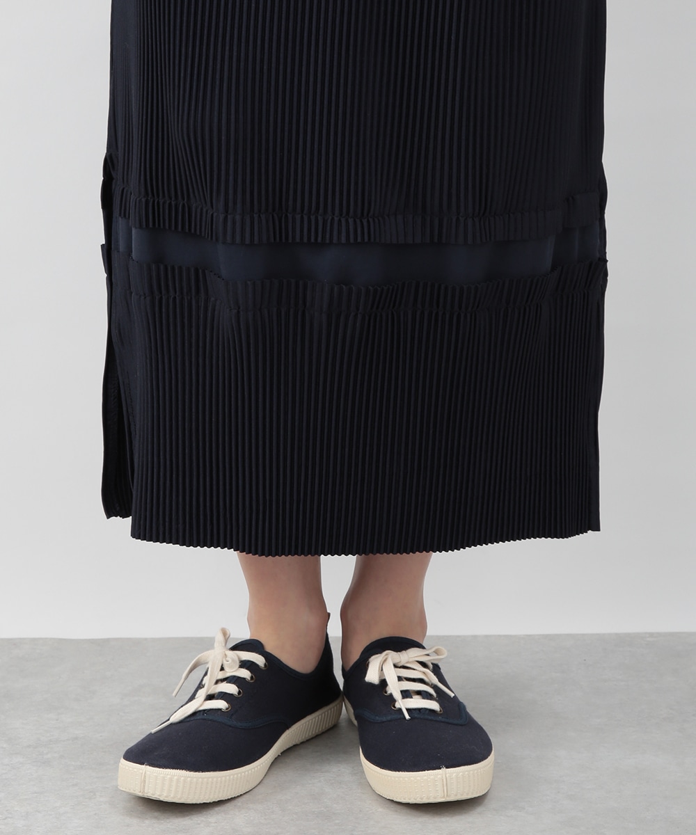 プリーツ加工を施したジャージ素材のタイトスカート。ティアード切り替えが程よい立体感を生み、動くたびに軽やかな表情を演出します。細身のシルエットで縦のラインを強調し、すっきりとした印象に。コンパクトなトップスを合わせてバランス良く、ブラウスを合わせてきれいめにも穿きやすい一枚です。
