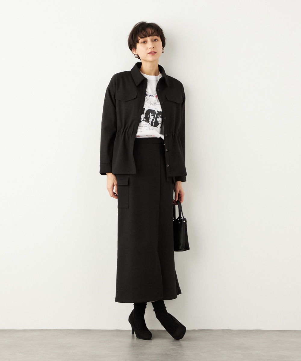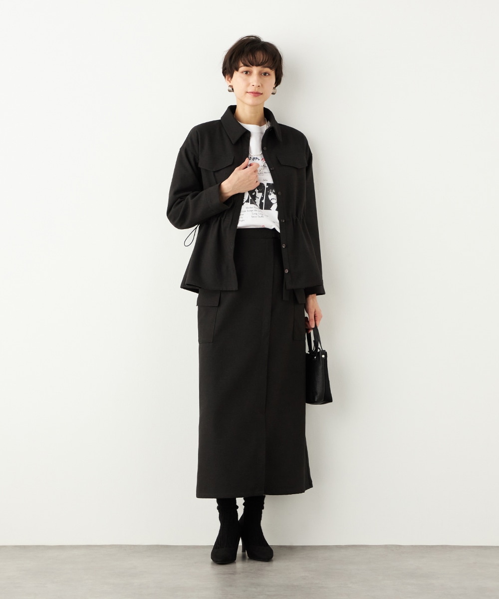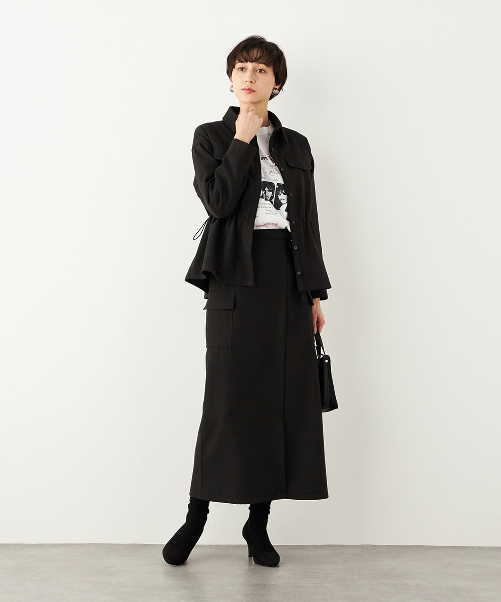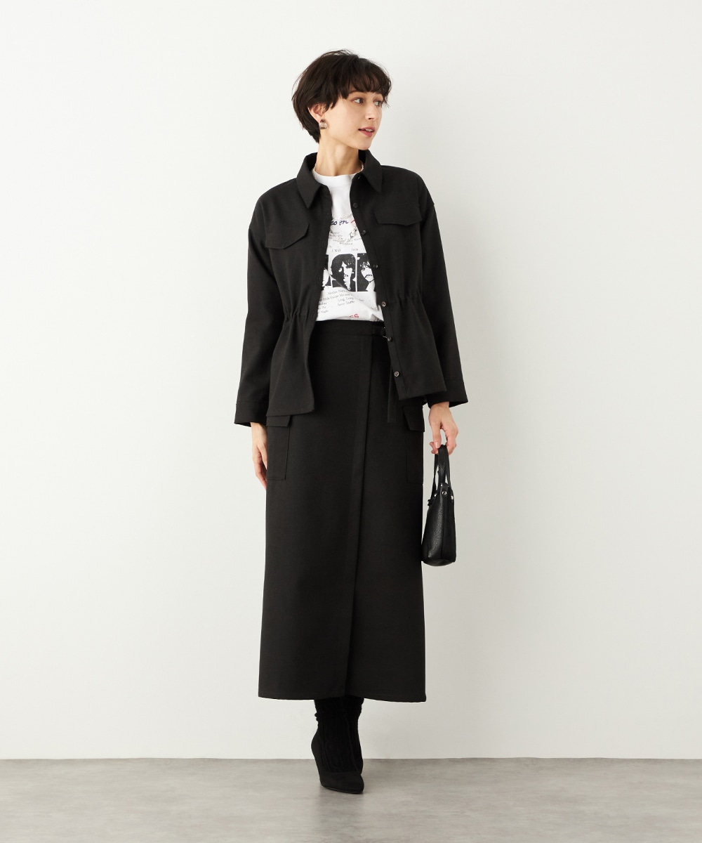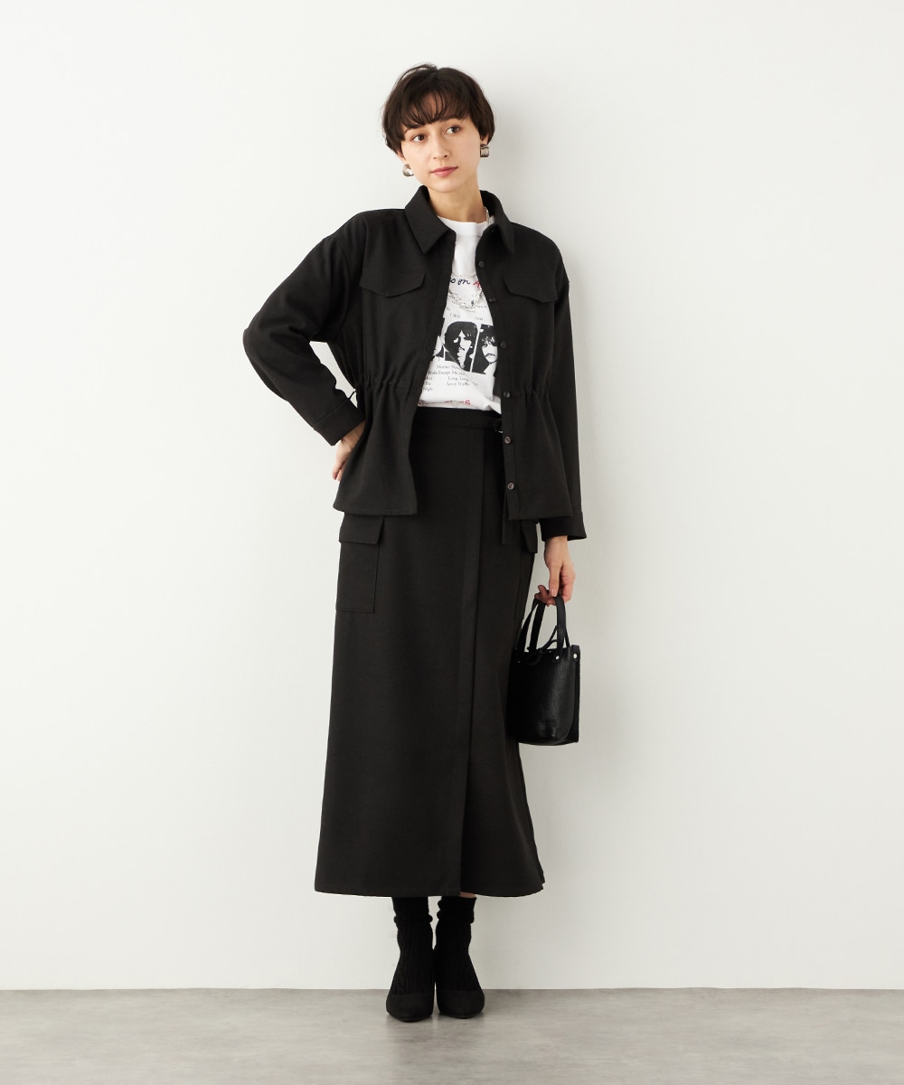 細身のすっきりとしたシルエットやロング丈で大人っぽく穿きこなせます。フロントのスリットも目を引き、足さばきもスムーズ。後ろウエストはゴムが入ってフィット感良く着用できます。セットアップコーディネートを楽しめる同素材のシャツもございます。
