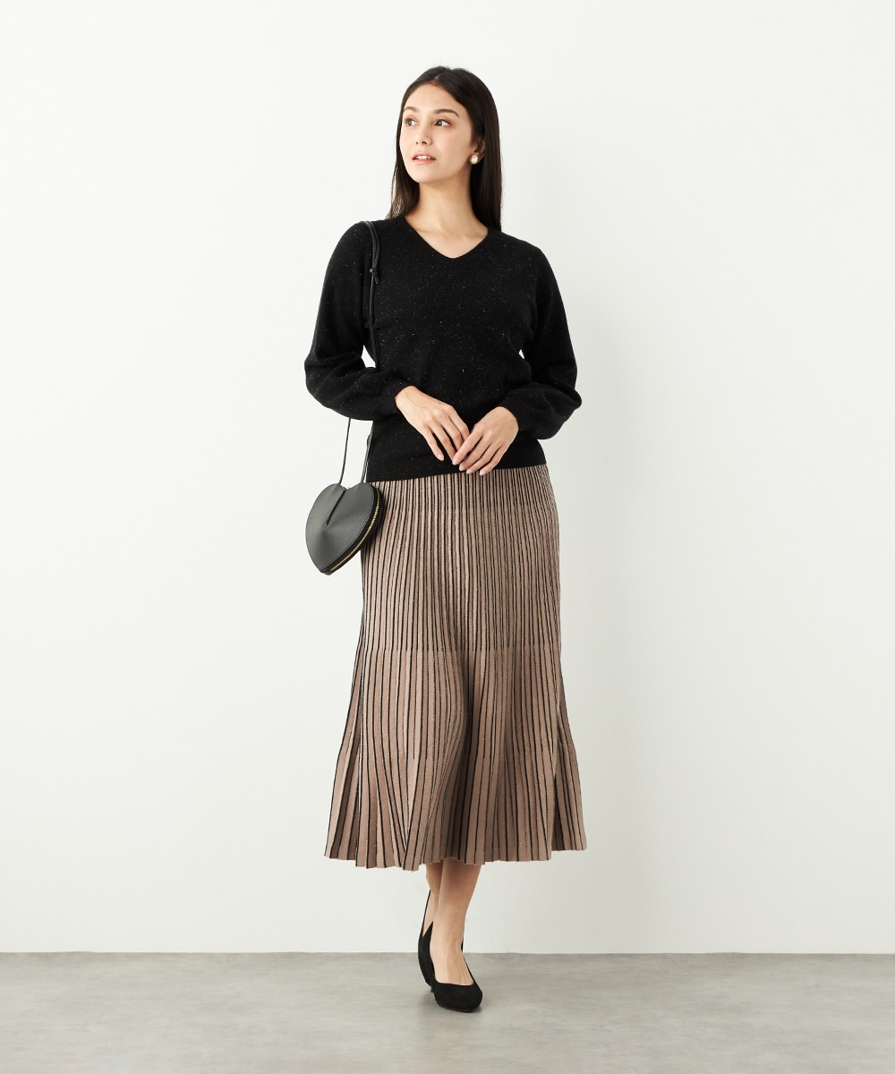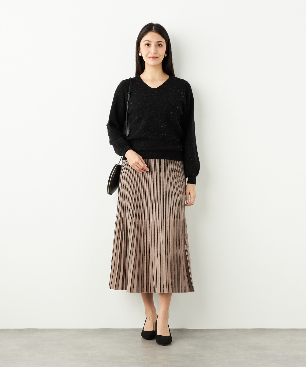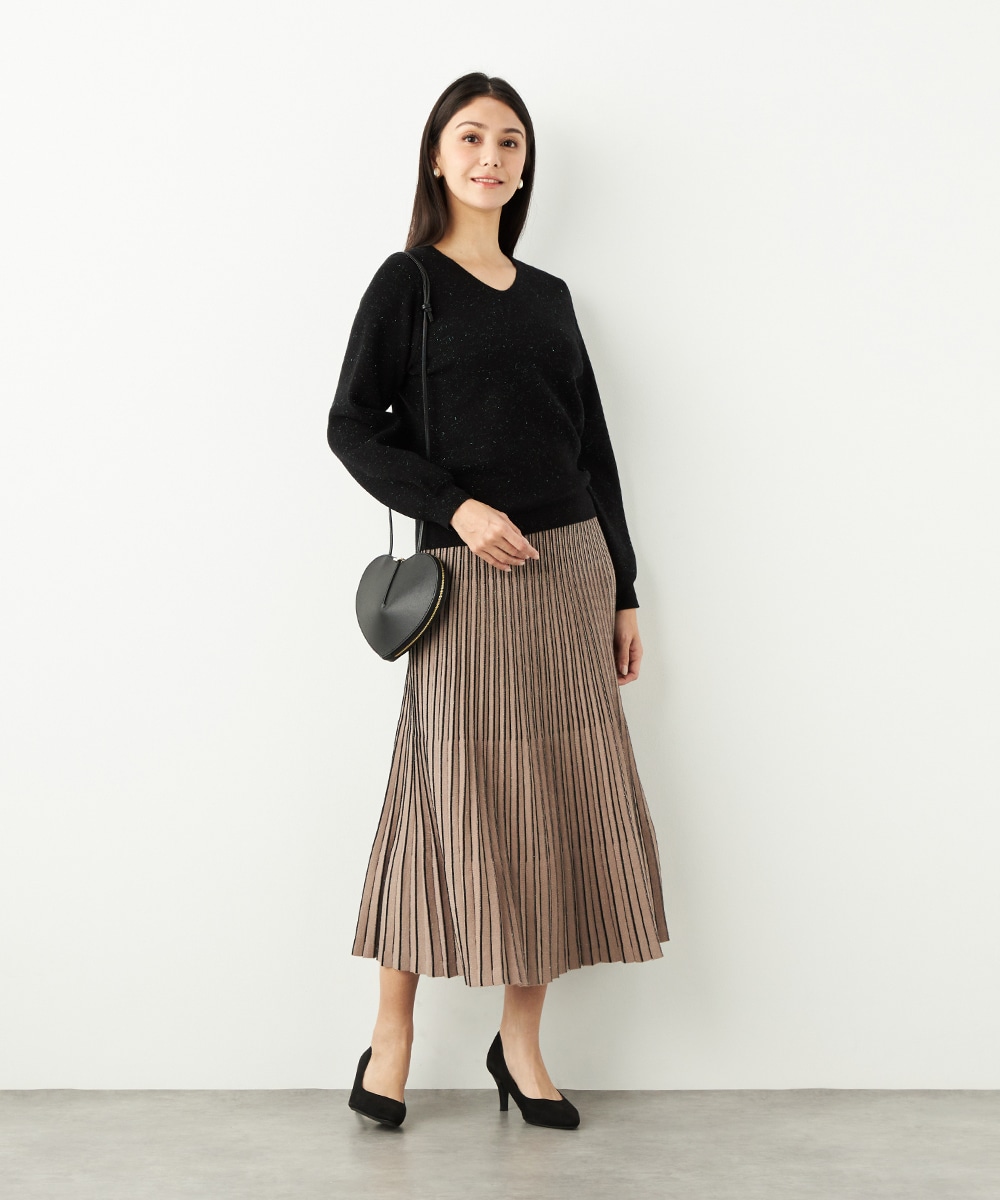 煌めく上品な表情の糸「アンジェリーナ」を使用したニットスカート。