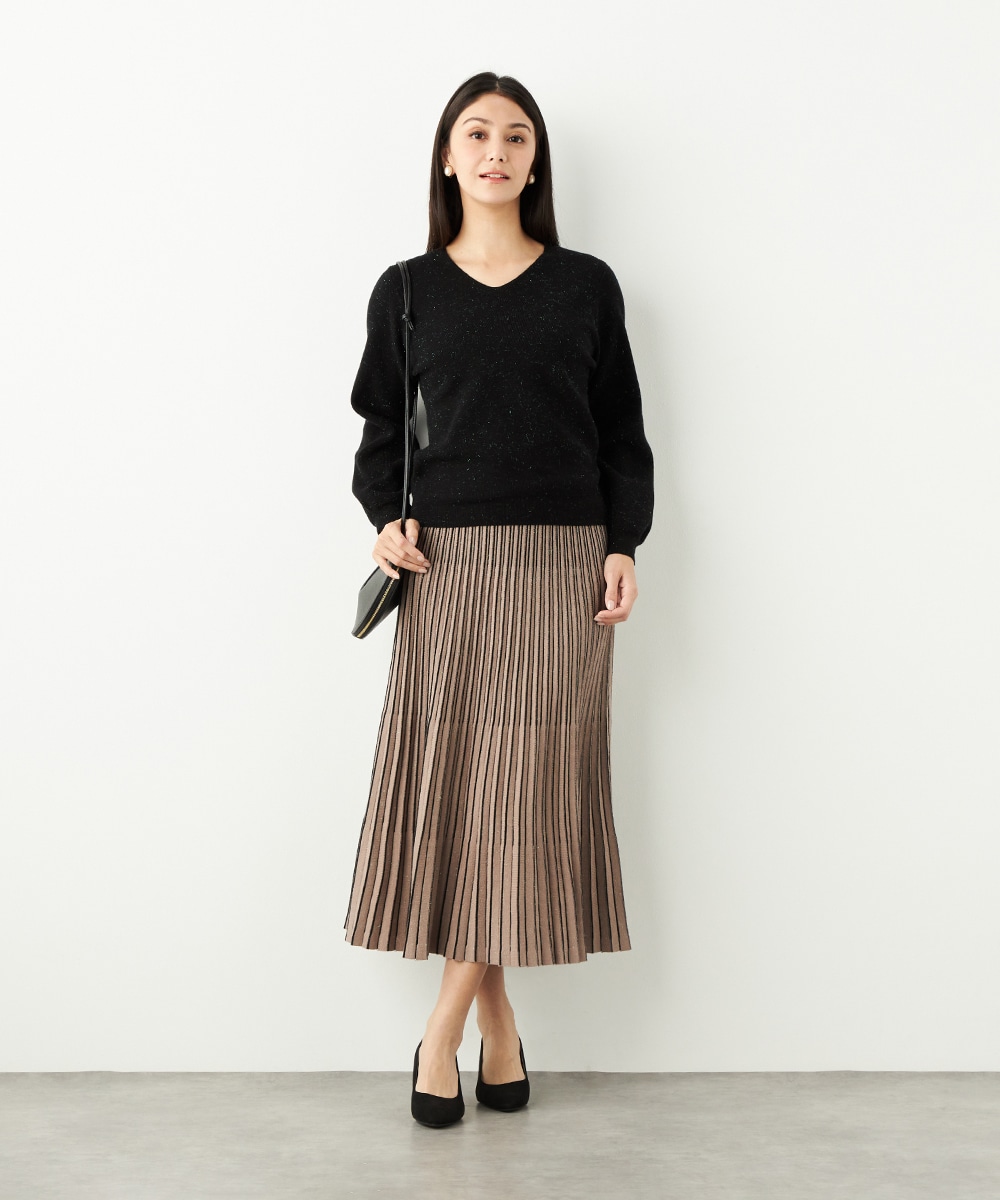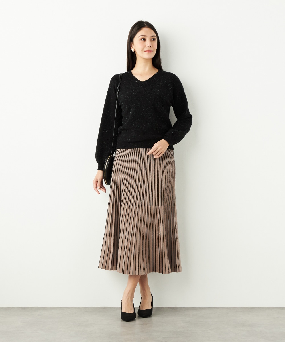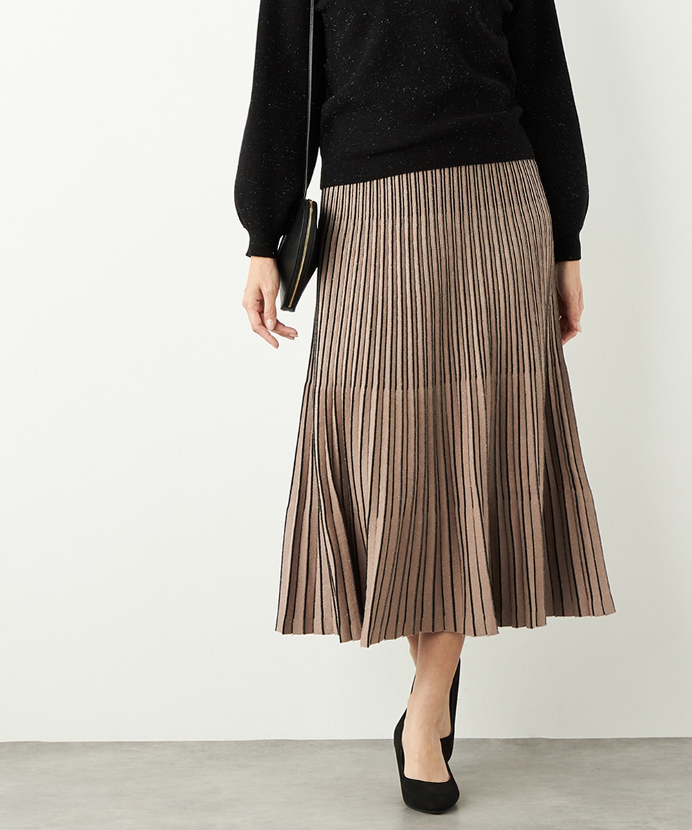 煌めく上品な表情の糸「アンジェリーナ」を使用したニットスカート。