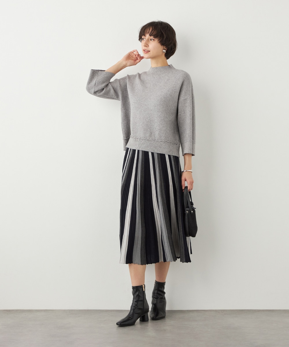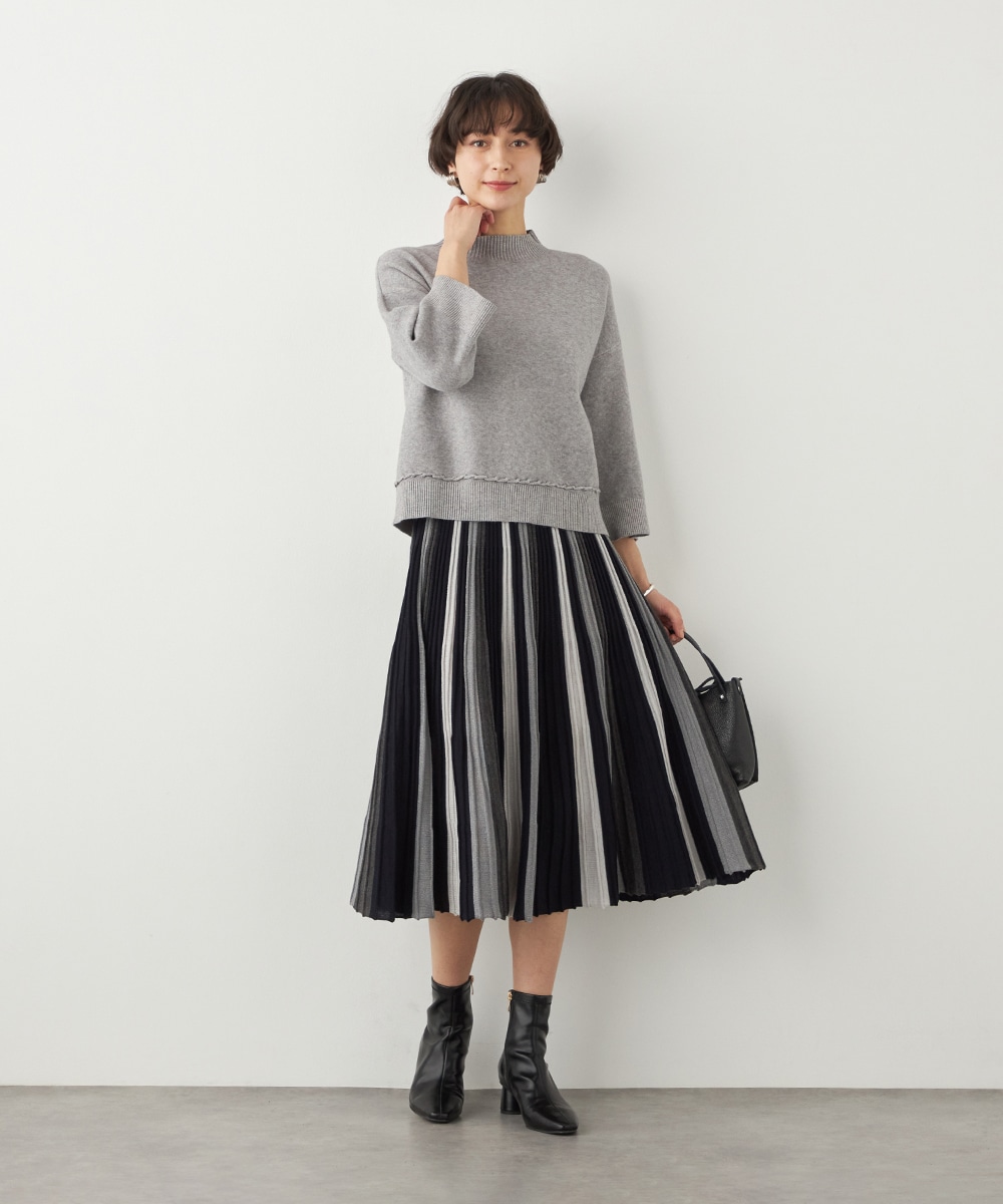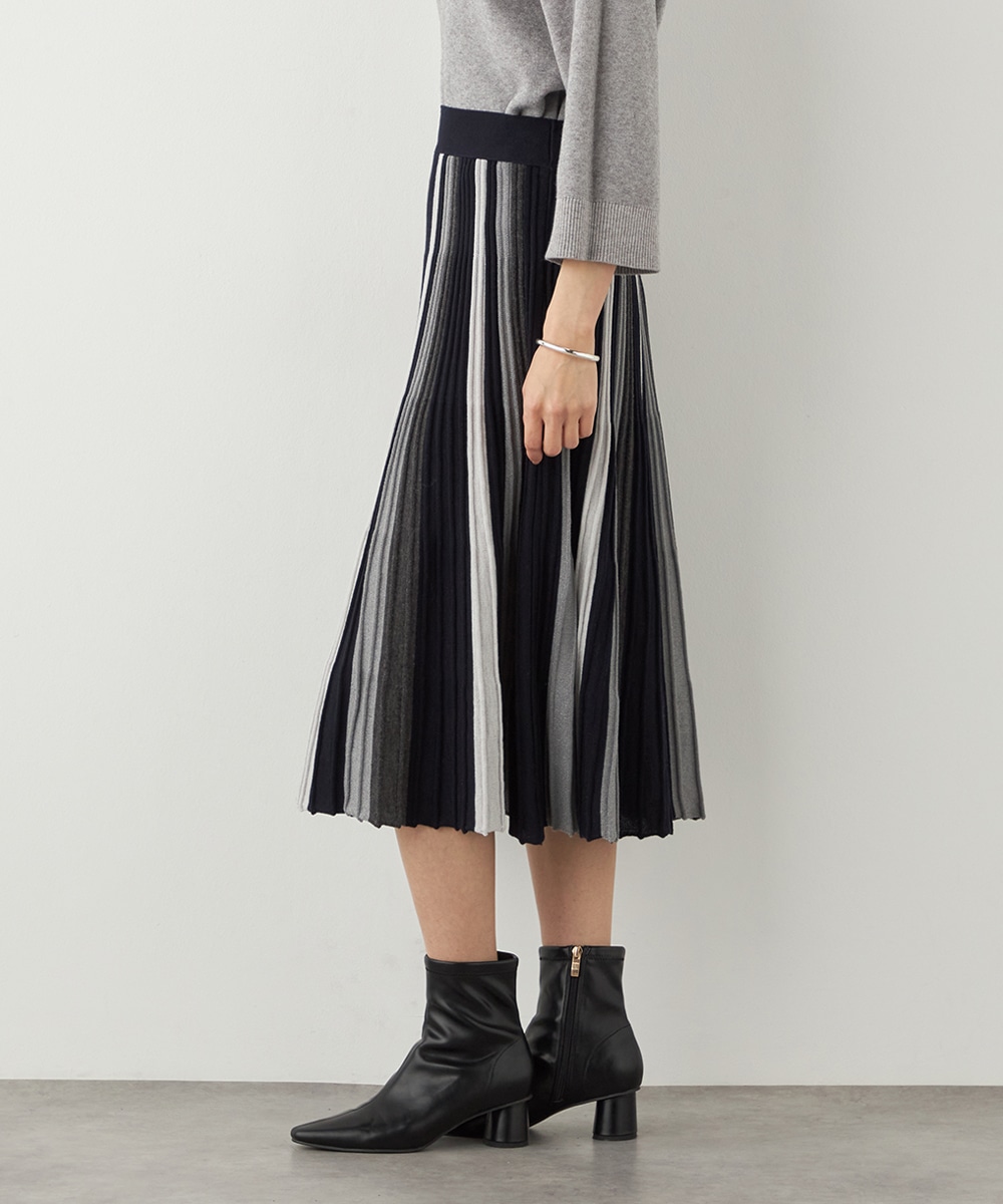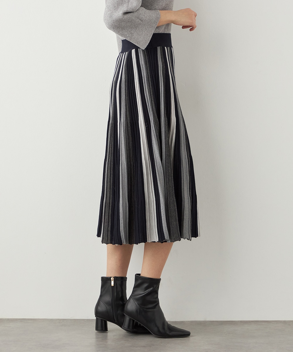 シックながらも印象的なカラーリングでデザインしています。ほどよいラメ感が効き、上品な華やかさがあるのも特徴です。大人っぽくエレガントに穿きこなせるロング丈に仕上げています。きれいなシルエットが映えるよう、コンパクトなトップスを合わせるのがおすすめです。