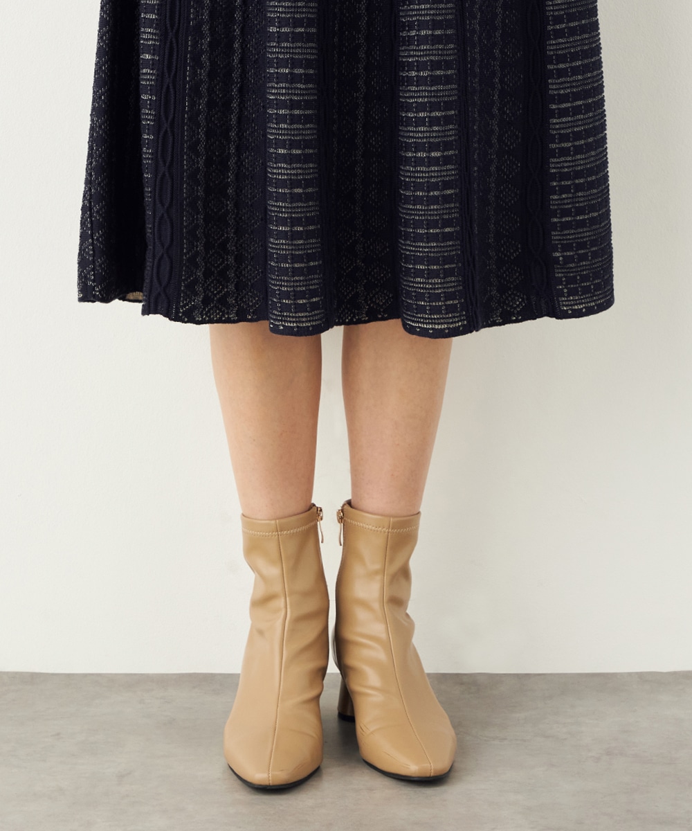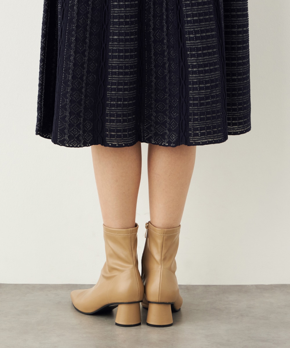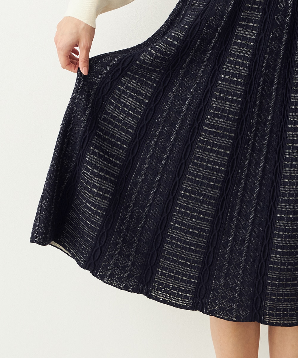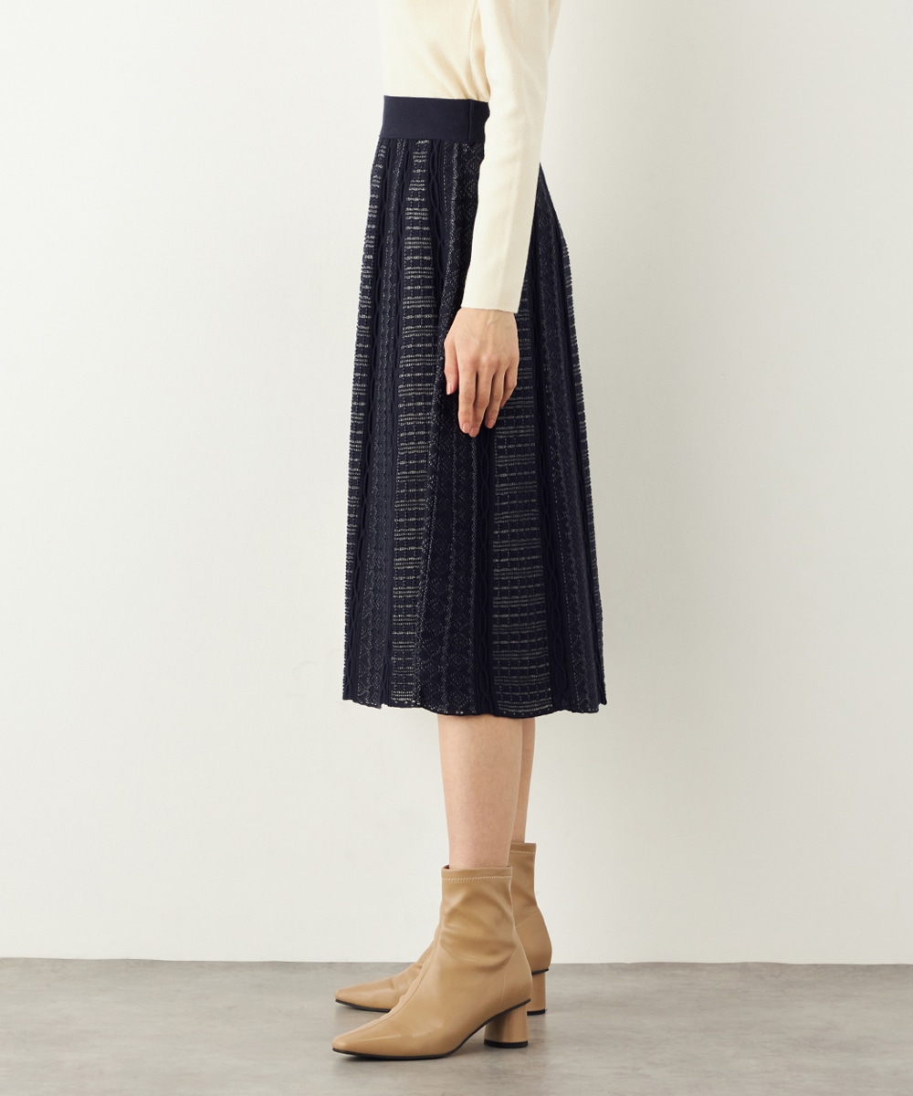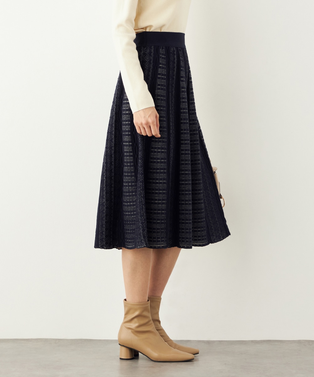 ストライプ状の柄により、縦のラインが強調されてすっきりと穿きこなせます。ほどよいフレアシルエットが大人っぽくエレガントなコーディネートを演出。ニットならではのソフトな風合いも魅力です。ウエストは総ゴム仕様でフィット感良く着用できます。