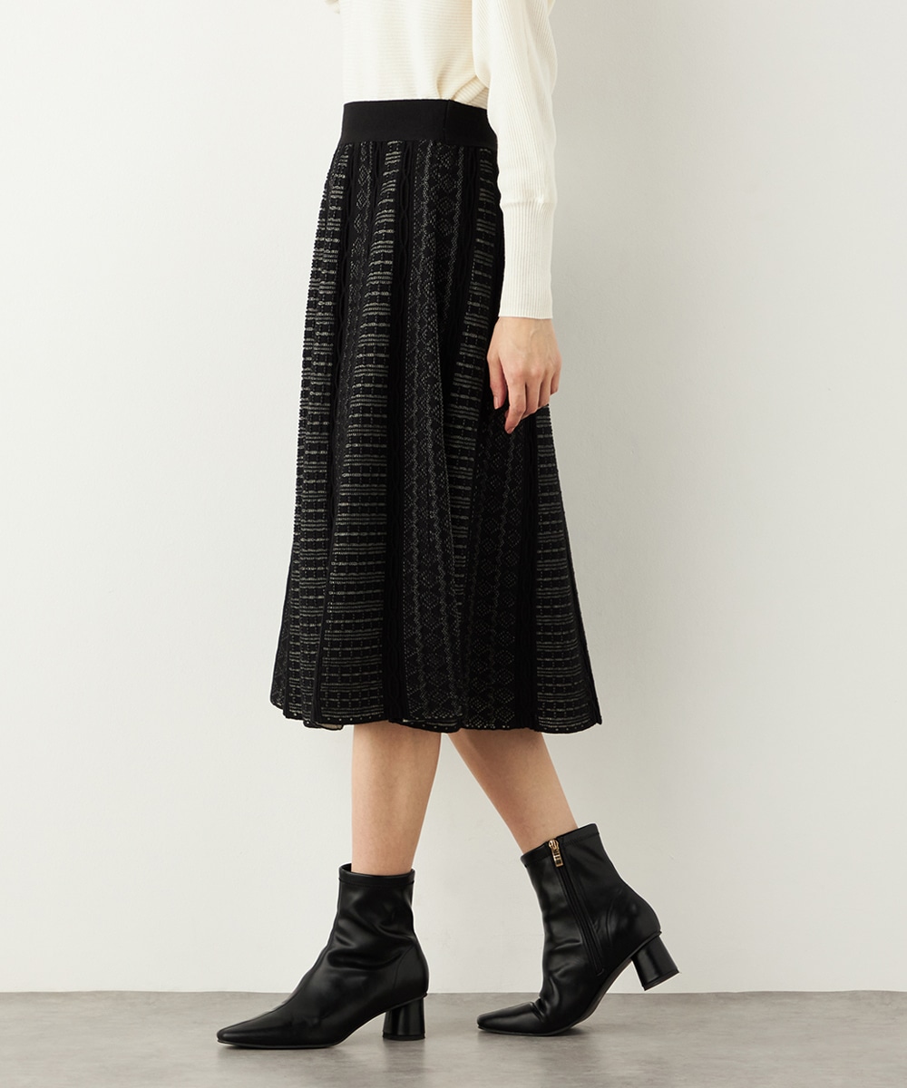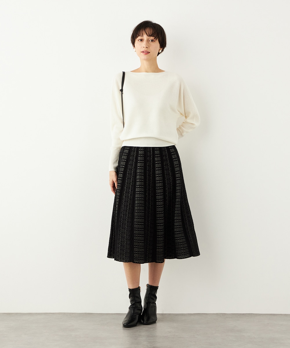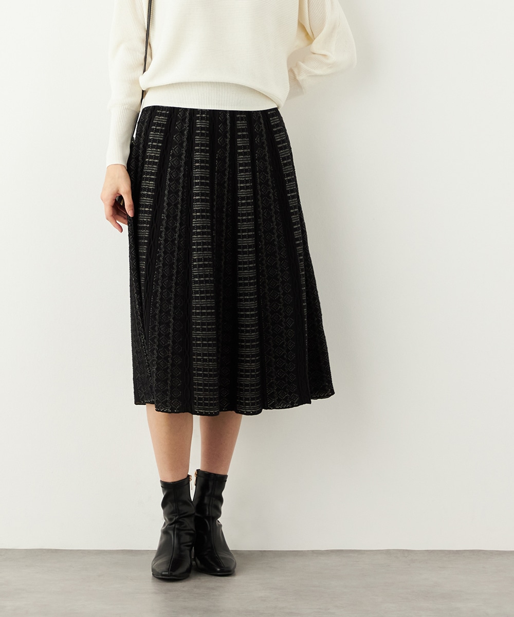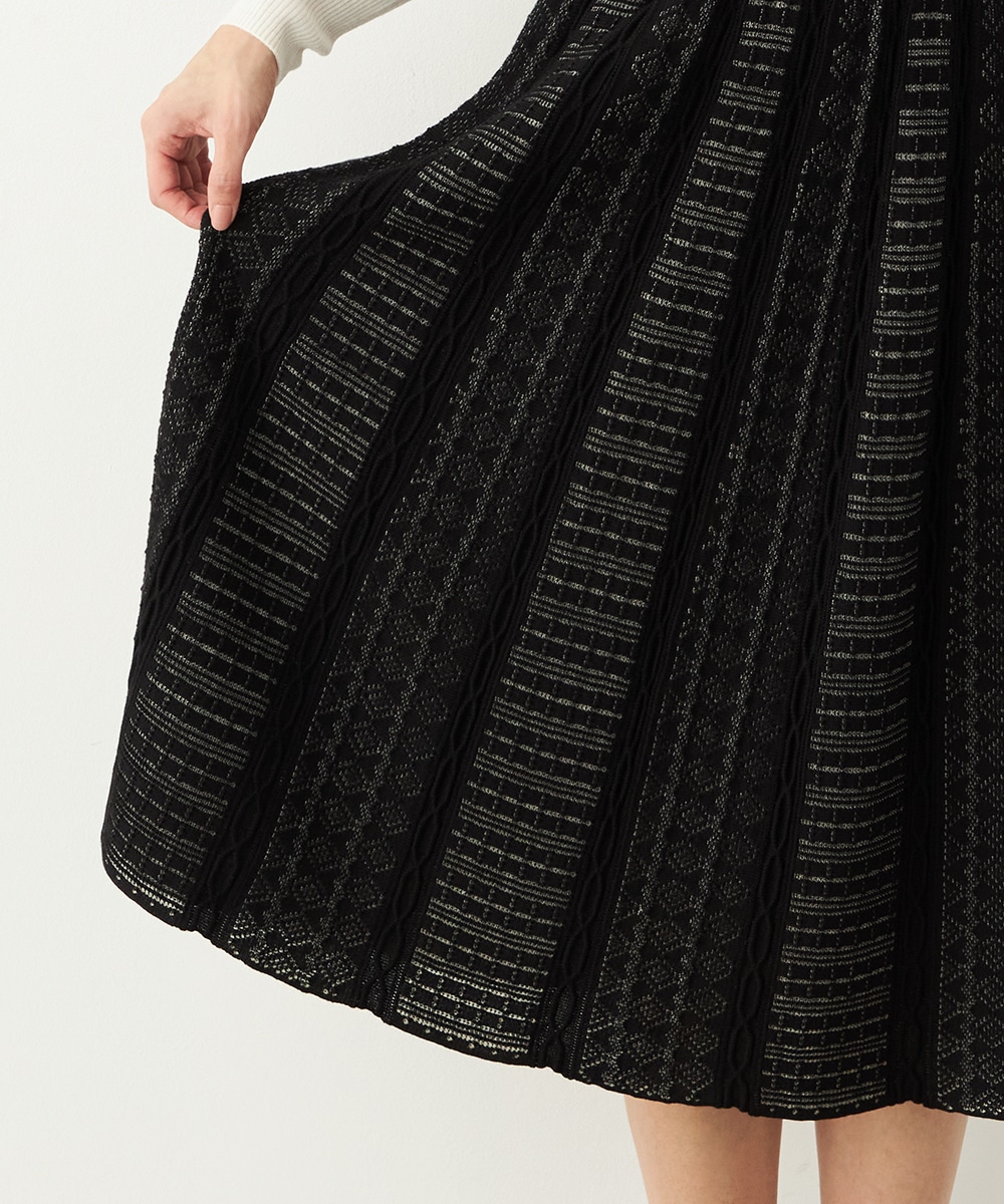 今年らしい落ち着いた雰囲気や上品さがあるカラー。繊細なレース柄のニットスカート。