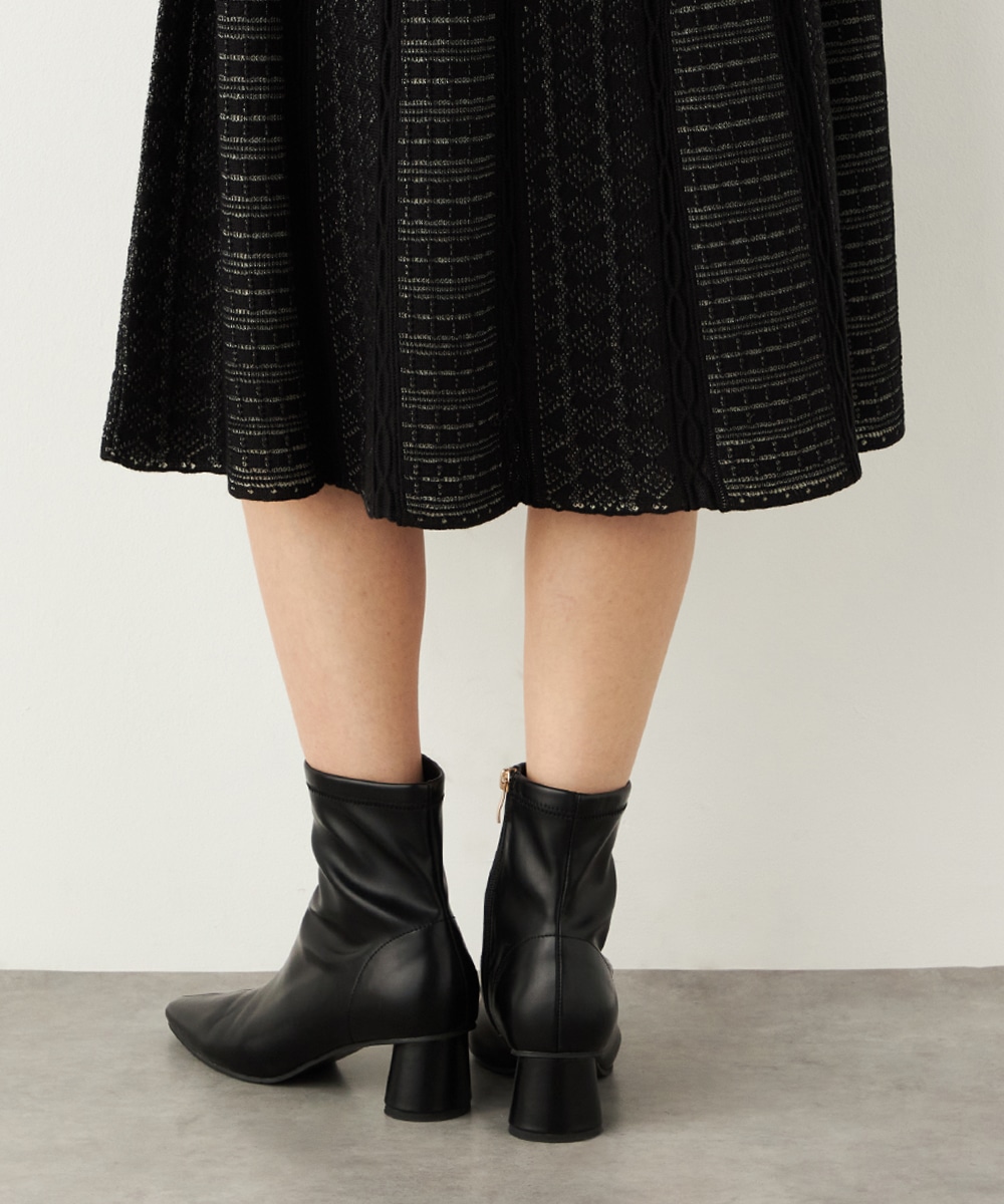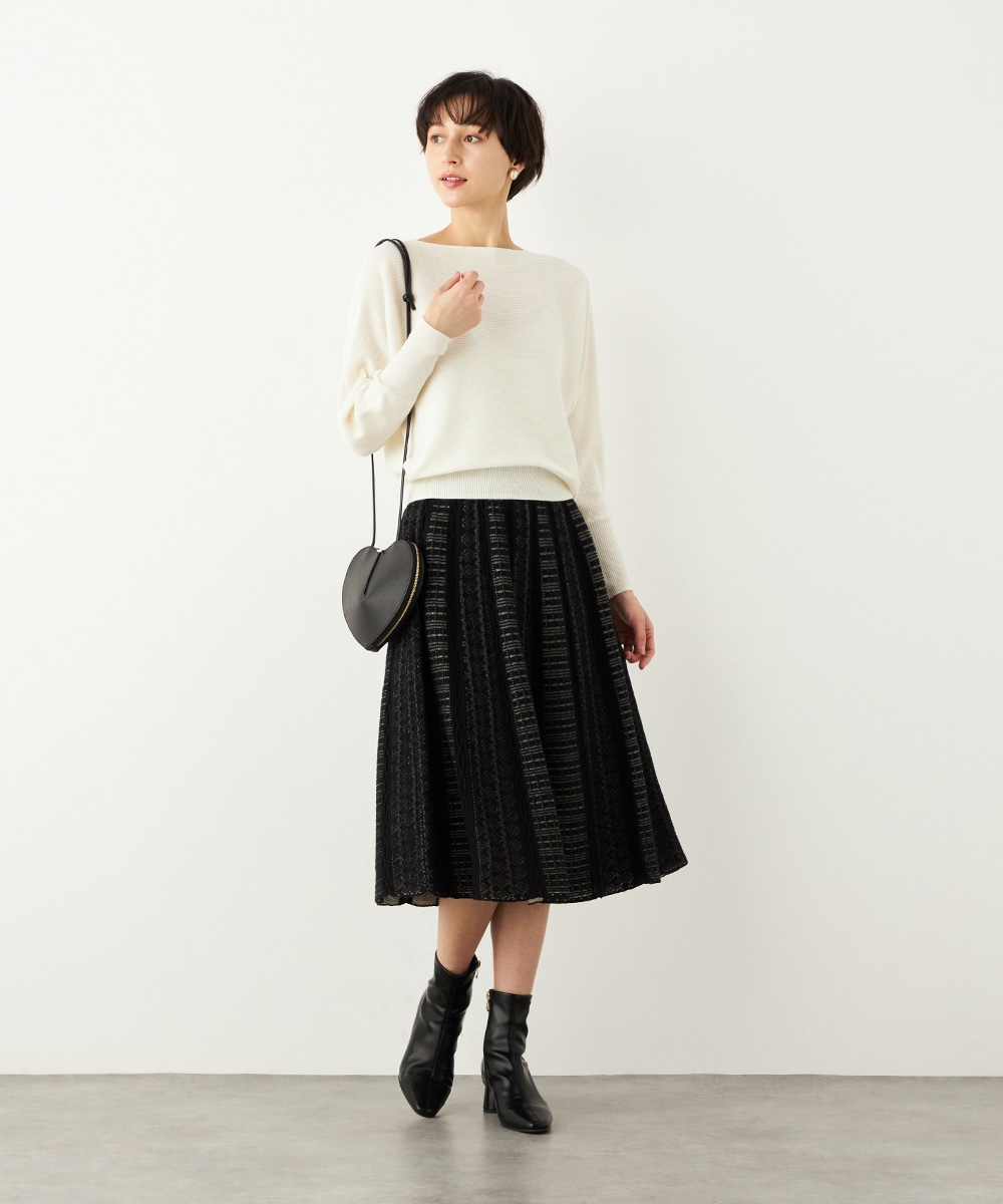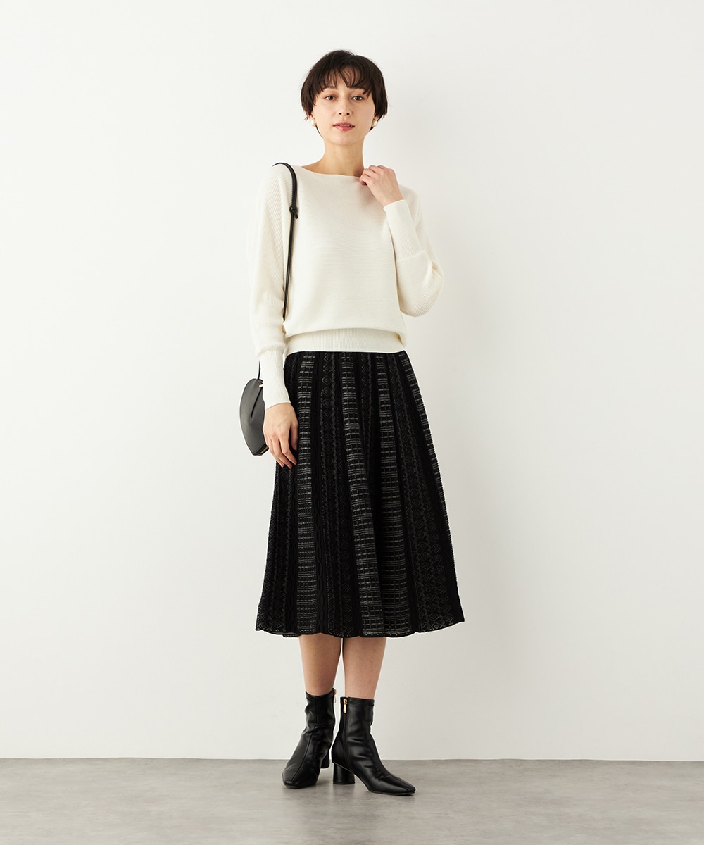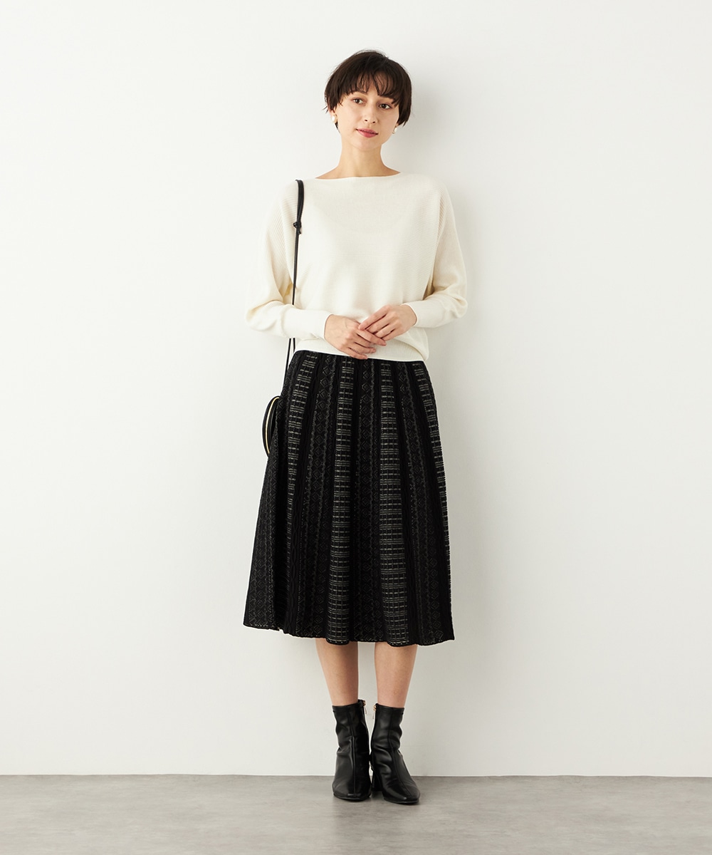 今年らしい落ち着いた雰囲気や上品さがあるカラー。繊細なレース柄のニットスカート。