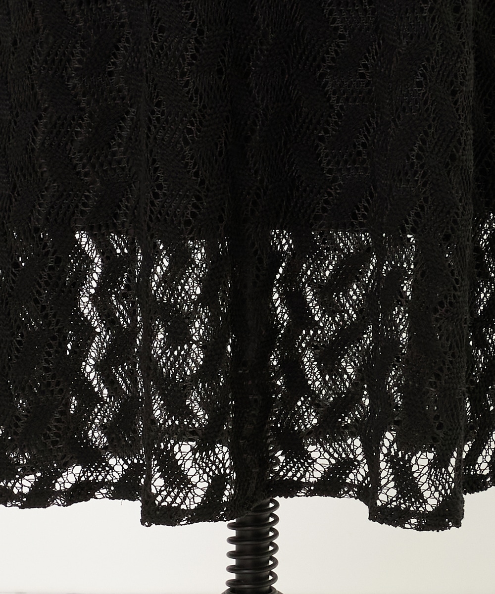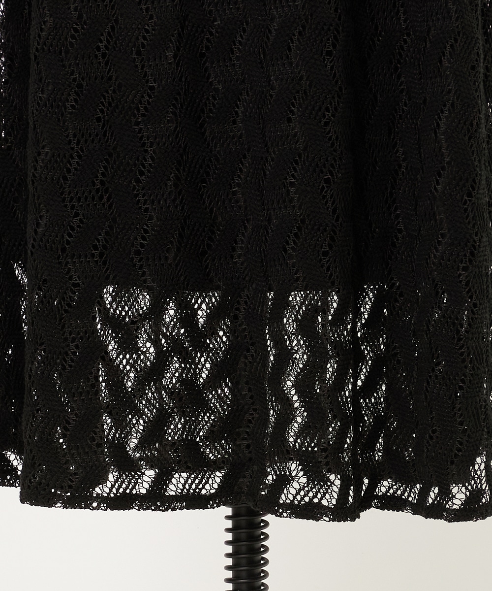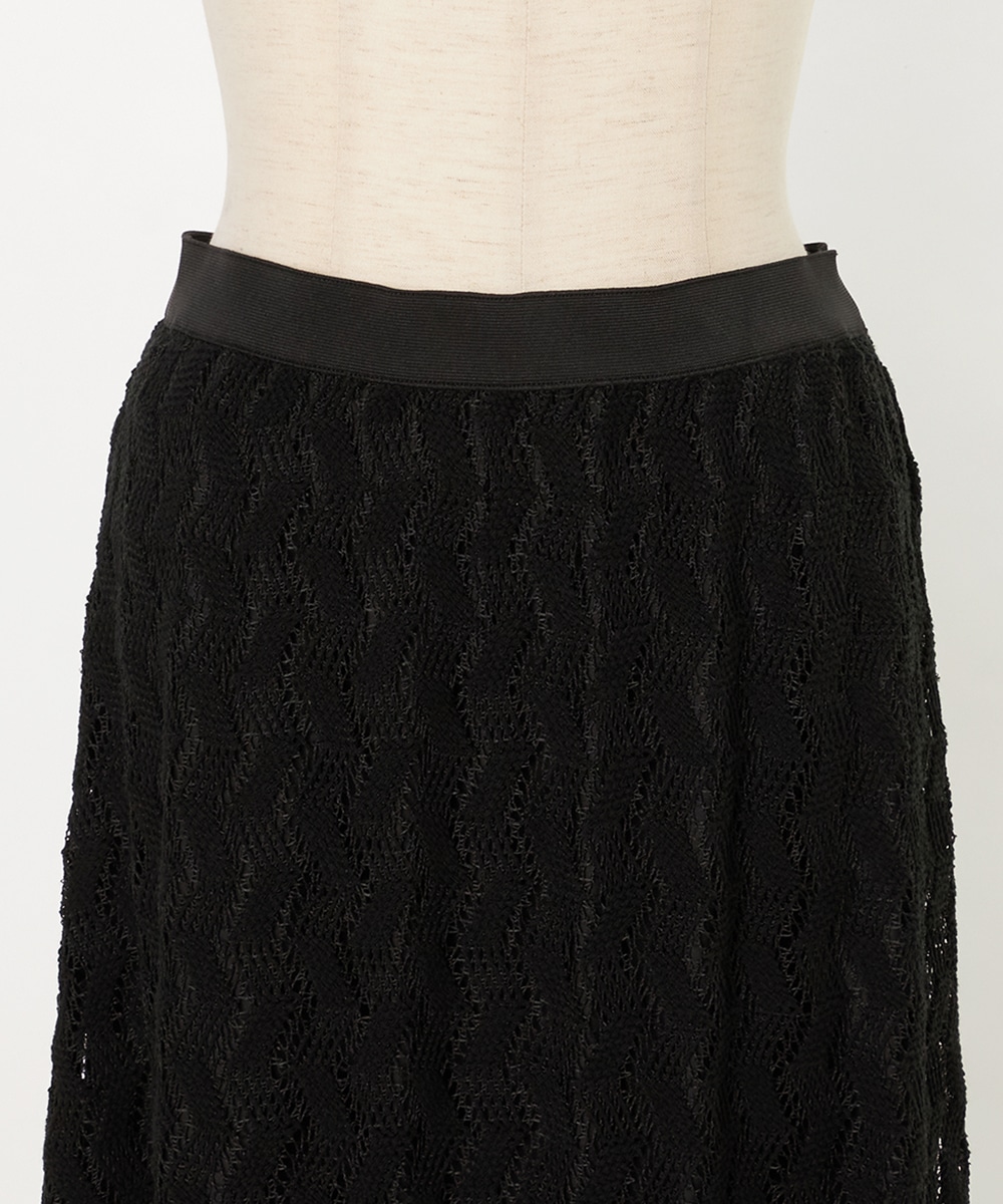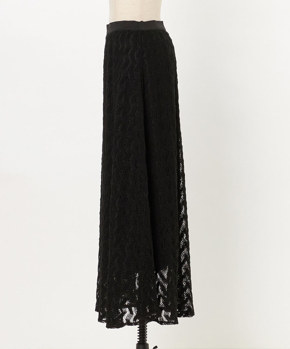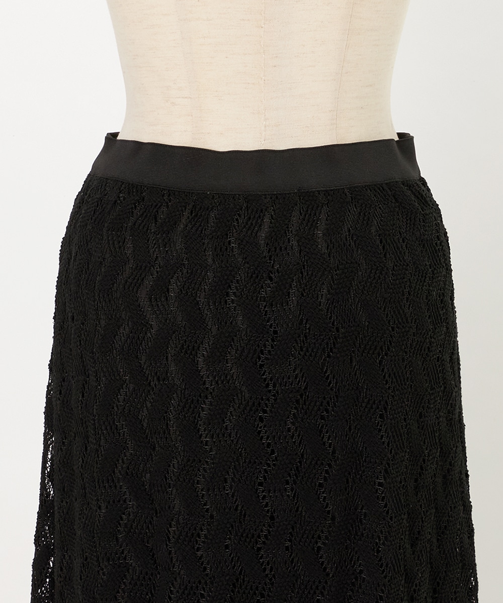 レースならではの繊細な風合いとジオメトリック柄のコンビネーションがポイントです。長めの着丈と広がりを抑えたシルエットが大人っぽさを印象付けます。ウエストはフィット感が快適なゴム仕様。同素材のシャツと合わせてのセットアップコーディネートがおすすめです。