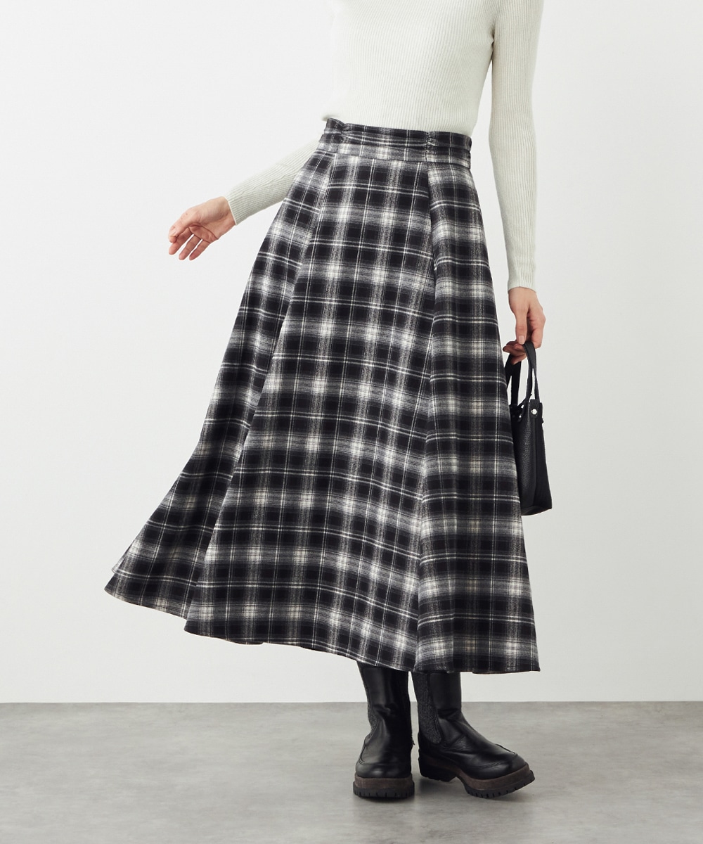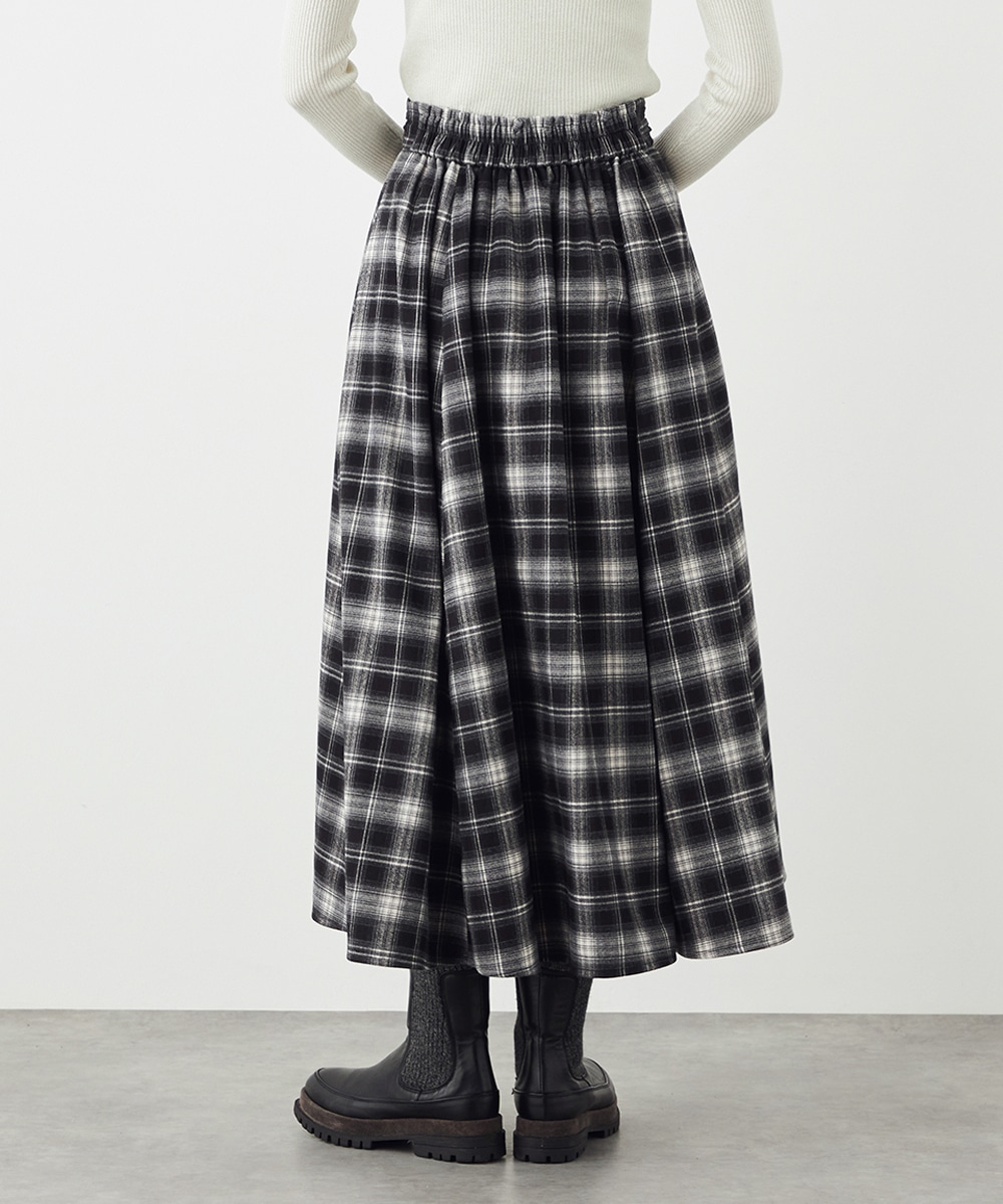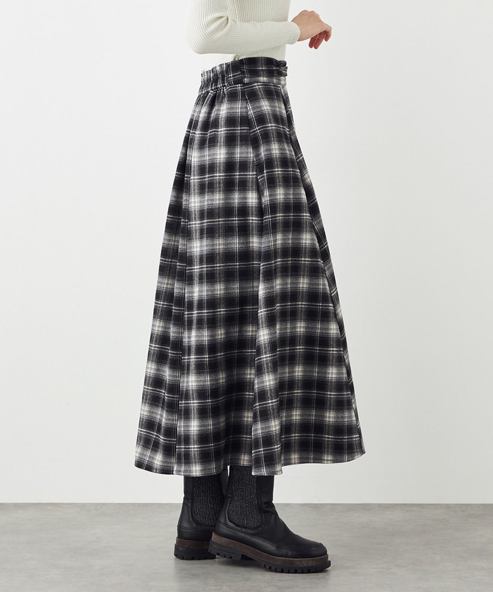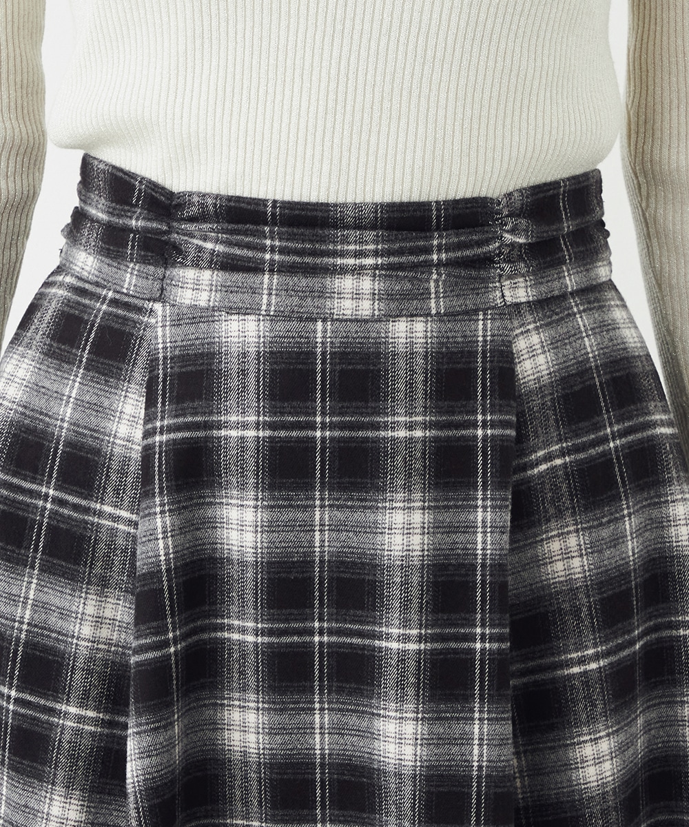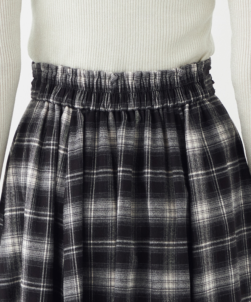 ほどよいフレア感のあるガーリーなシルエットに仕上げています。ゴム仕様の後ろウエストでフィット感良く着用が可能です。コンパクトなトップスを選ぶとキュートな印象のコーディネートを楽しめます。丈が長めのゆったりニットと合わせての大人っぽいカジュアルも素敵。トレンドのレッドとシックなブラックのカラーです。