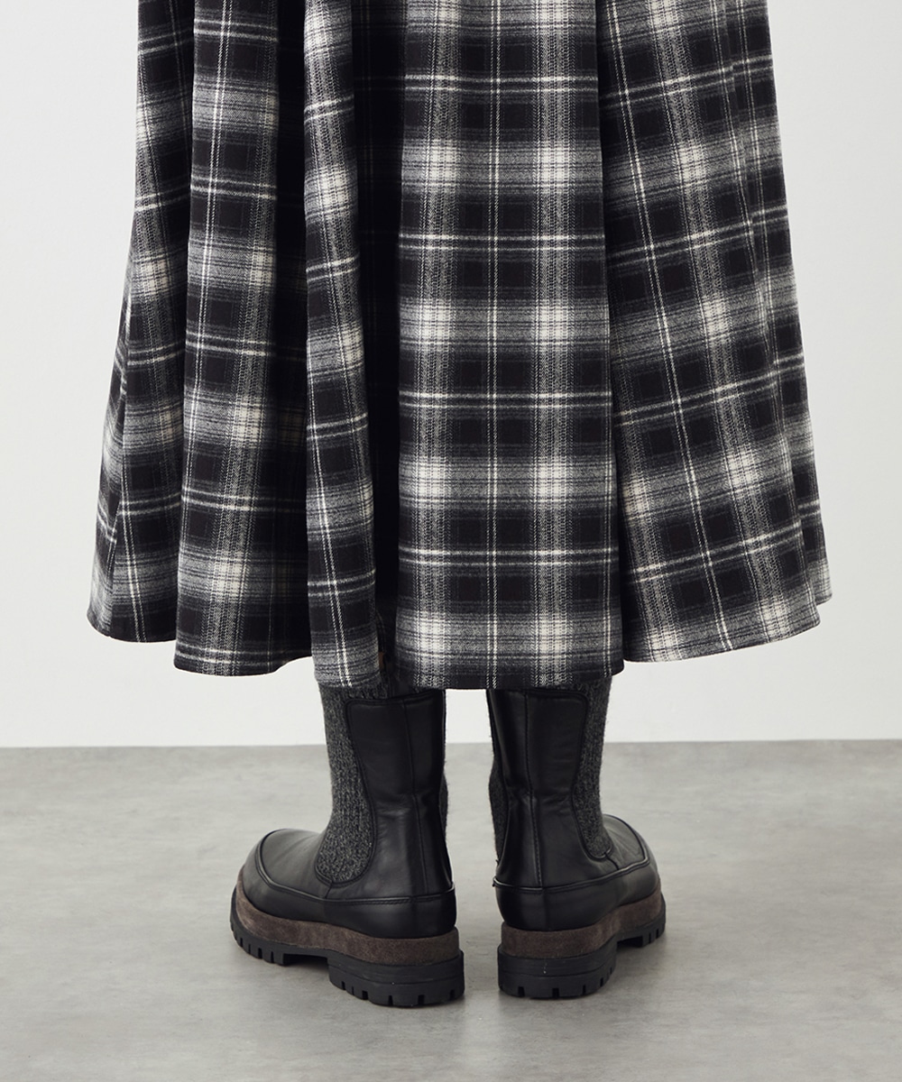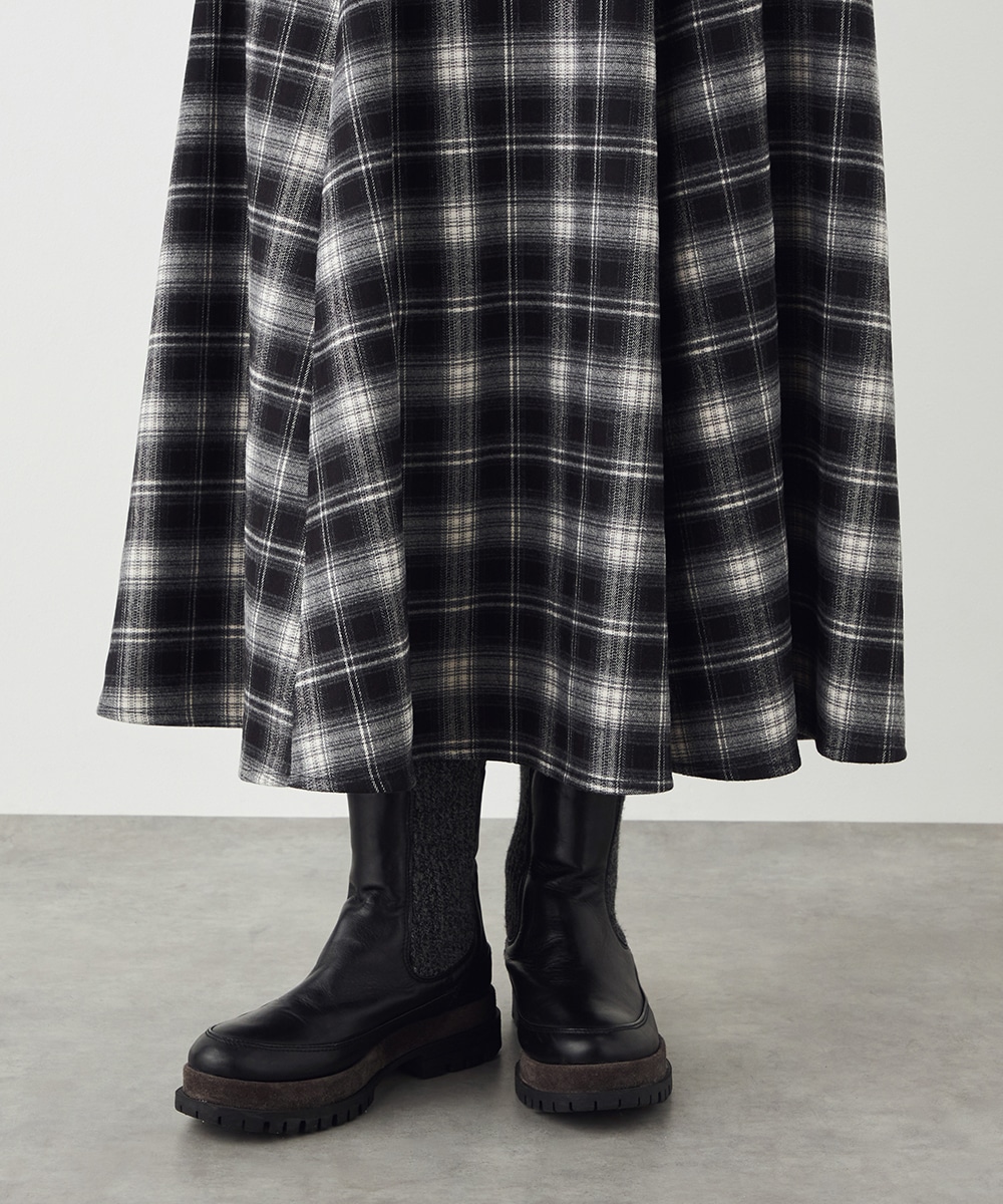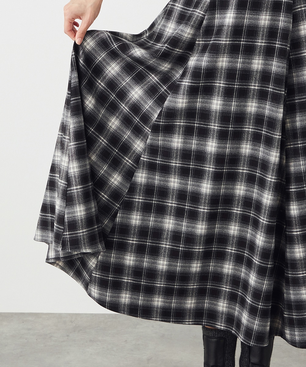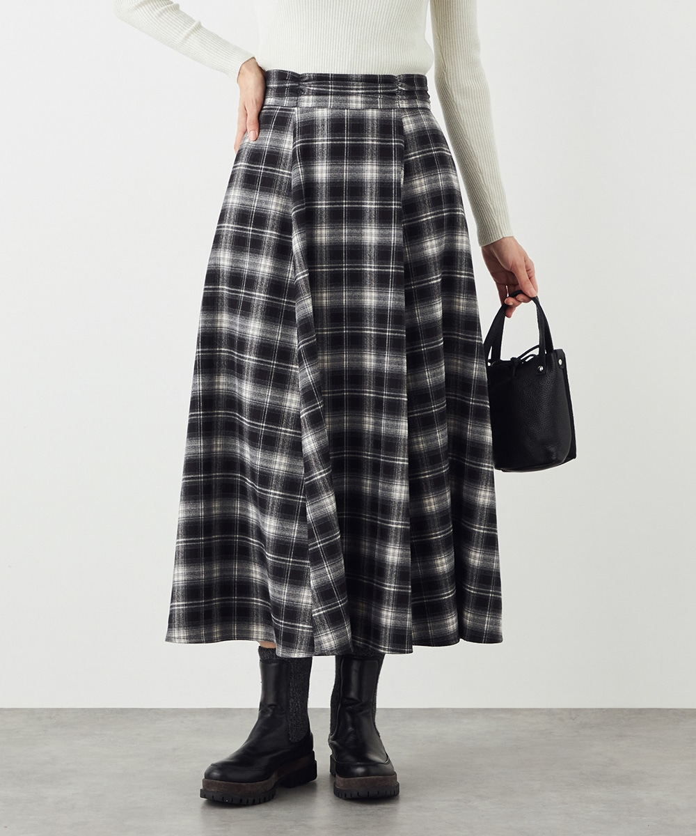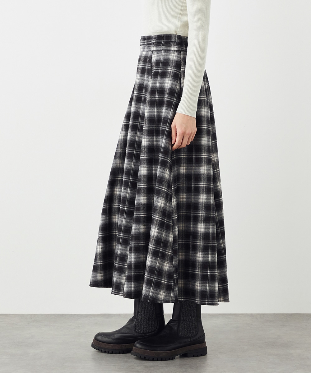 ほどよいフレア感のあるガーリーなシルエットに仕上げています。ゴム仕様の後ろウエストでフィット感良く着用が可能です。コンパクトなトップスを選ぶとキュートな印象のコーディネートを楽しめます。丈が長めのゆったりニットと合わせての大人っぽいカジュアルも素敵。トレンドのレッドとシックなブラックのカラーです。