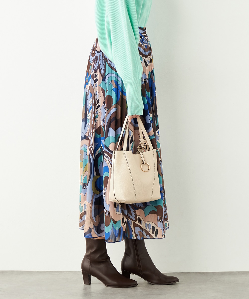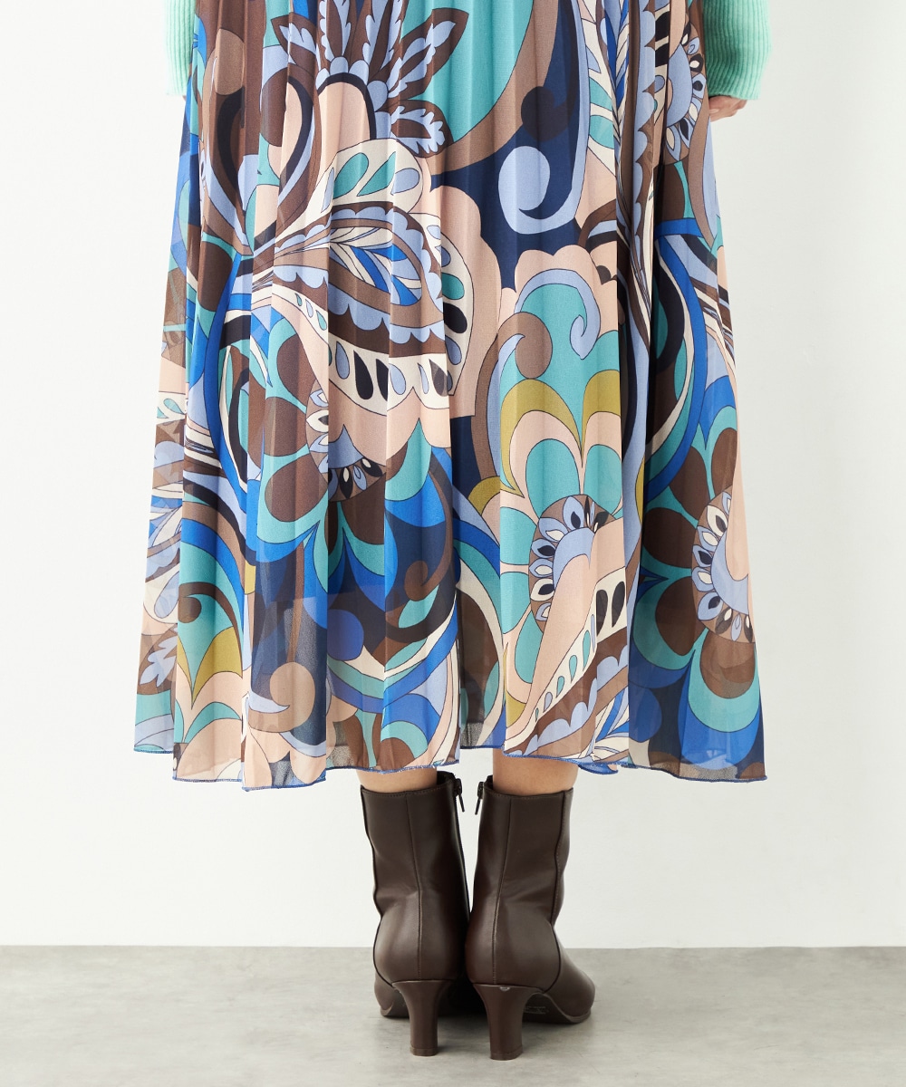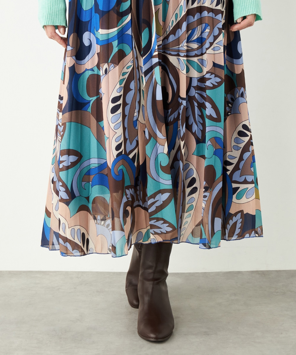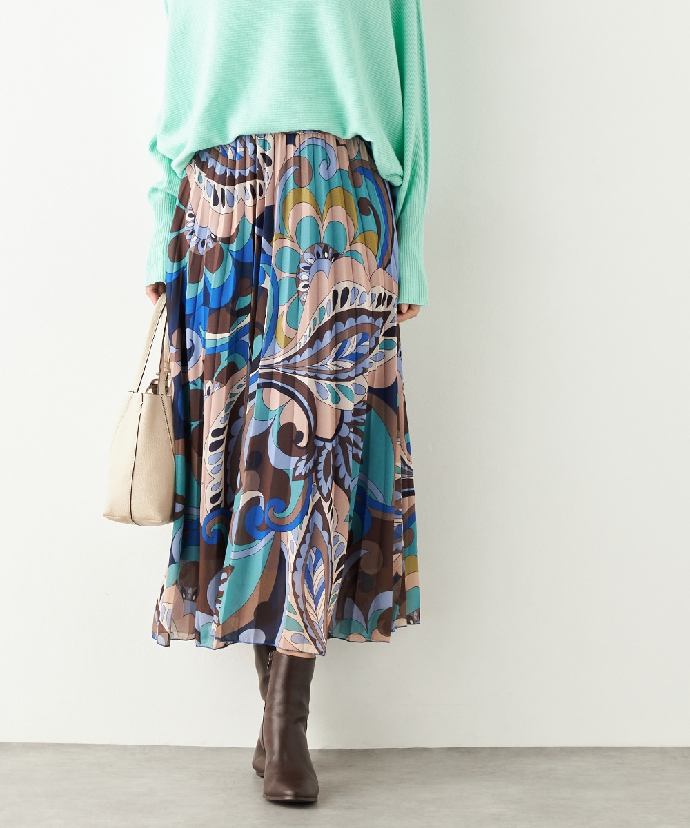 寒色系の大人っぽくクールなカラーリングでまとめています。細かなプリーツが施され、動いた際の揺れ感がエレガントな印象です。生地の繊細な風合いも魅力。上品に穿きこなせる長めの着丈です。ウエストは総ゴム仕様でフィット感良く着用できます。新色の春ニットと合わせるのもおすすめです。