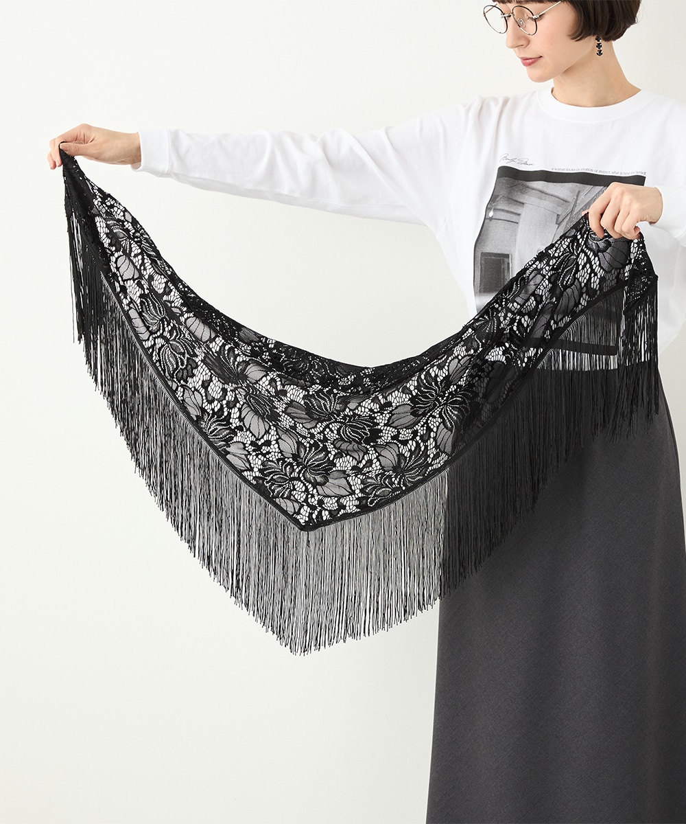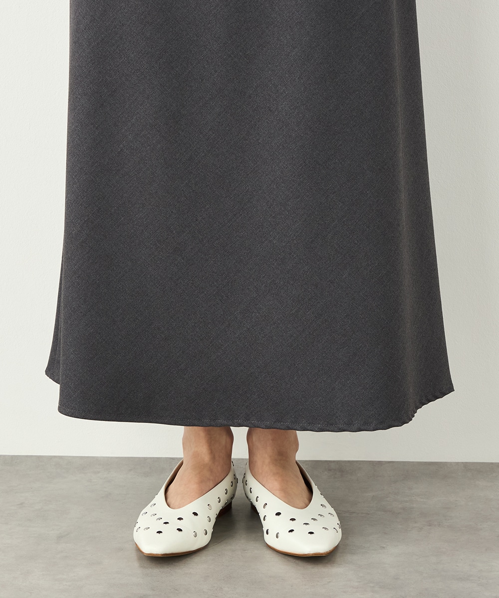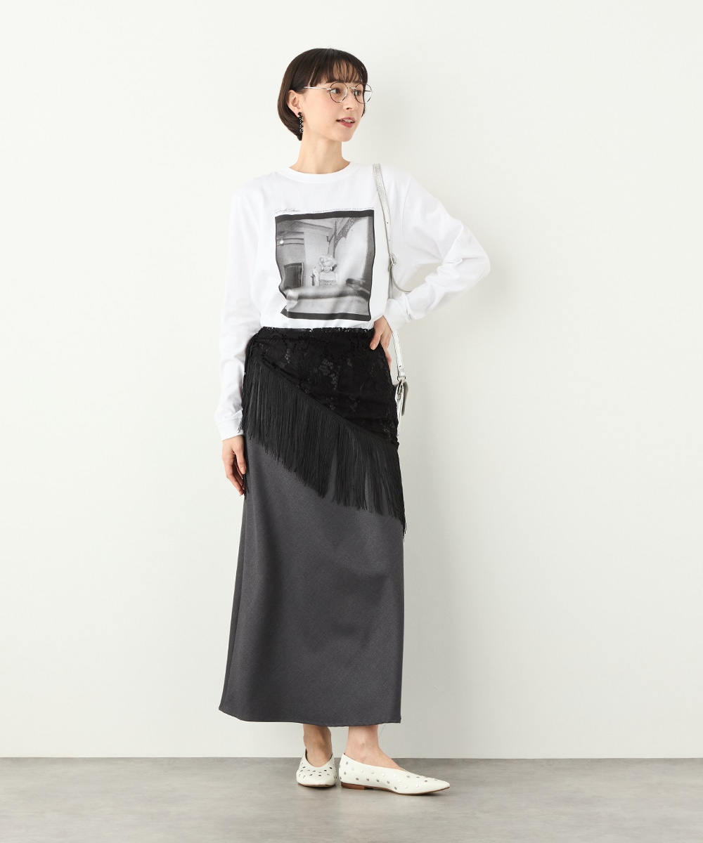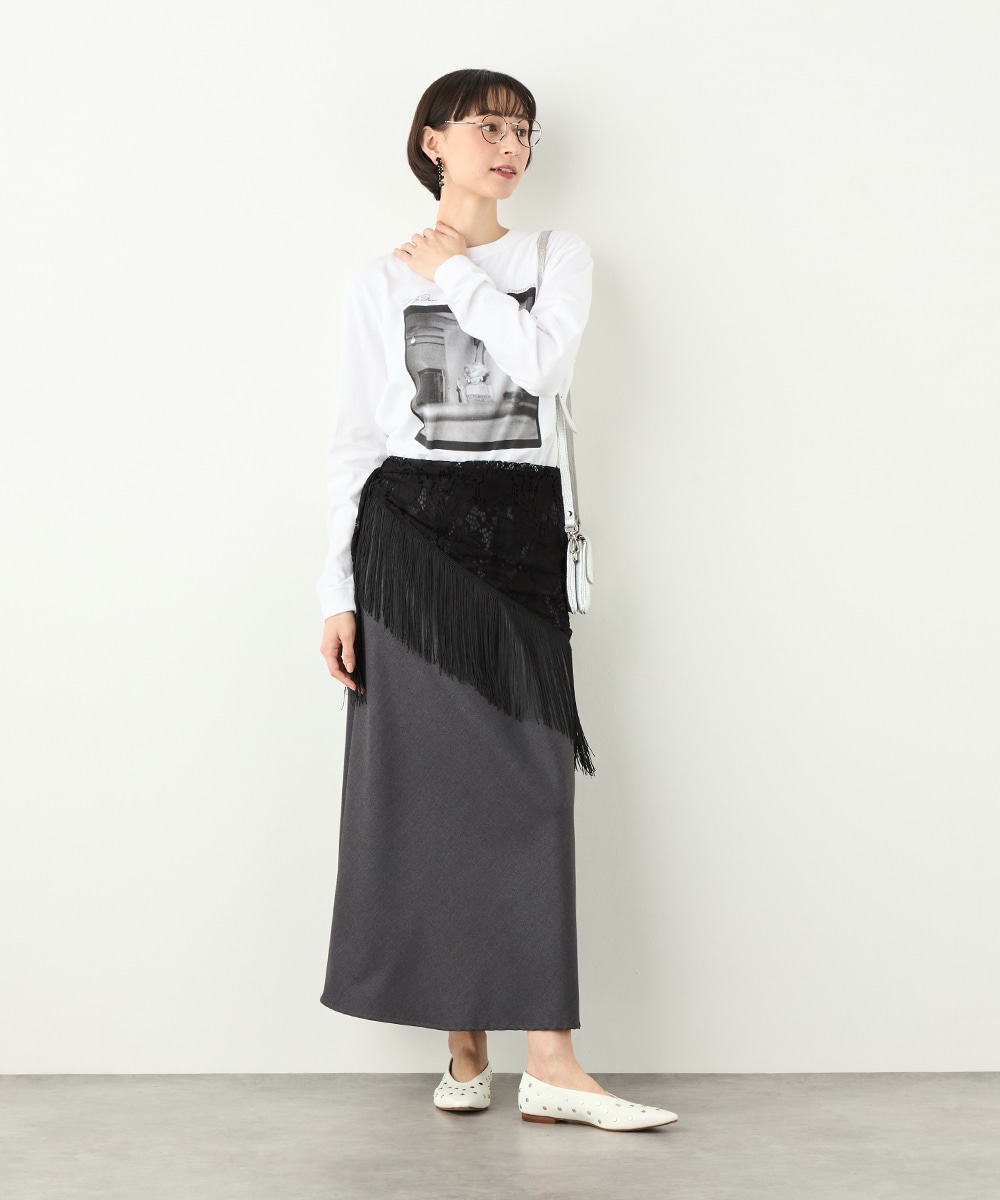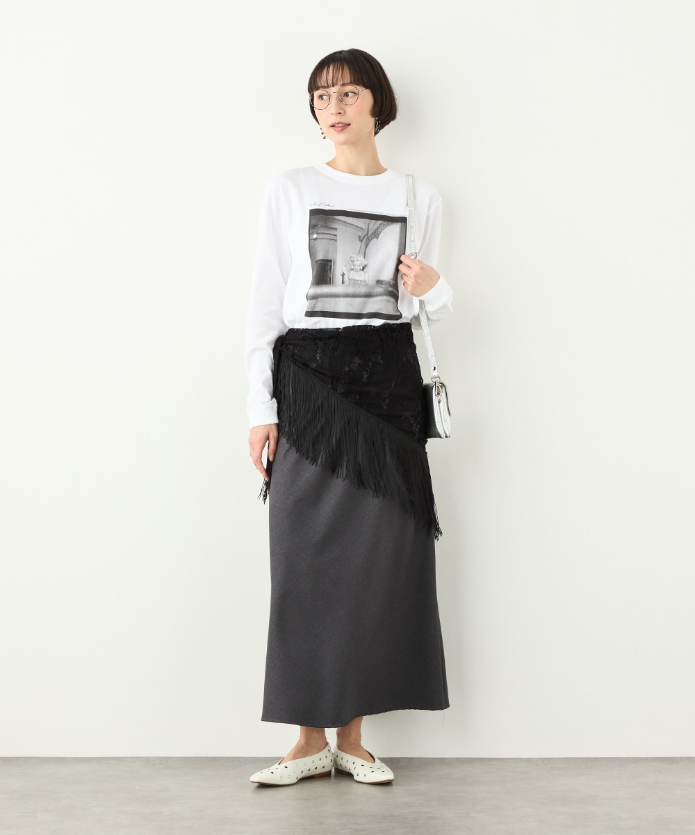 広がりすぎない適度なフレア感とロング丈が大人っぽくエレガントな印象のコーディネートに導きます。ソフトな肌触りのカットソー素材にゴム仕様のウエストで穿き心地も快適です。付属のストールは三角形のシルエットで、シンプルに腰に巻くだけでもバランス良く決まります。
