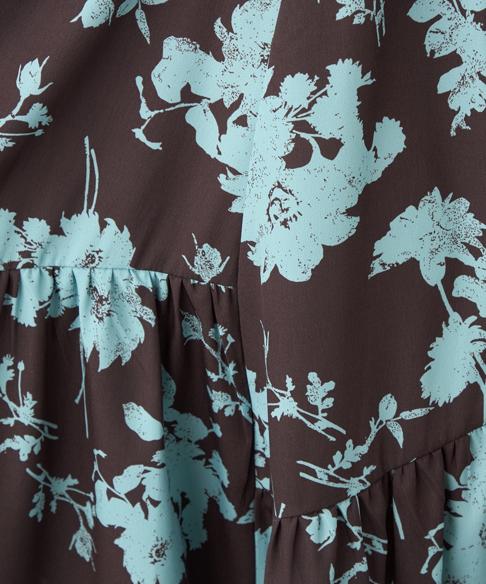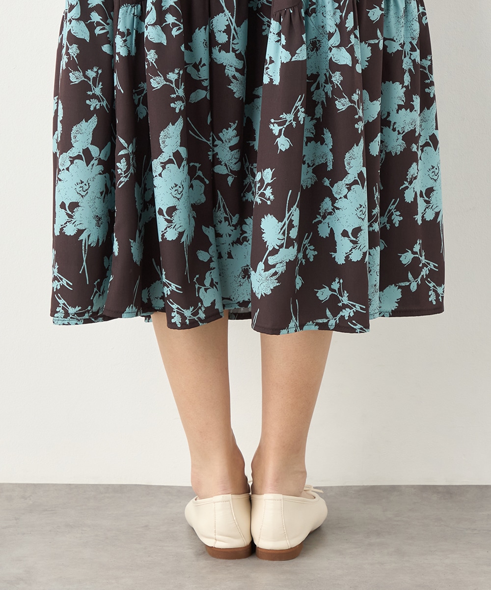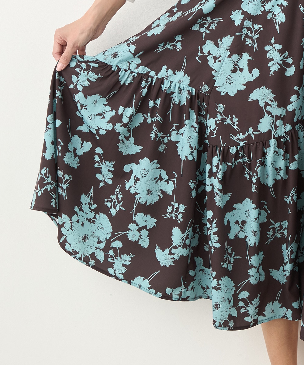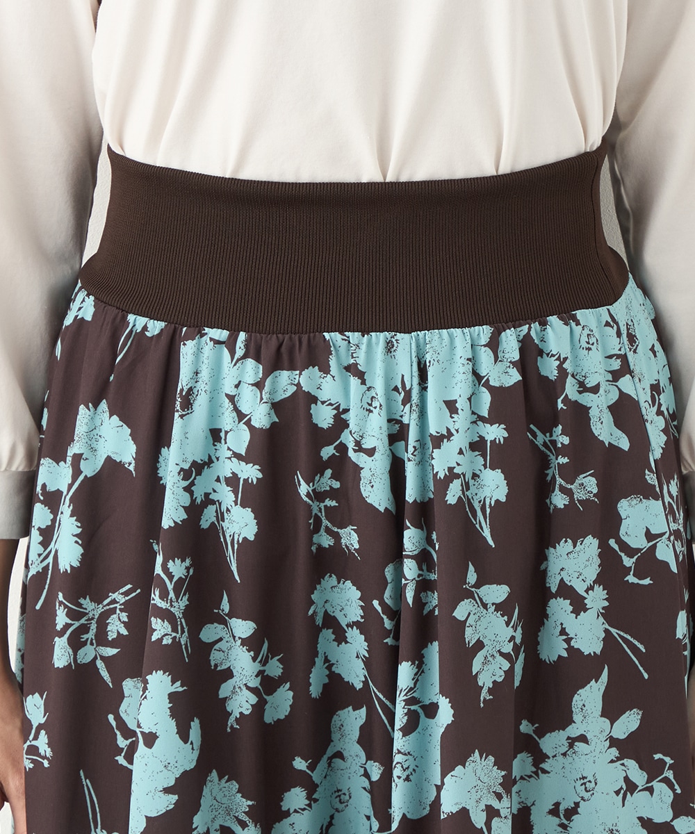 ほどよいボリュームのフラワーが上品な存在感を発揮しています。ふんわり感が愛らしい印象のティアードシルエット。切り替えを斜めにしているのもこだわりのポイントです。ウエストは太幅のリブ地を採用しており、スタイルのメリハリが強調されます。エレガントに穿ける長めの着丈です。