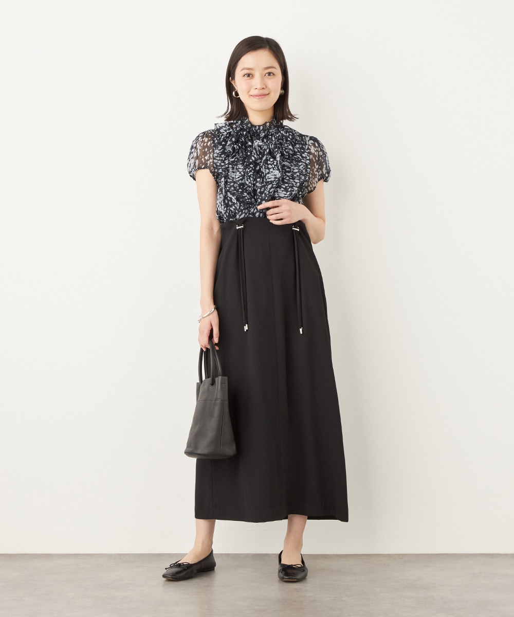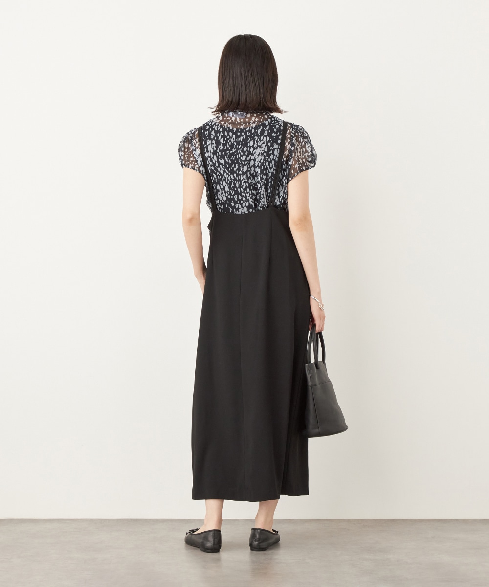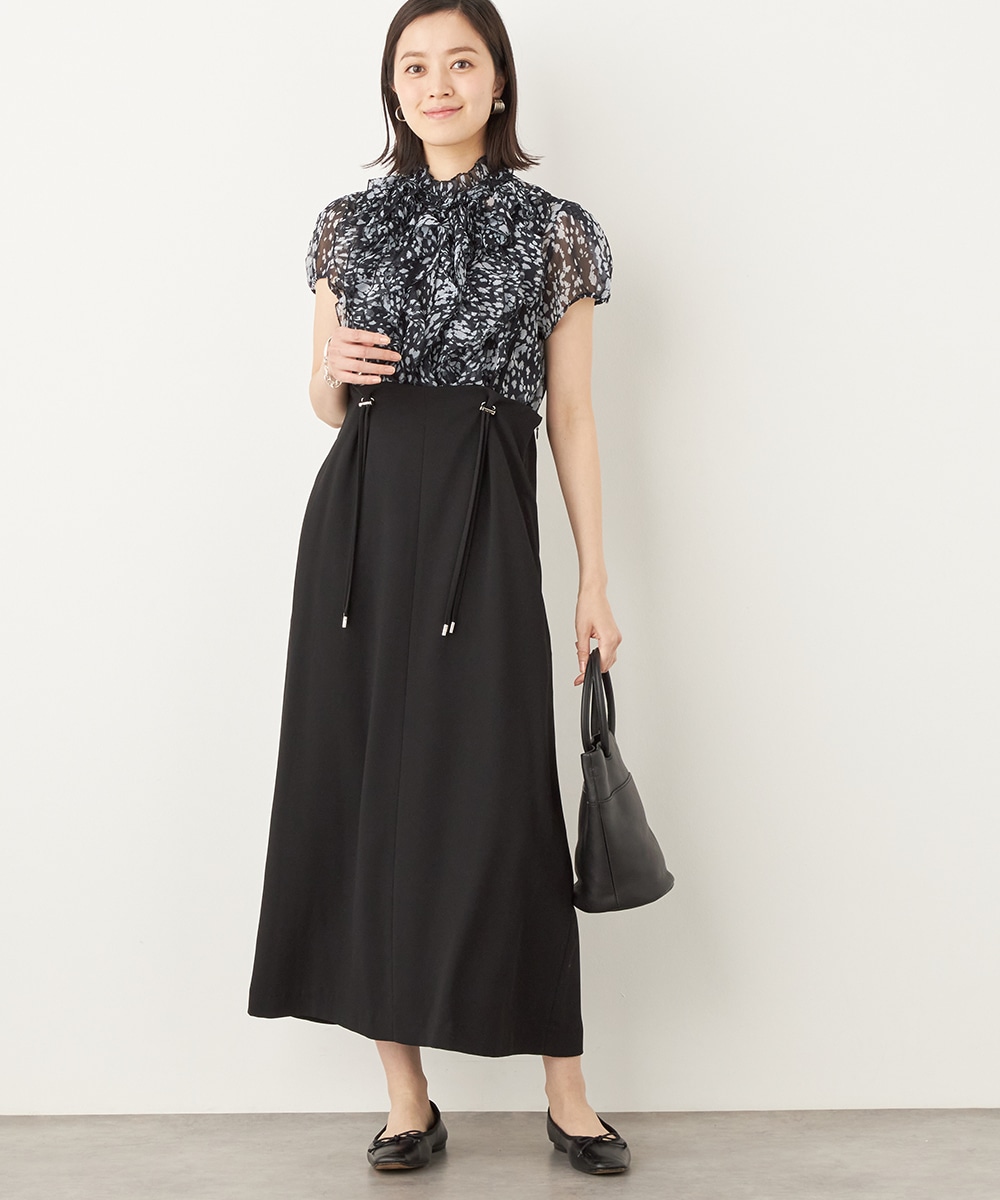 肩ベルトの長さを調整できるアジャスターがアクセントとしても効いています。シルエットは広がりを抑えてすっきりとまとめました。長めの着丈のエレガンスも魅力です。カットソーやブラウスはもちろん、厚手のニットとも合わせられ、ロングシーズンご活用いただけます。