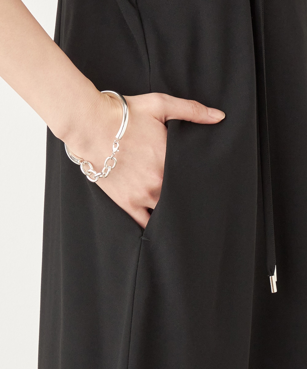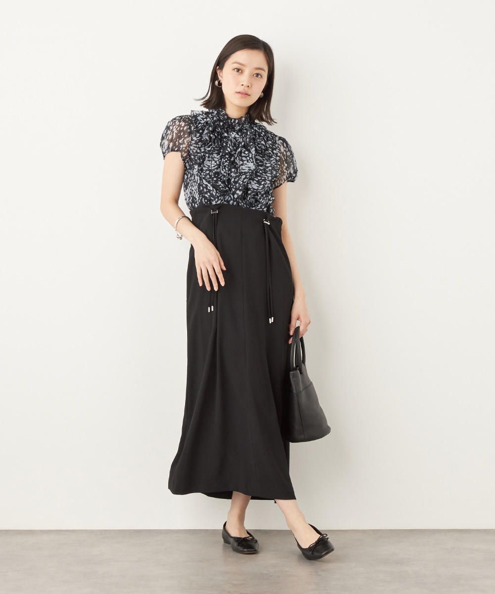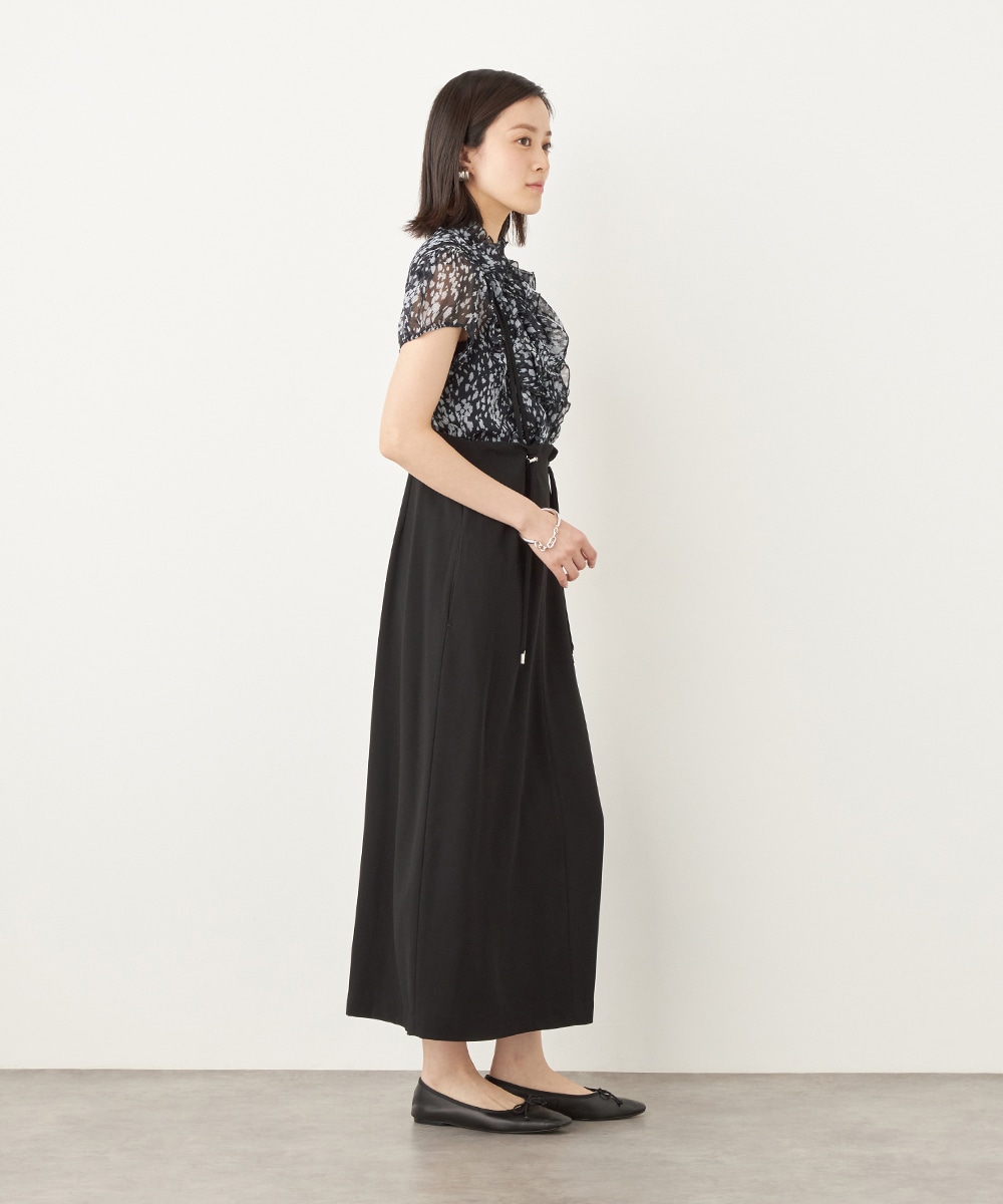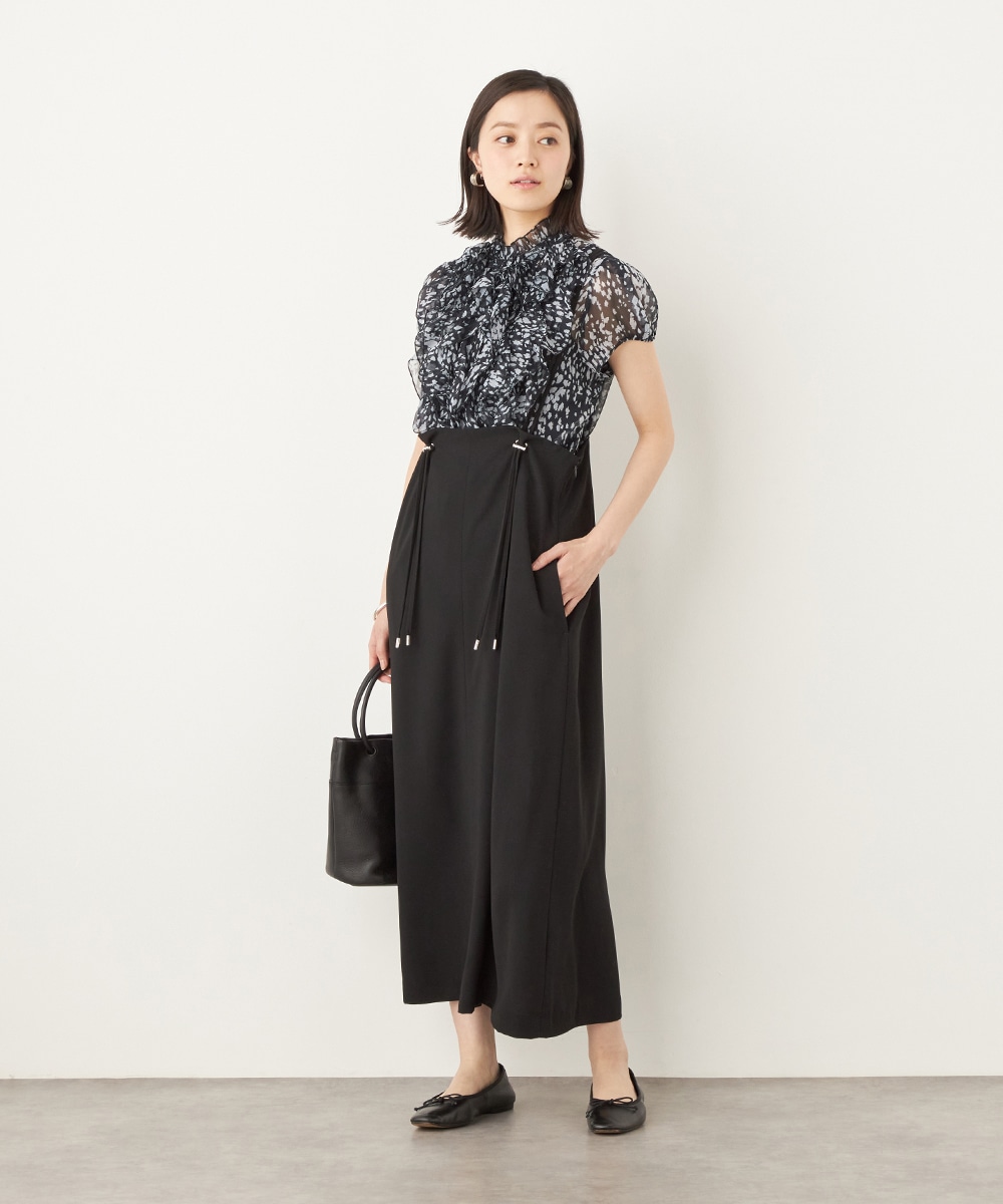 肩ベルトの長さを調整できるアジャスターがアクセントとしても効いています。シルエットは広がりを抑えてすっきりとまとめました。長めの着丈のエレガンスも魅力です。カットソーやブラウスはもちろん、厚手のニットとも合わせられ、ロングシーズンご活用いただけます。