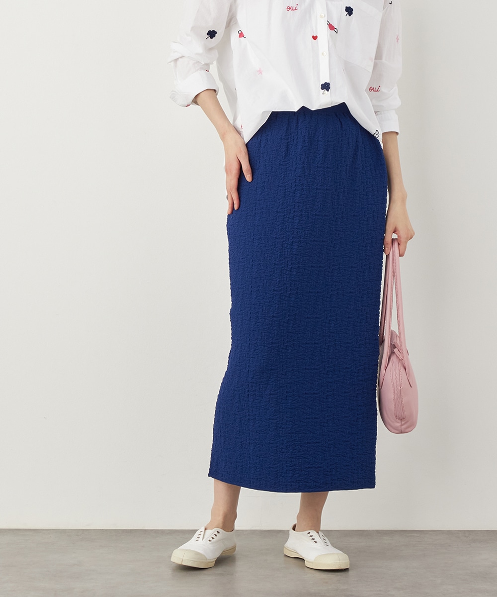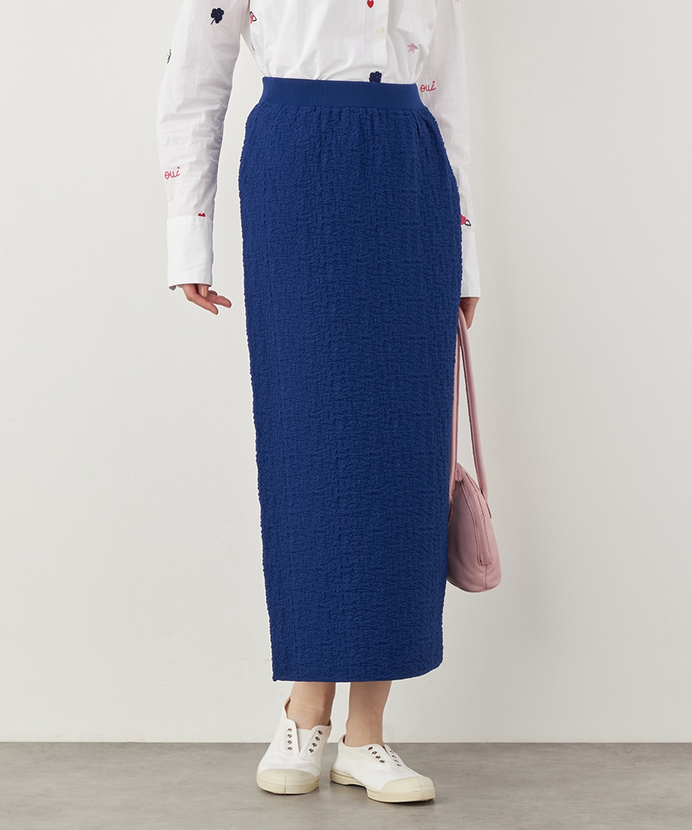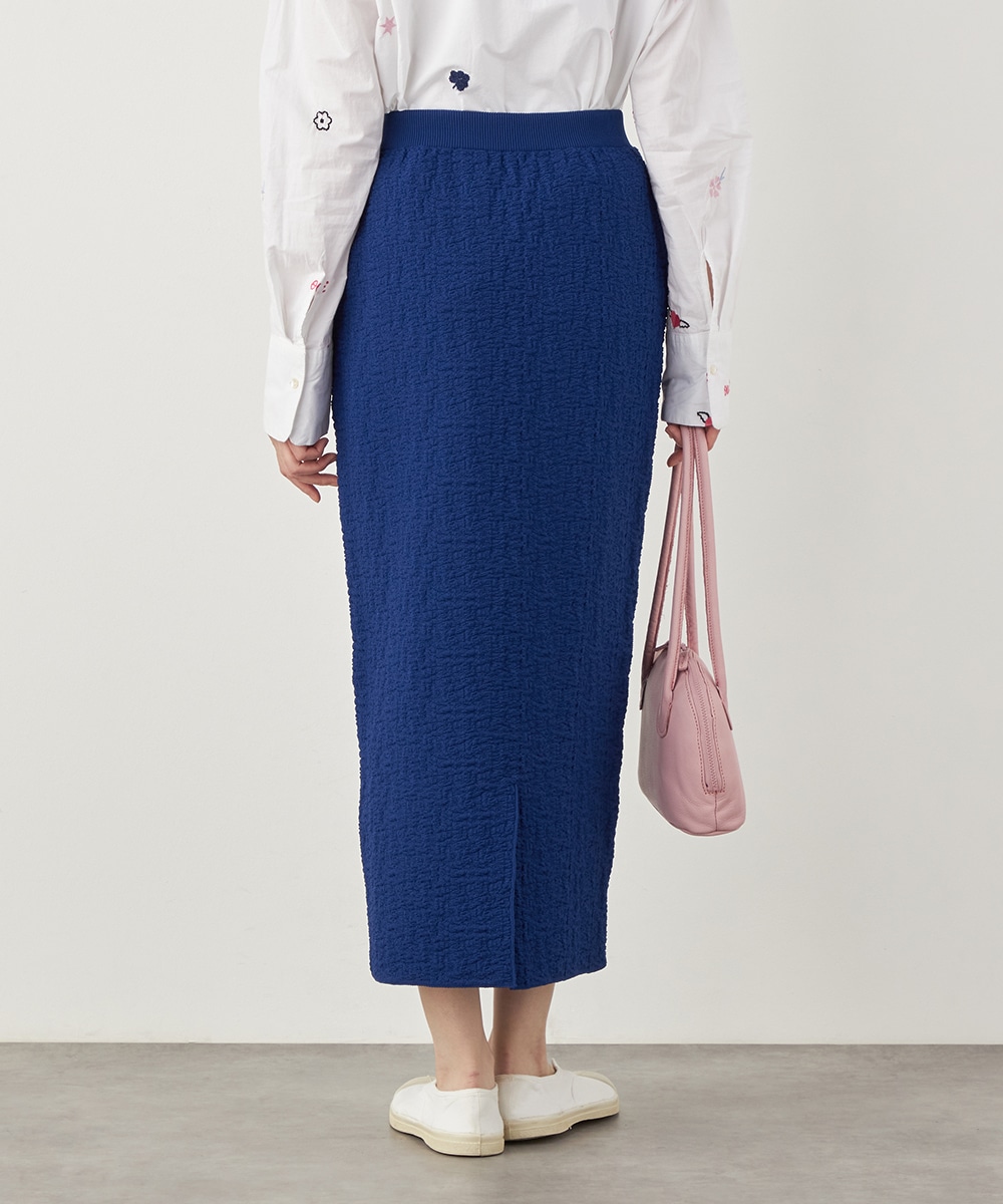タイトシルエットやロング丈が大人っぽい印象。豊かな表情やソフトな風合いも魅力のニットスカート。
