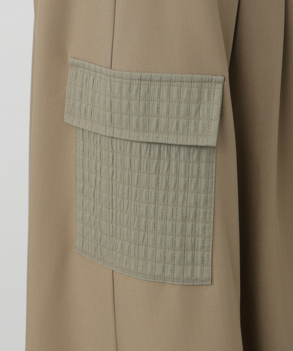 - 本体/ポリエステル75%, レーヨン20%, ポリウレタン5%, 別布/ポリエステル100%, プリーツ部分/ポリエステル100%, 裏地/ポリエステル100%