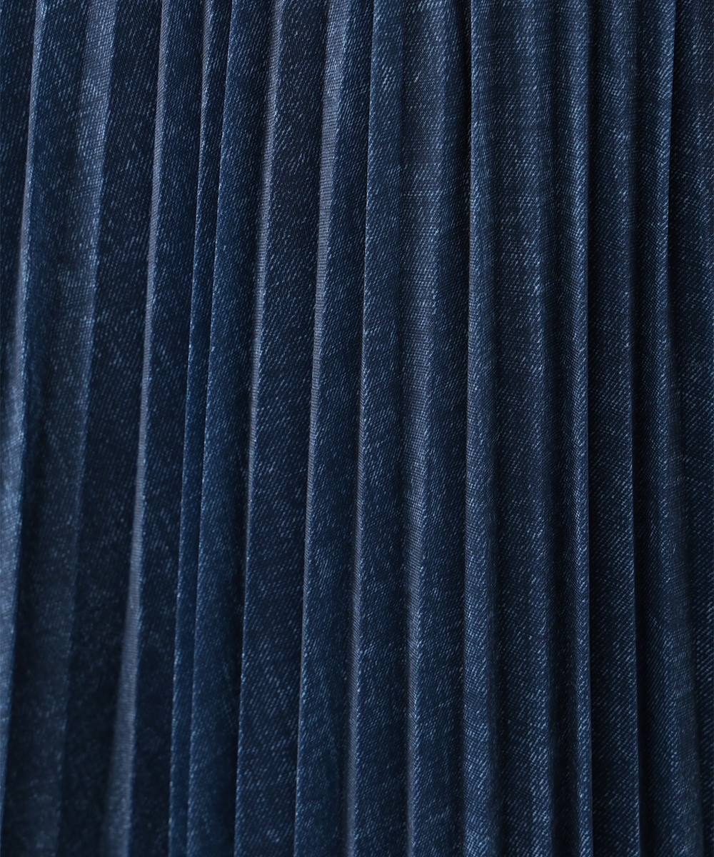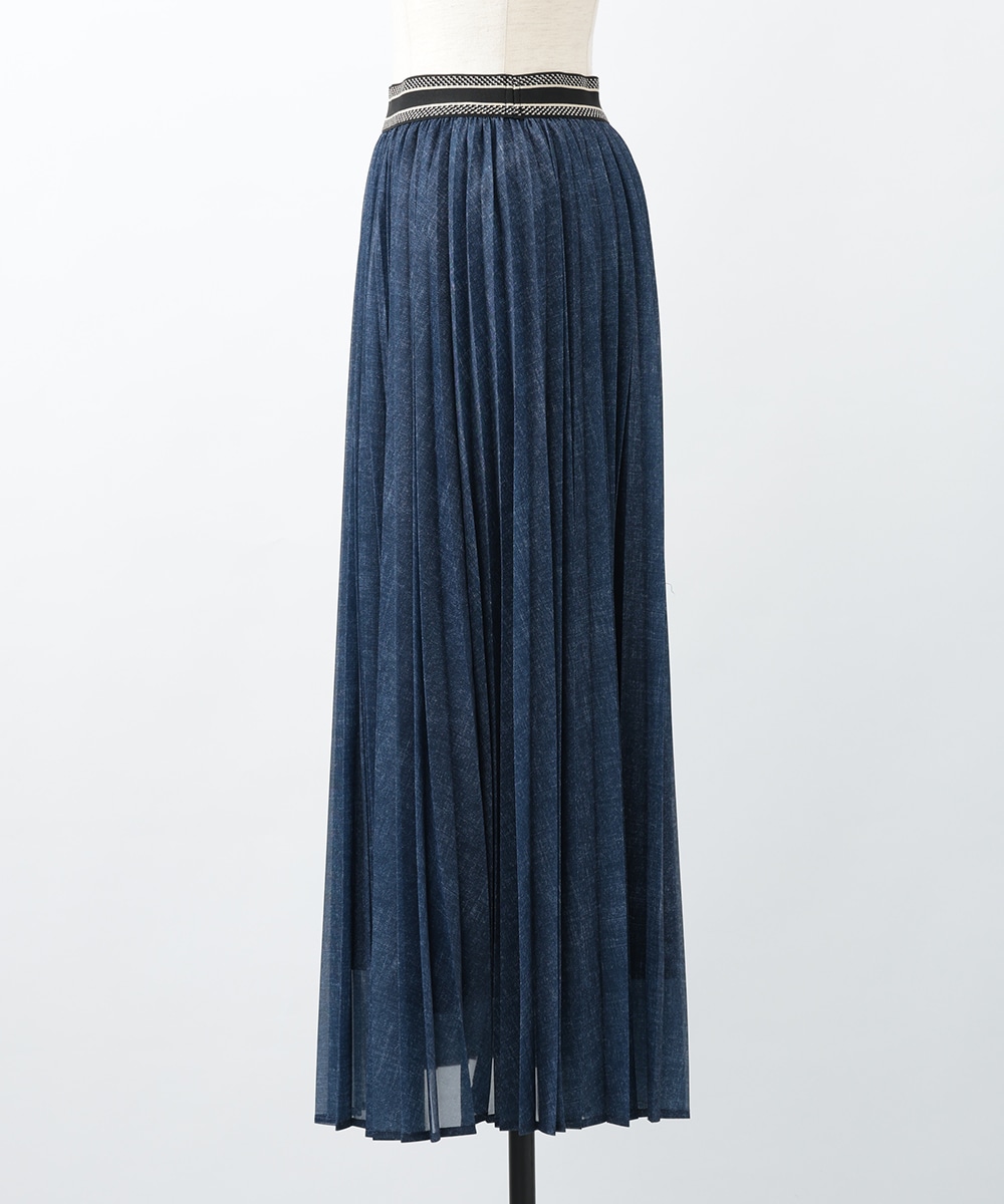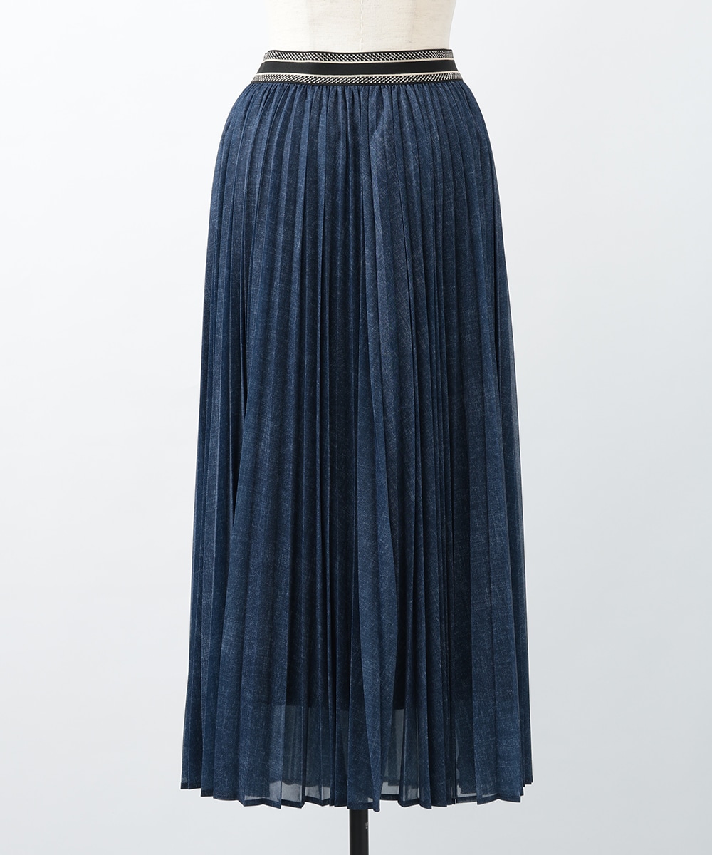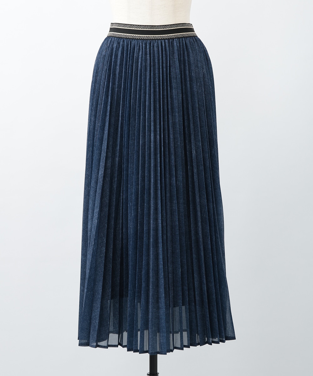 軽やかな透け感を楽しめるシアーデニム生地を使用したスカート。プリーツ加工を施して上品に仕上げたカジュアルになりすぎないデザイン。ウエストの配色ラインがアクセントになるため、トップスをタックインしたスタイリングもおすすめ。暖かい季節のお出かけスタイルに大活躍するアイテムです。