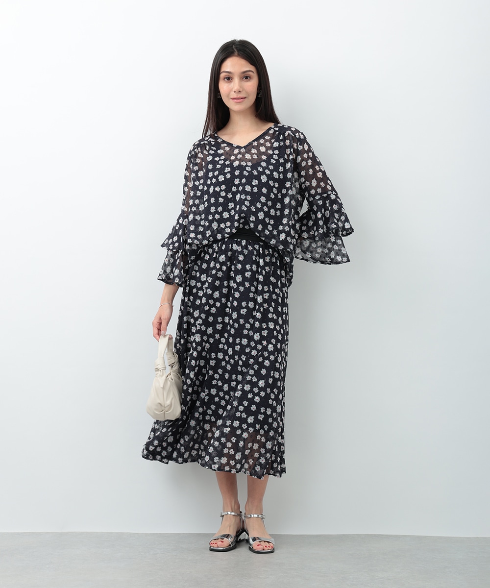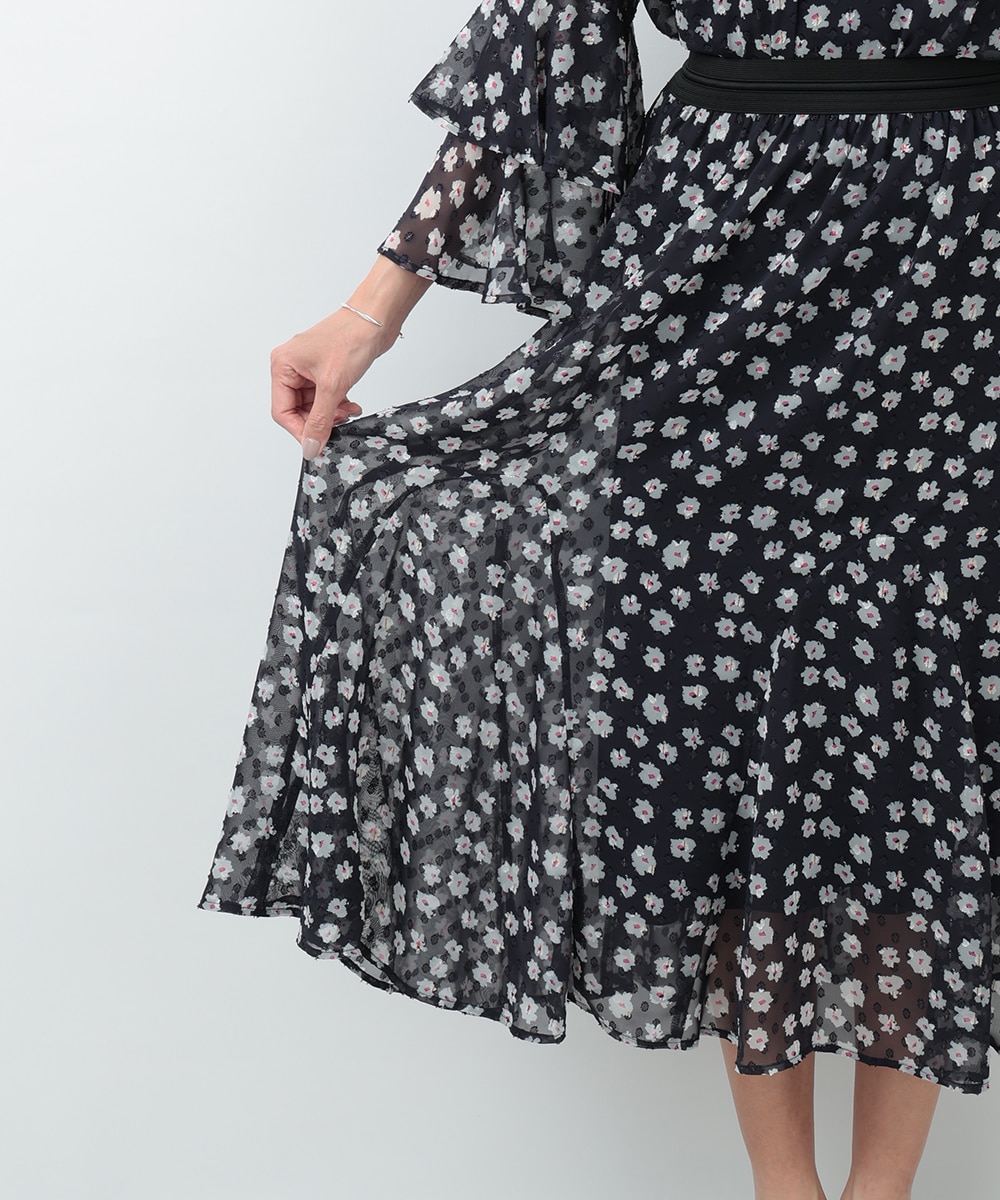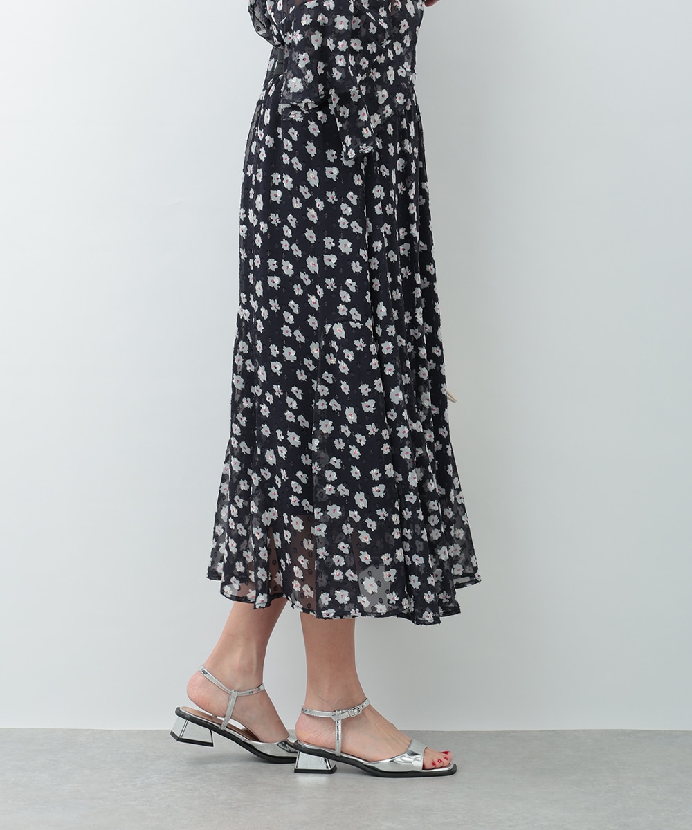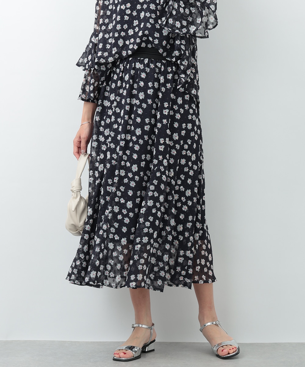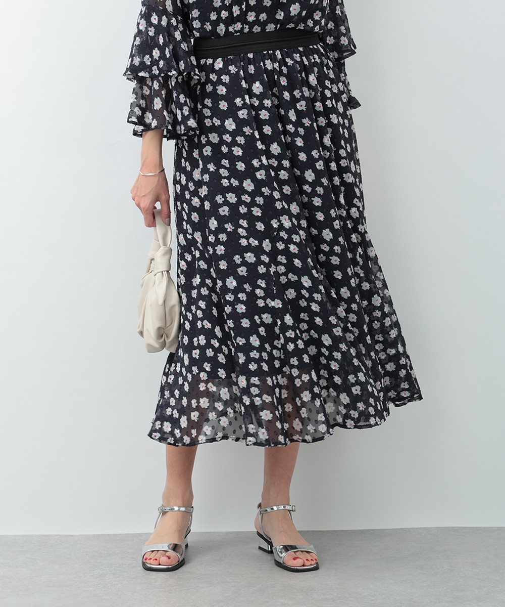 さりげないラメ感をプラスした小花柄が上品に華やぐマーメイドスカート。動くたびに軽やかに揺れるシルエットが女性らしさを引き立て、スタイルアップも叶えます。ウエストは程よくフィットし、快適な穿き心地に仕上げた一着です。ブラウスで上品に、ニットでやわらかくまとめた着こなしもおすすめです。