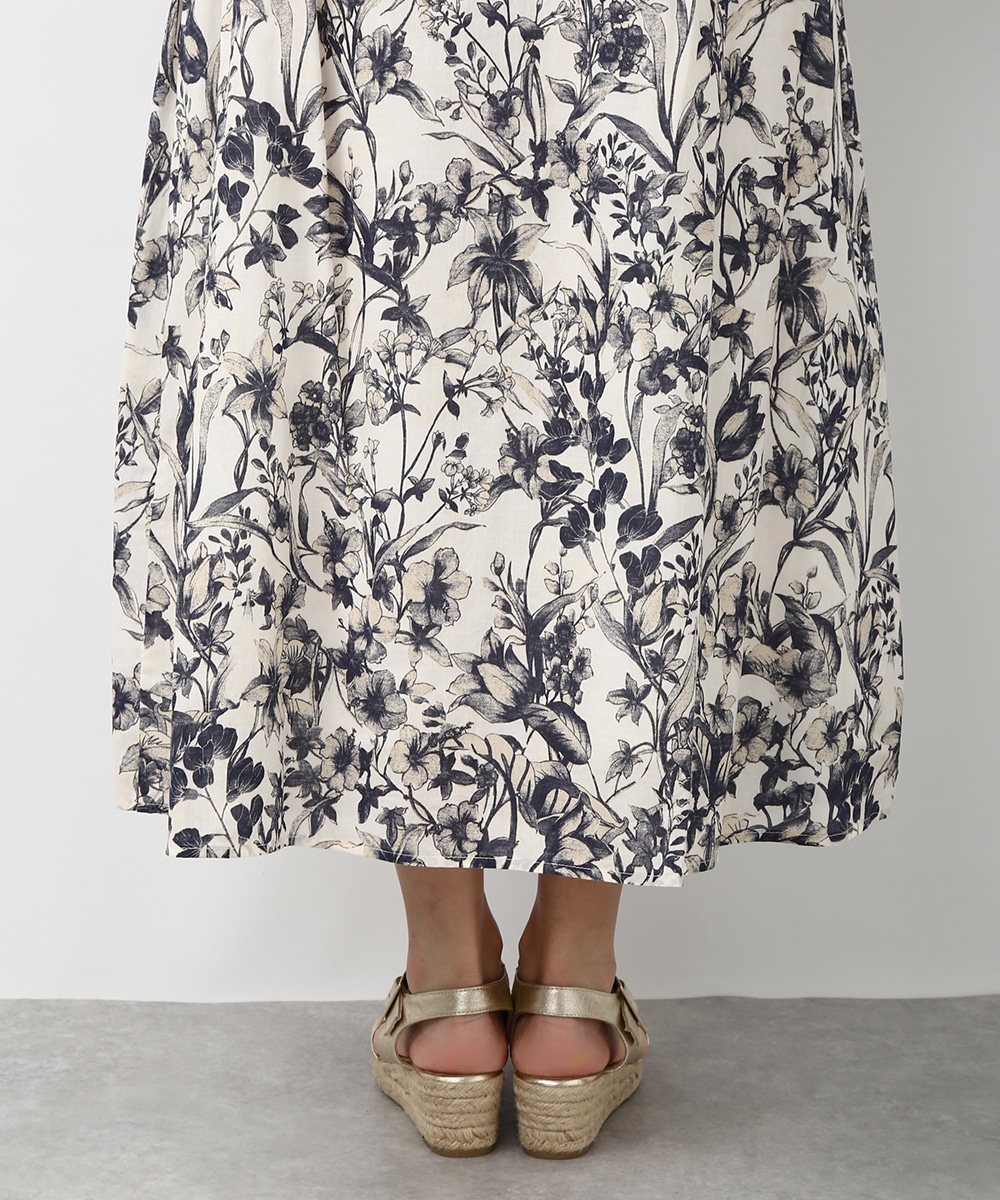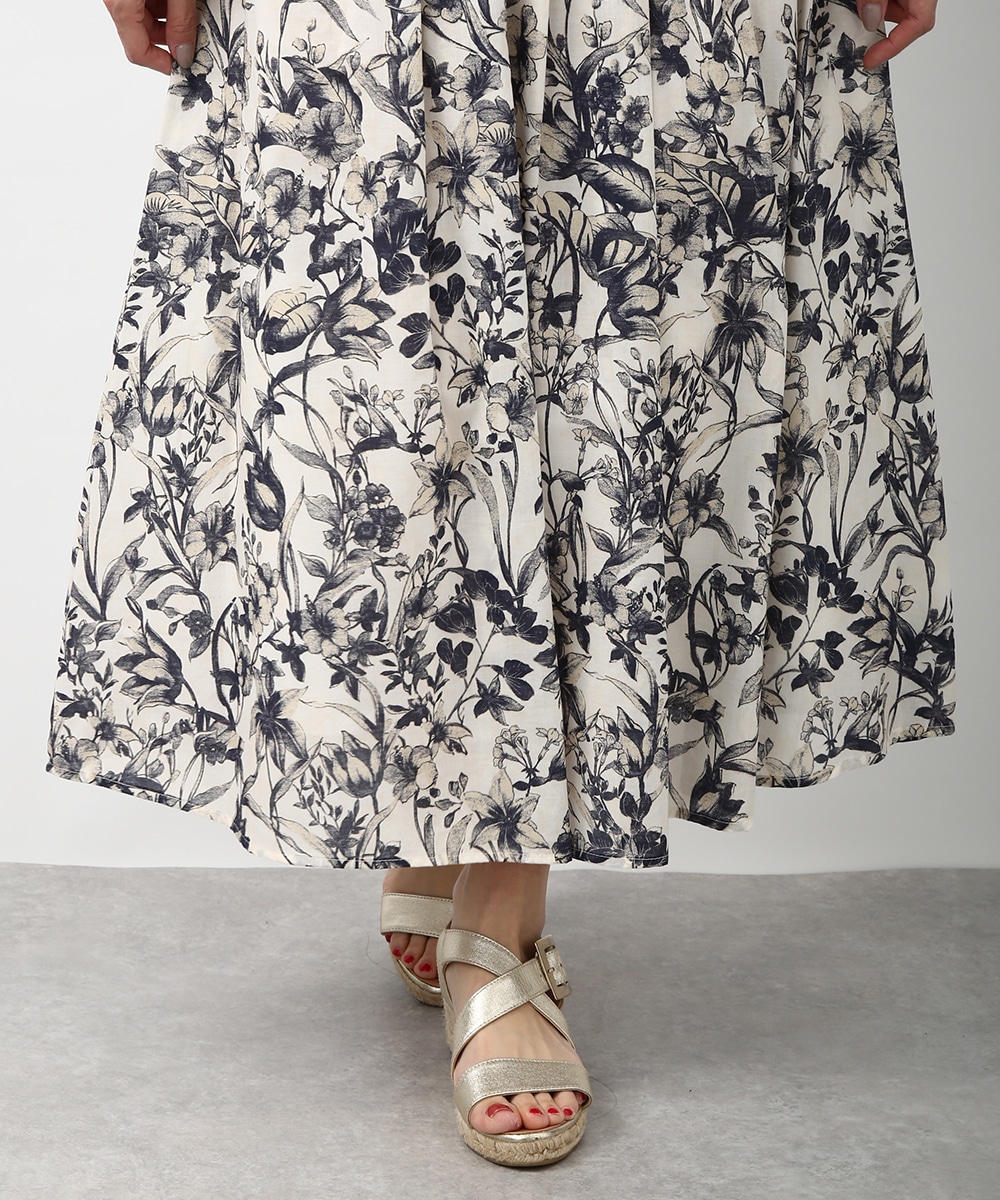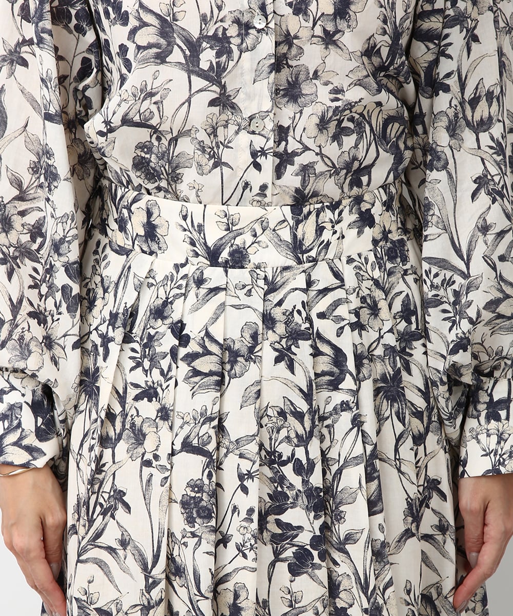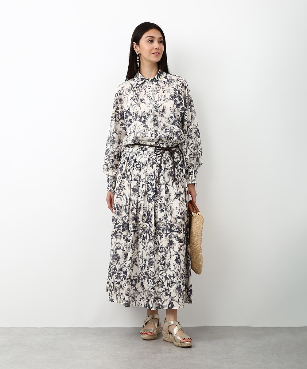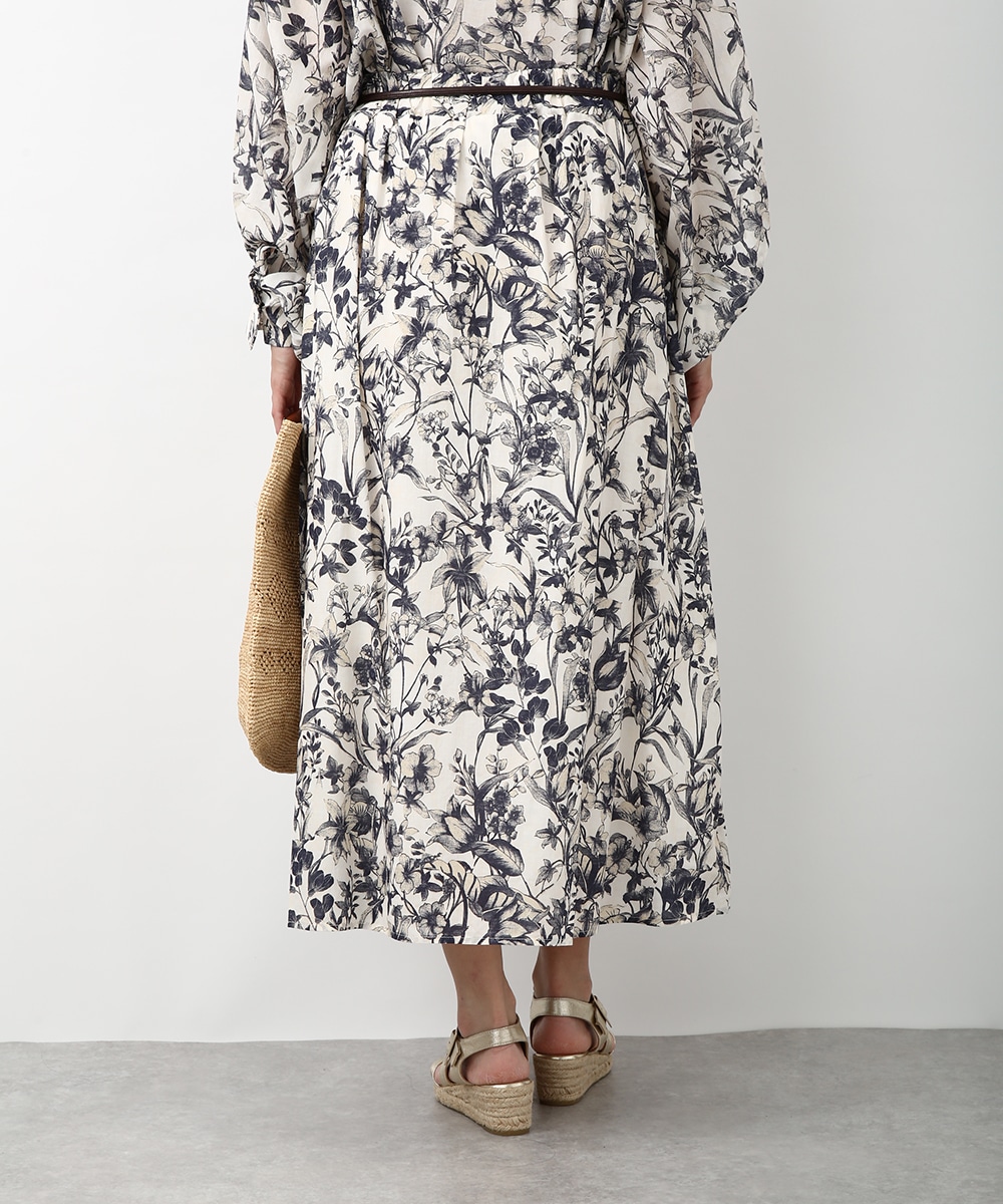 細やかなボタニカル柄が広がるスカート。揺れ感のあるラインで軽やかさがあり、スタイリングに奥行きをプラスしてくれる一枚です。同素材のブラウスと合わせて統一感のある着こなしにし、足元はストラップサンダルで抜けをつくるとバランスよくまとまります。かごバッグを合わせて季節感のあるスタイルに仕上げるのもおすすめです。