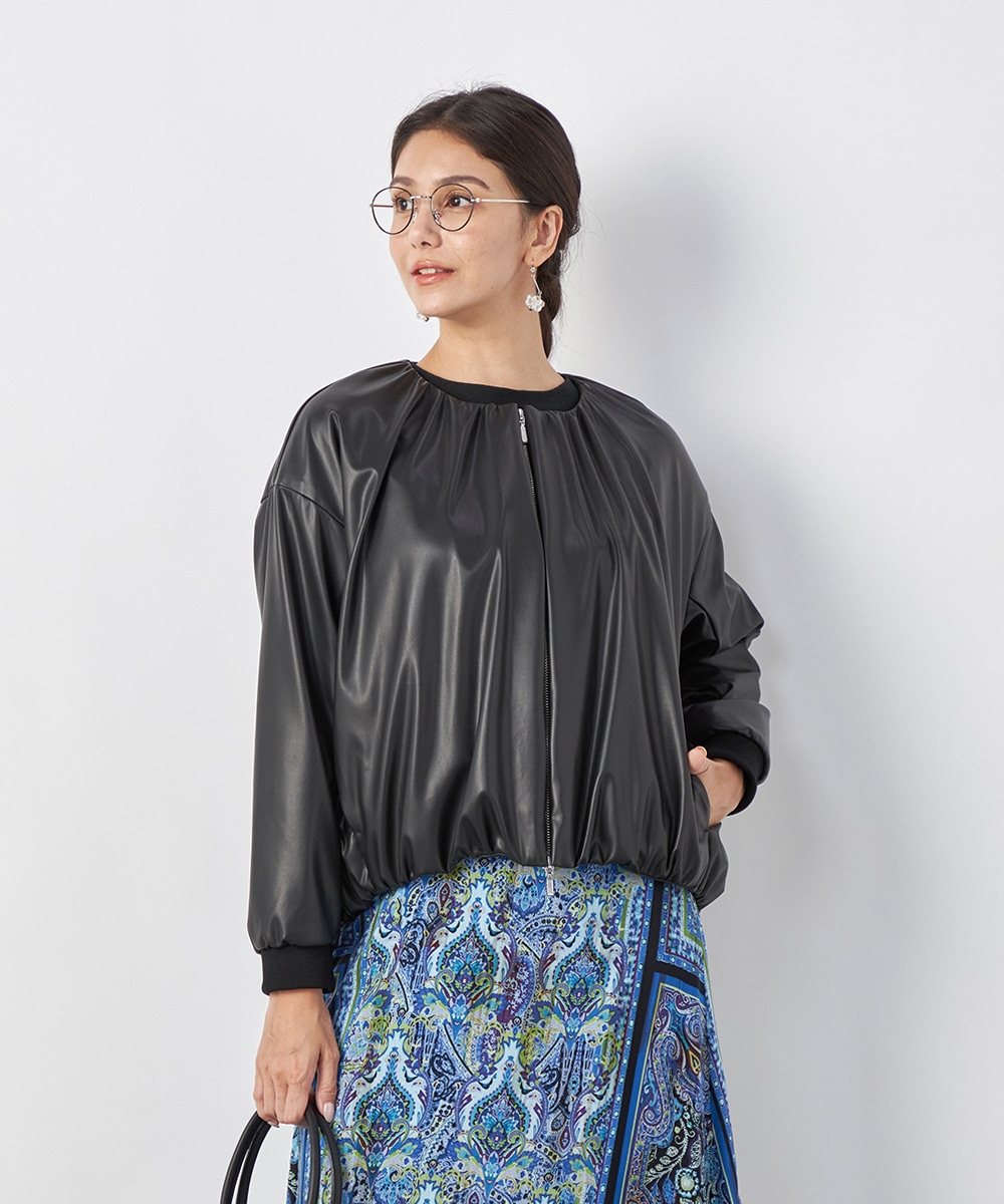 定番のフォルムとは少し違ったテイストで、コーディネートをさりげなくアップデート。非常に薄く柔らかな素材感により、フェミニンなギャザーデザインを可能にしています。ドロップショルダーのゆる感はトレンドにぴったりです。袖口はリブで切り替え、カジュアルに仕上げています。