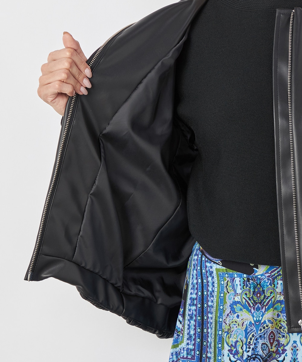- 表地/ポリエステル55%, ポリウレタン45%, 別布リブ/ポリエステル44%, アクリル30%, ナイロン20%, 毛6%, 裏地/ポリエステル100%
