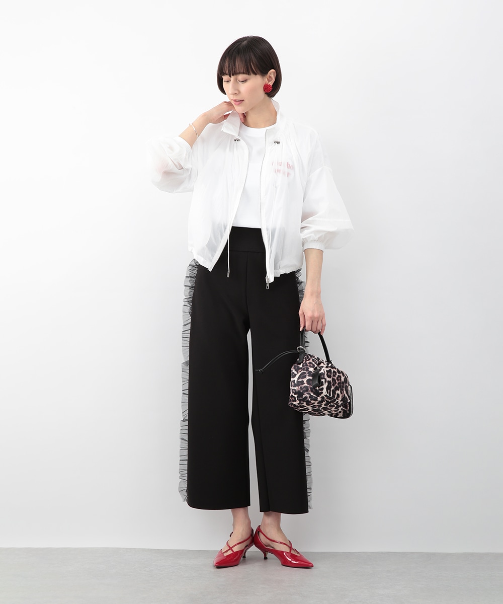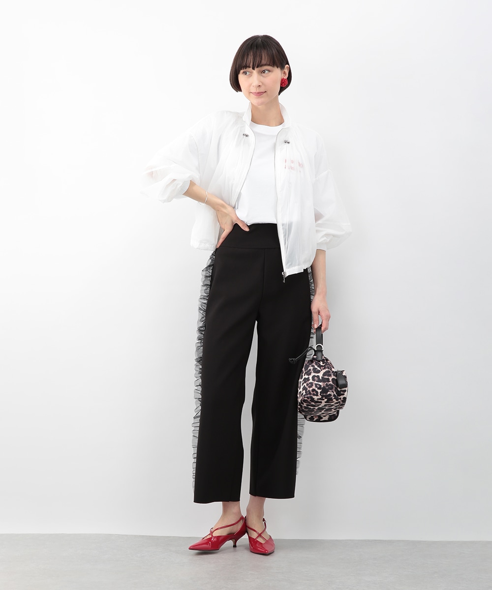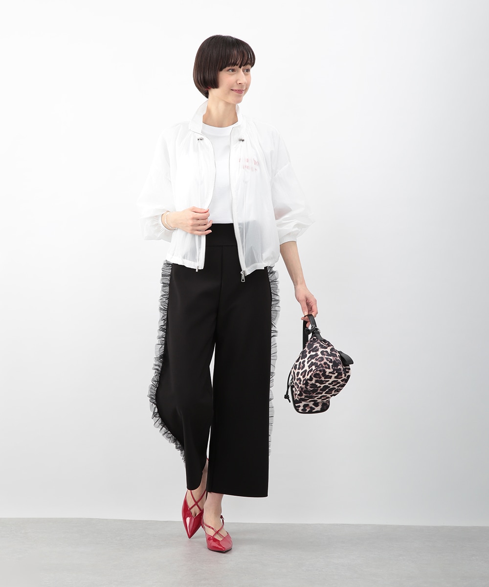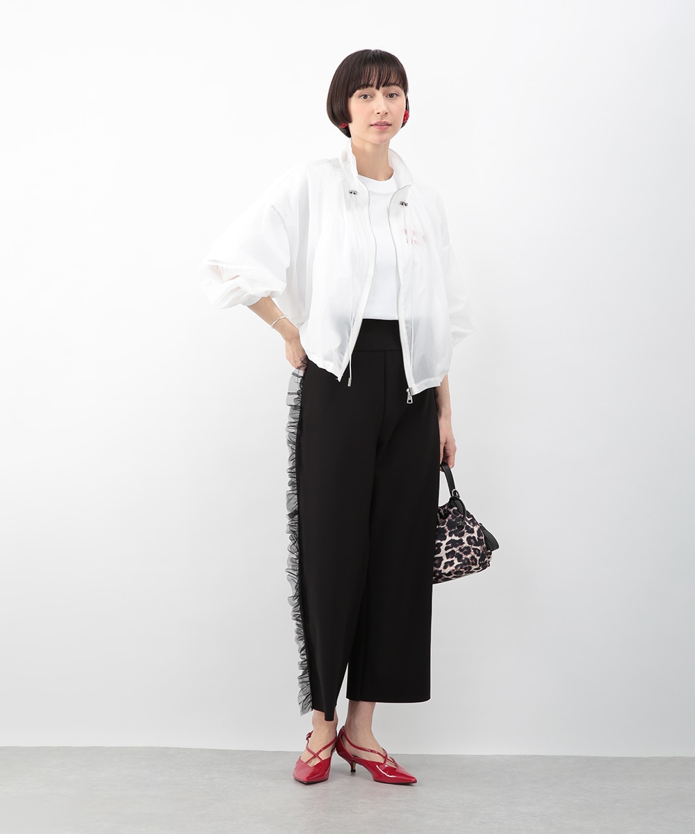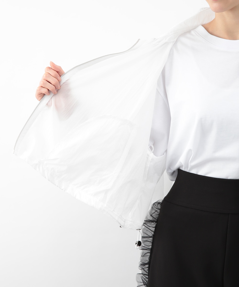 たっぷりと施したギャザーが立体的なシルエットを描くライトブルゾン。ふんわりとしたフォルムが女性らしい印象を添え、軽やかな素材感でシャツのように気負わず羽織れます。程よい透け感がコーデに抜け感をプラスし、パンツにもスカートにも合わせやすいデザイン。季節の変わり目に重宝する一枚です。