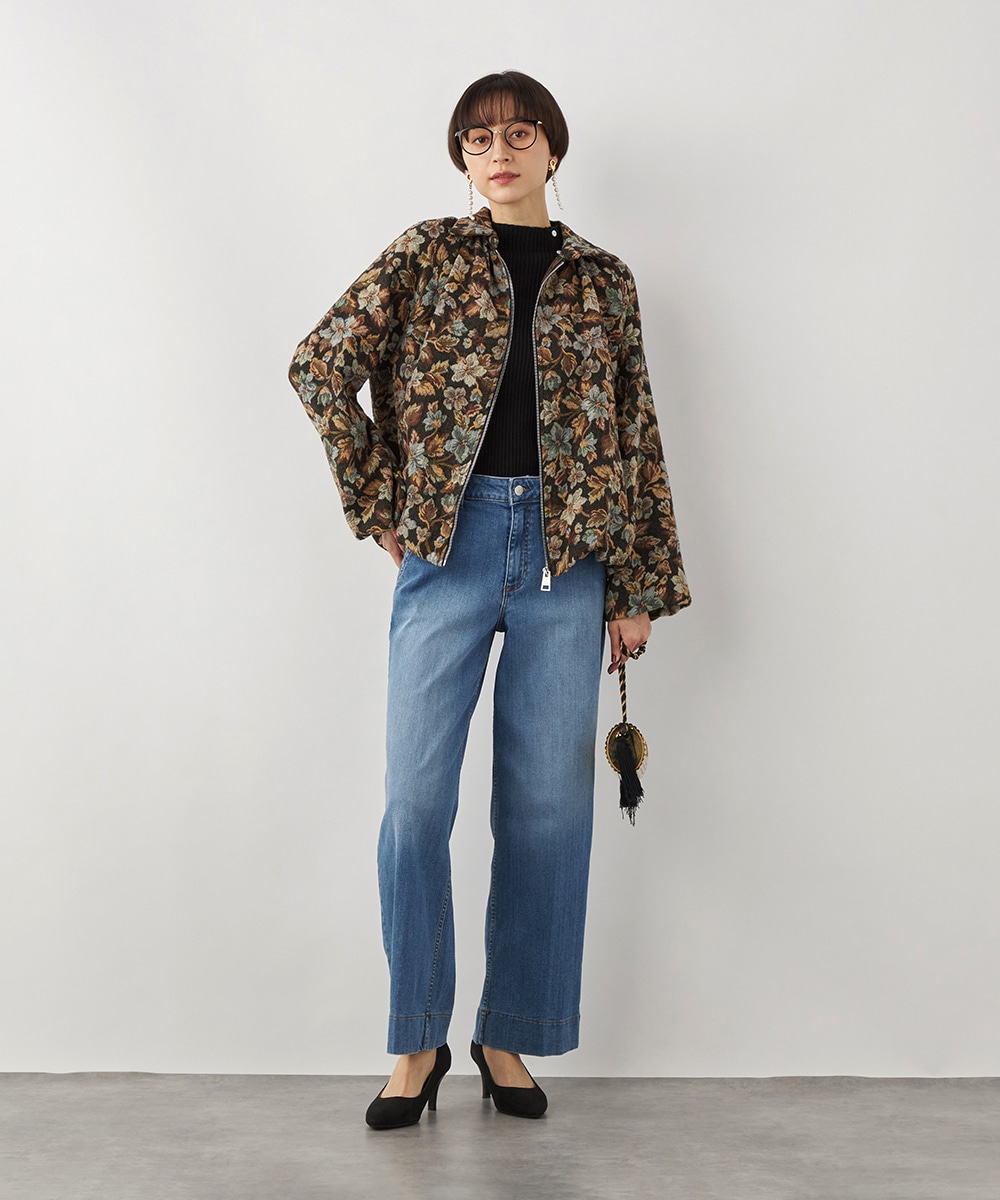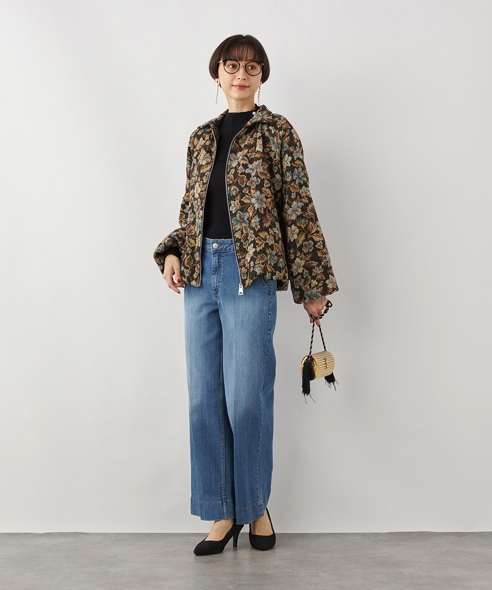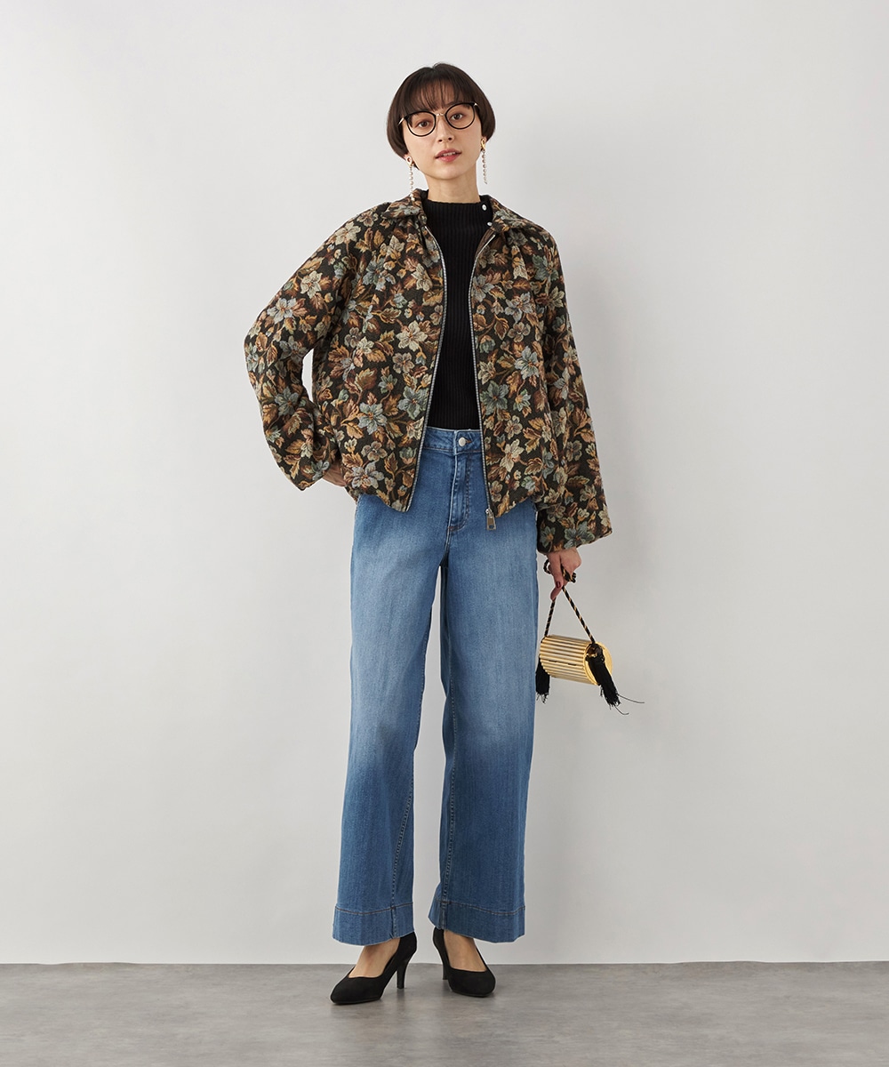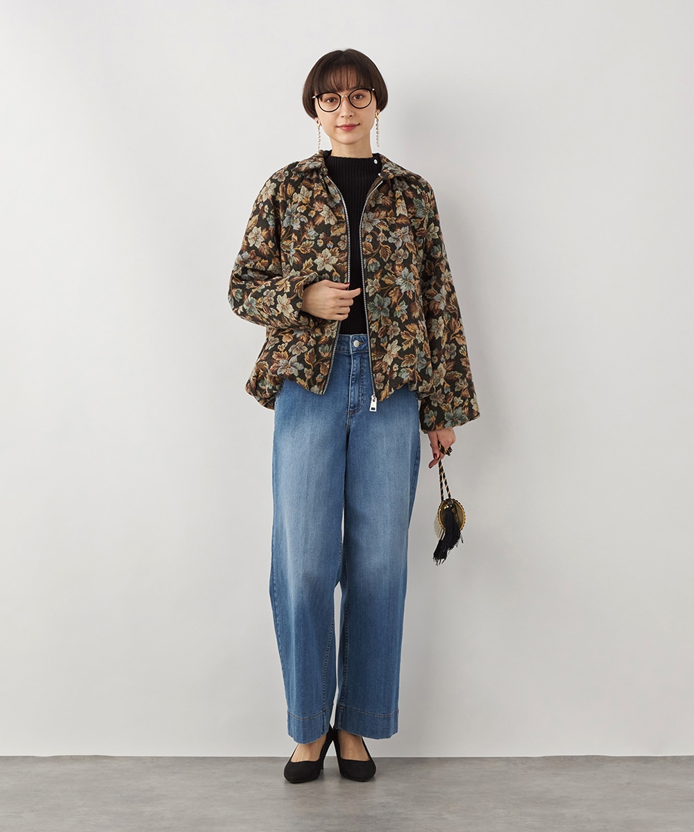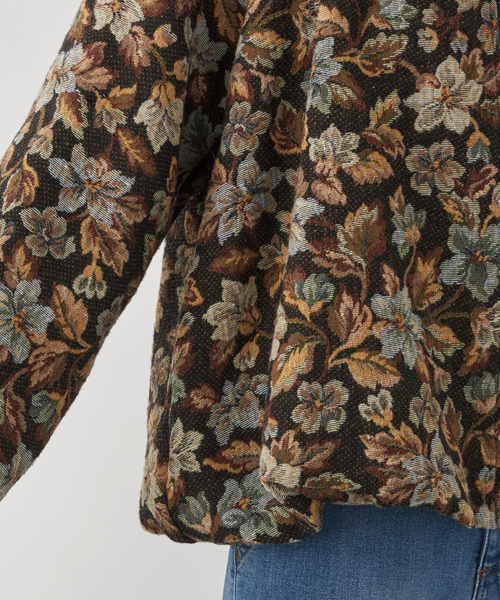 フェミニンな雰囲気あふれるフラワー柄を、繊細なタッチで表現しています。華やかな柄とシックなカラーリングのバランスが良いのも特徴です。ラグラン切り替えのゆったりとしたシルエットはデイリーカジュアルにも重宝。フロントはスポーティなジップ開きを採用しています。