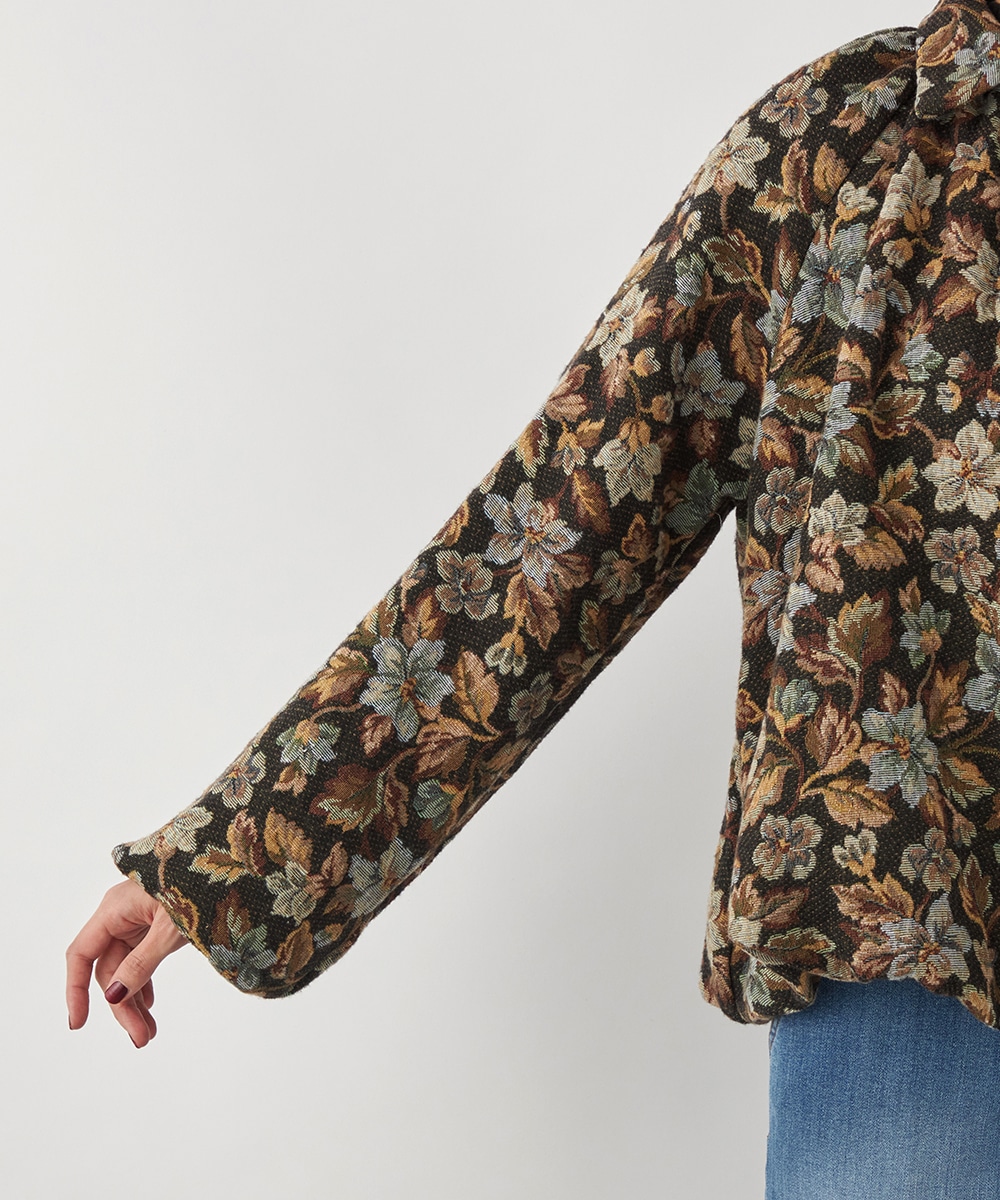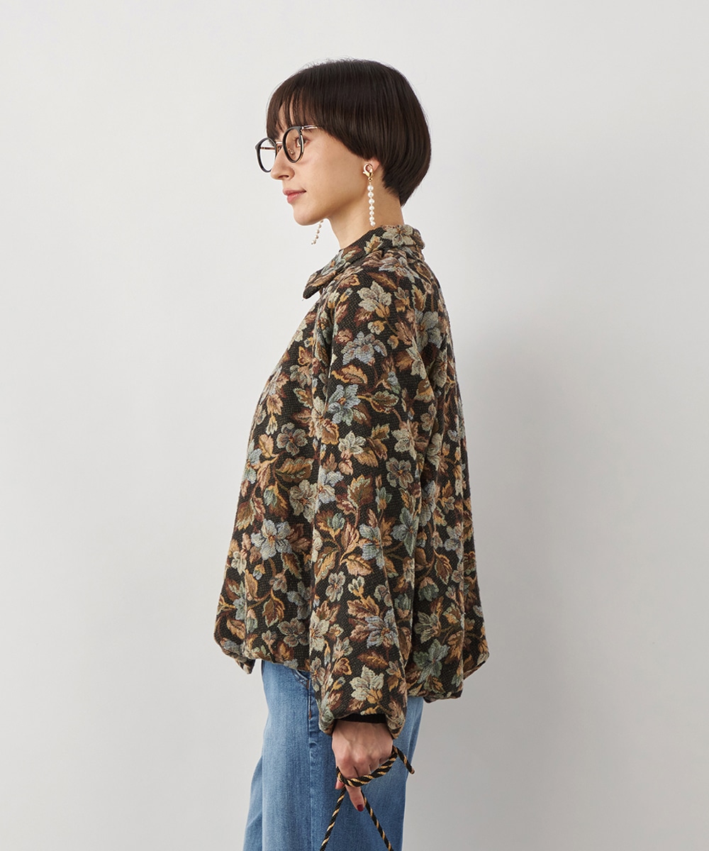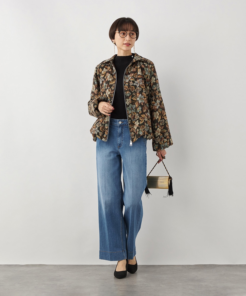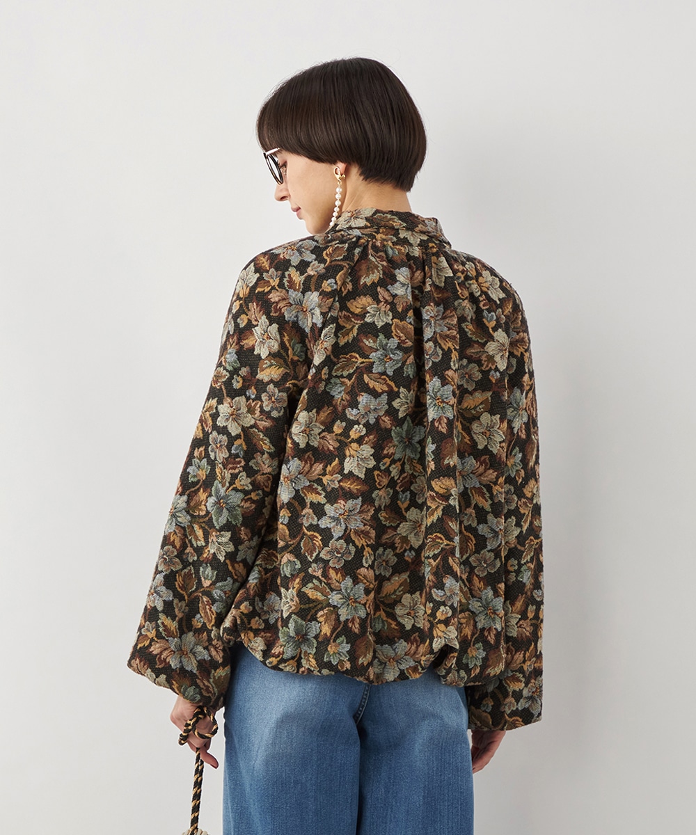 フェミニンな雰囲気あふれるフラワー柄を、繊細なタッチで表現しています。華やかな柄とシックなカラーリングのバランスが良いのも特徴です。ラグラン切り替えのゆったりとしたシルエットはデイリーカジュアルにも重宝。フロントはスポーティなジップ開きを採用しています。