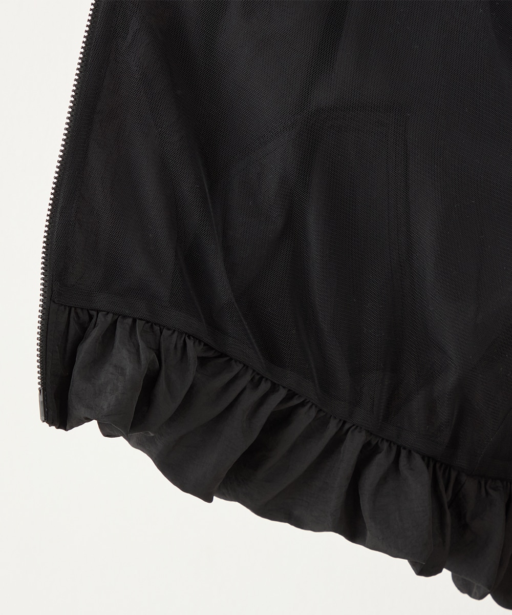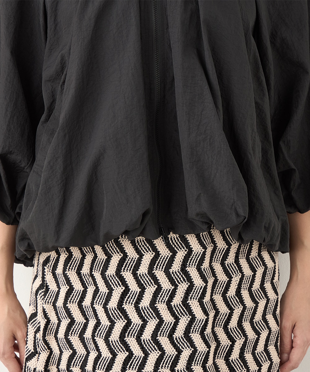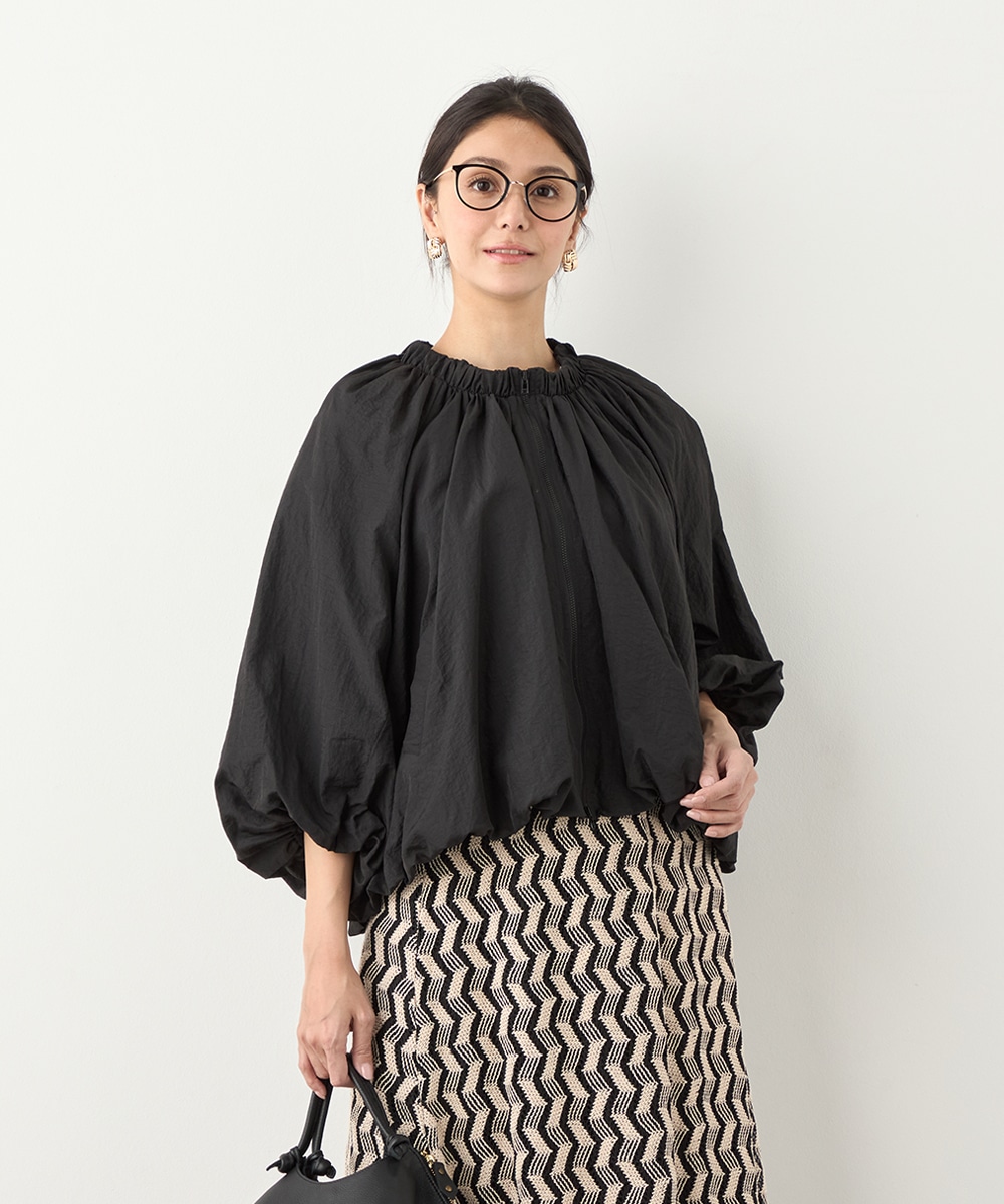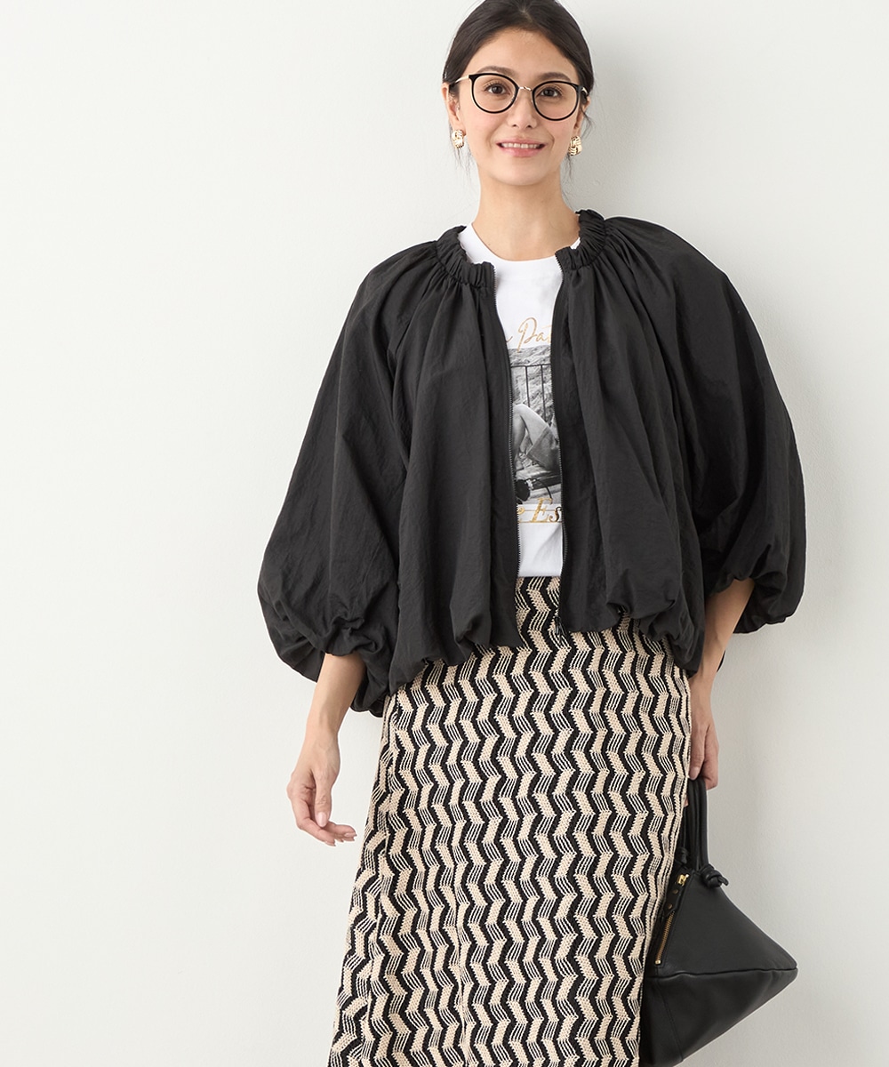 ボリュームのあるシルエットが目を引き、ガーリーで愛らしいコーディネートを演出します。ベーシックな無地のデザインならではの取り入れやすさもポイントです。印象が重くならずに着こなせる七分袖を採用しています。ノーカラーでフェイスラインはすっきり。フロントはカジュアルなジップ開きです。