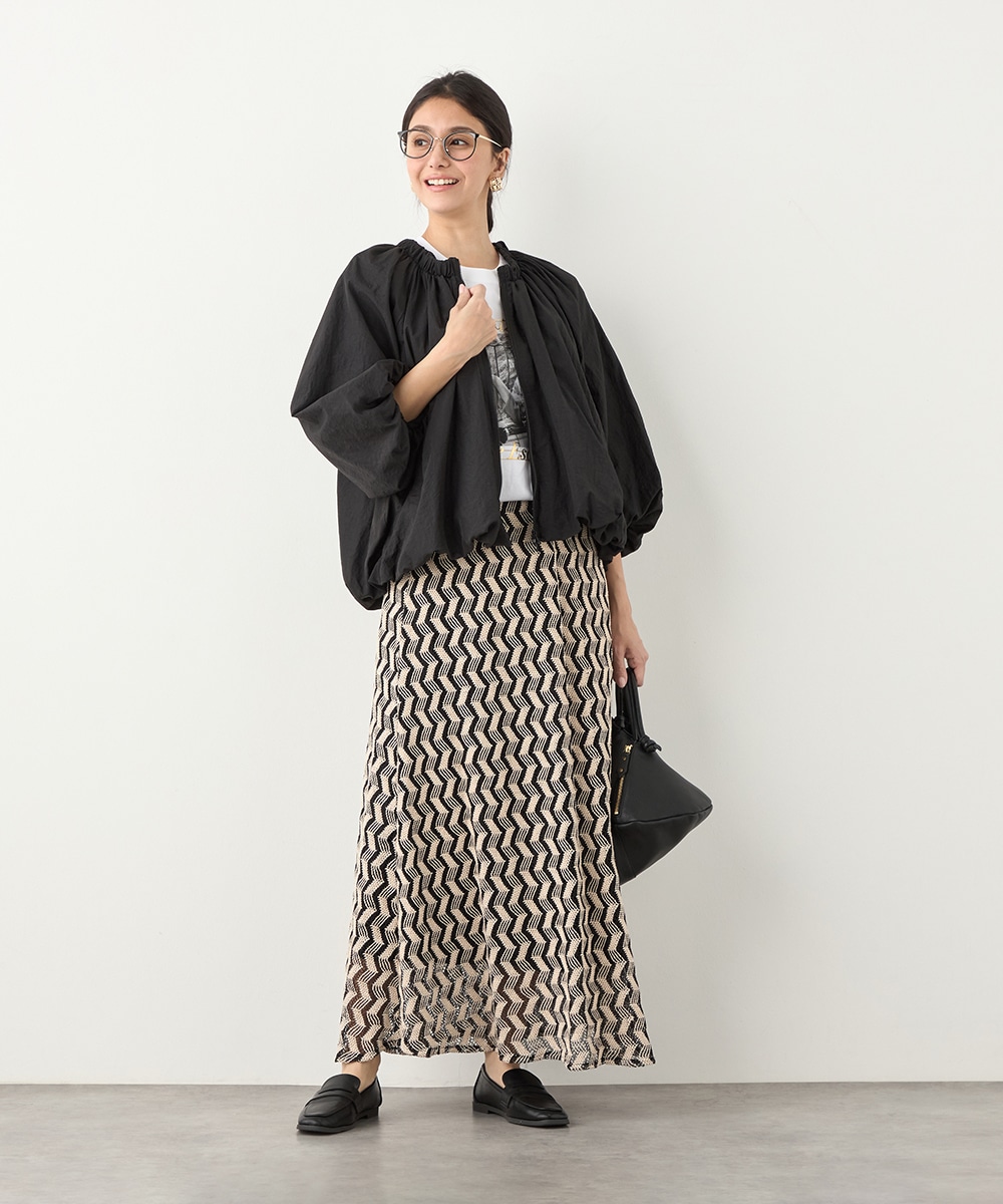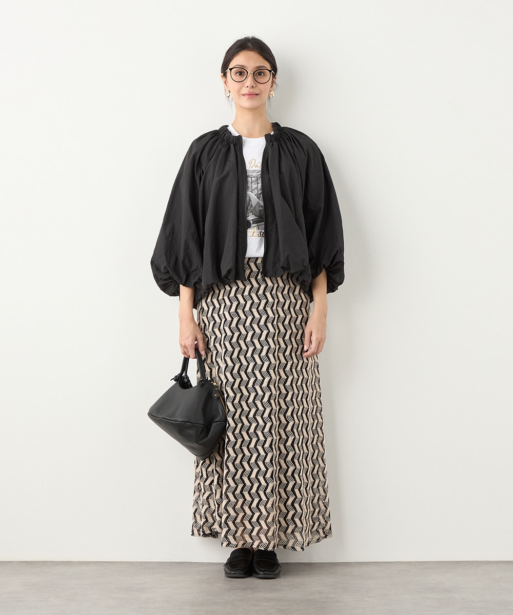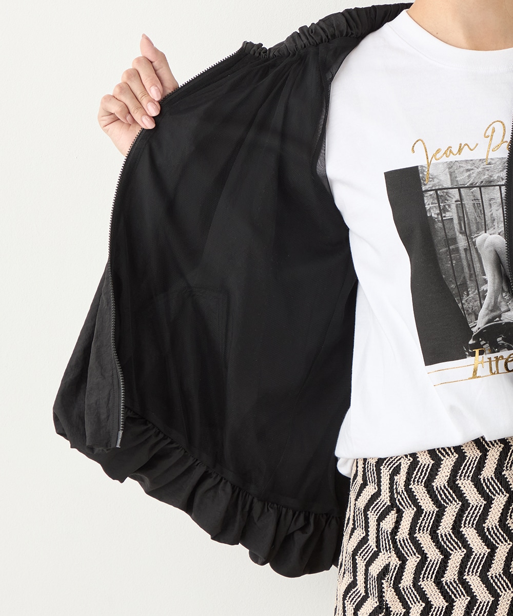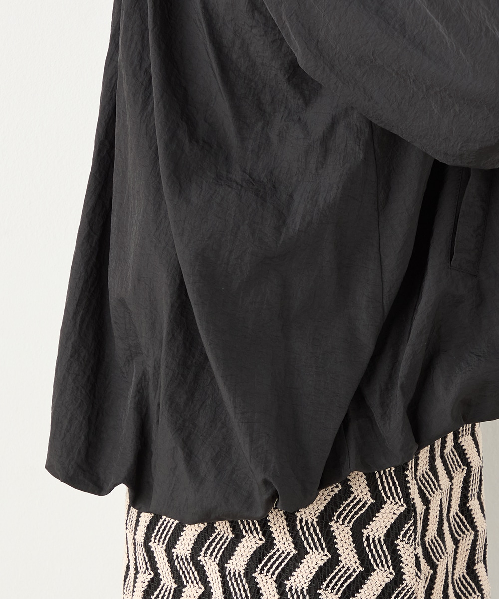 ボリュームのあるシルエットが目を引き、ガーリーで愛らしいコーディネートを演出します。ベーシックな無地のデザインならではの取り入れやすさもポイントです。印象が重くならずに着こなせる七分袖を採用しています。ノーカラーでフェイスラインはすっきり。フロントはカジュアルなジップ開きです。
