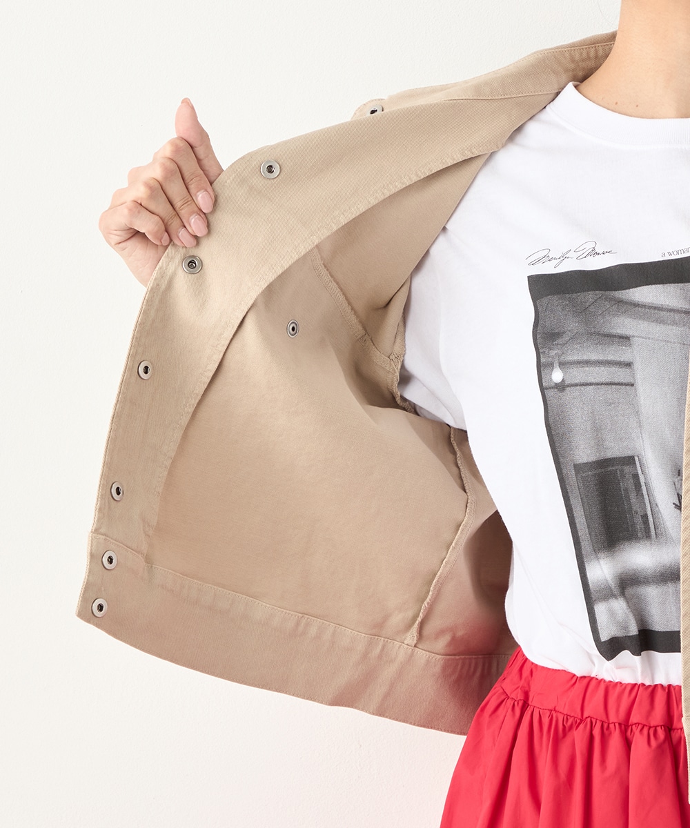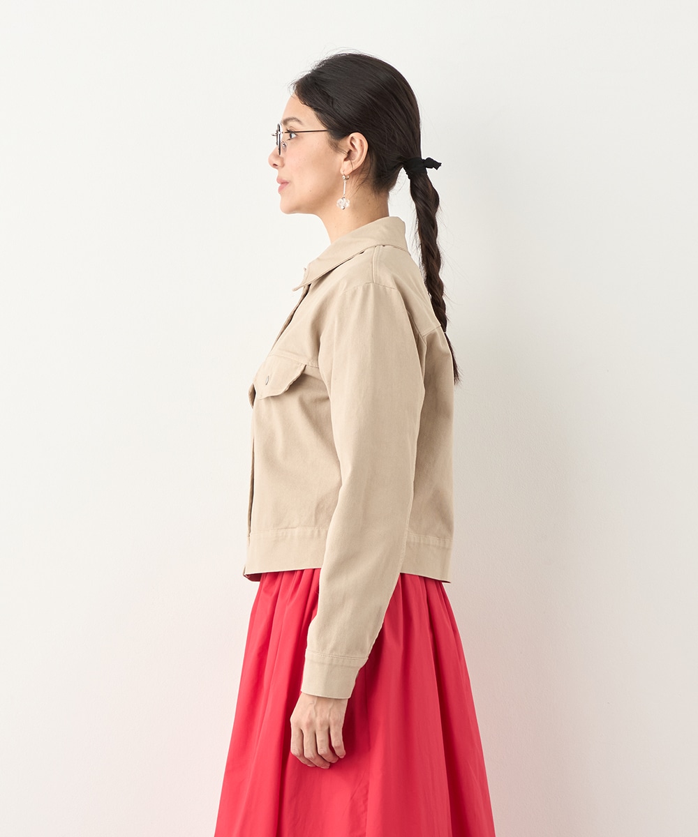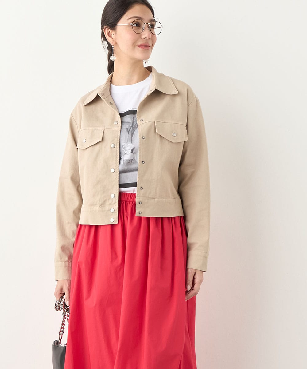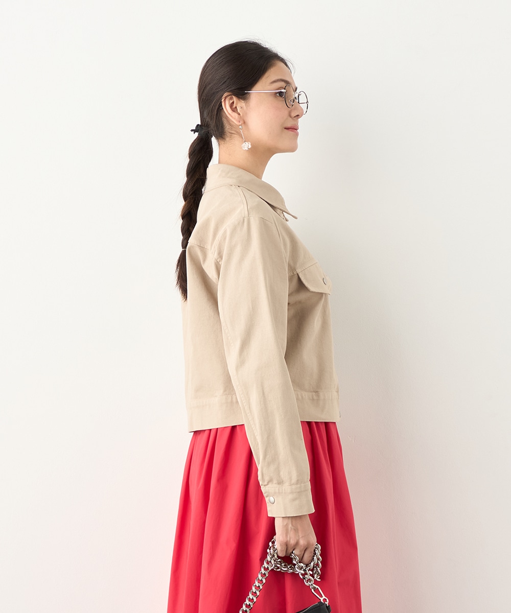 絶妙なトーンのベージュカラーをセレクトしています。カジュアルながらもラフに傾きすぎず、取り入れやすい色味です。短めの着丈でコンパクトな印象にまとまり、すっきりと着こなせるのもポイント。ワンピースやスカートともバランス良く合わせられます。寒さの残る時季にはコートインもおすすめです。