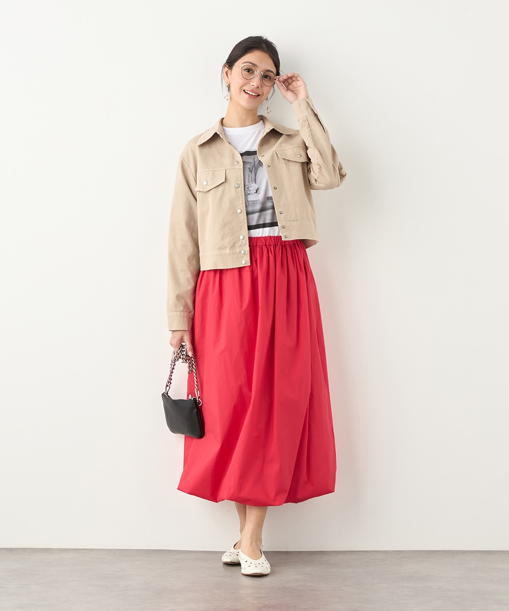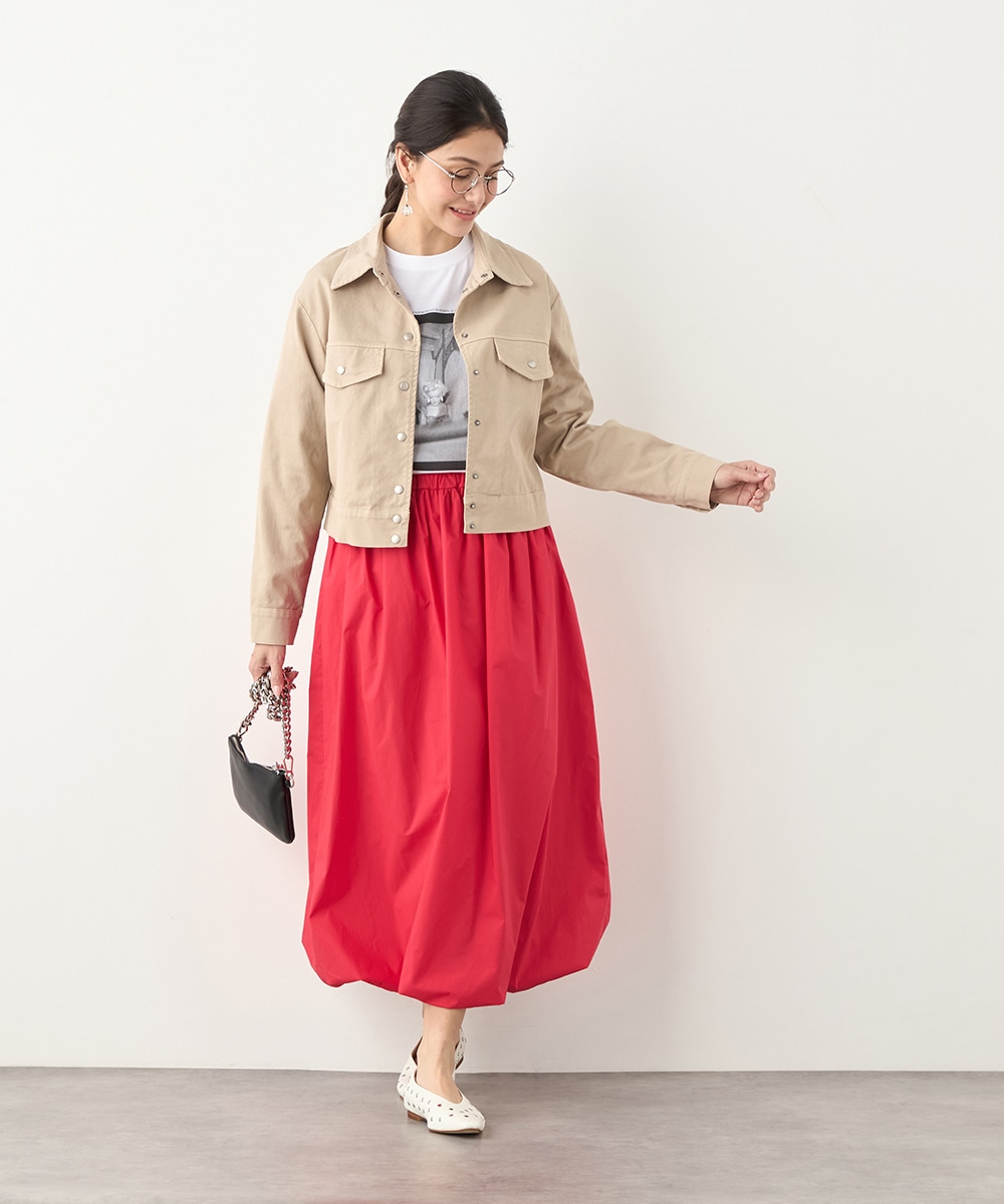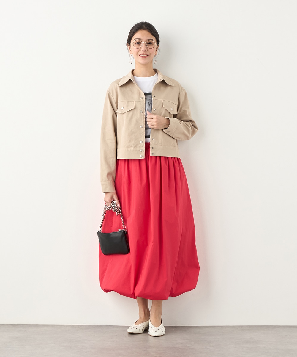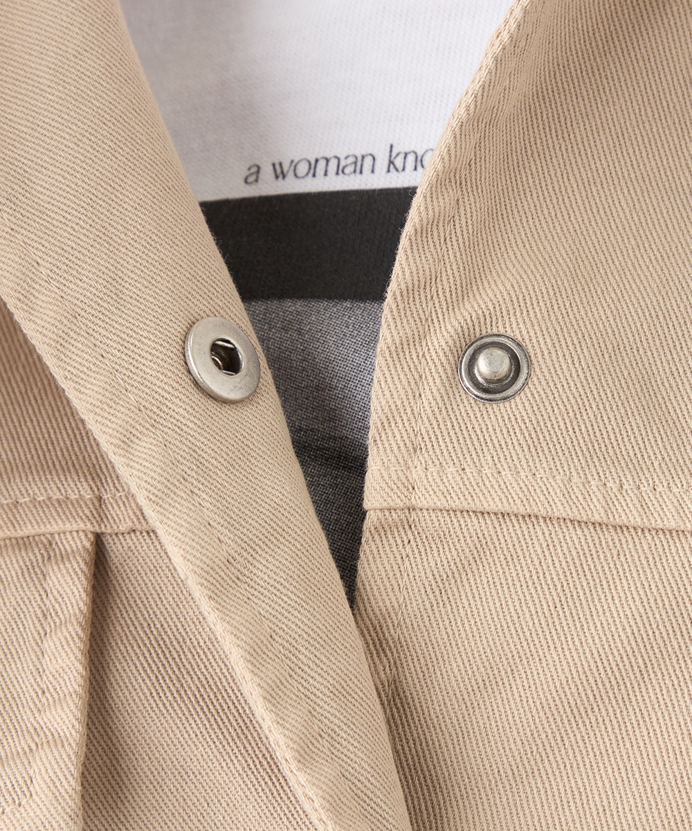 絶妙なトーンのベージュカラーをセレクトしています。カジュアルながらもラフに傾きすぎず、取り入れやすい色味です。短めの着丈でコンパクトな印象にまとまり、すっきりと着こなせるのもポイント。ワンピースやスカートともバランス良く合わせられます。寒さの残る時季にはコートインもおすすめです。