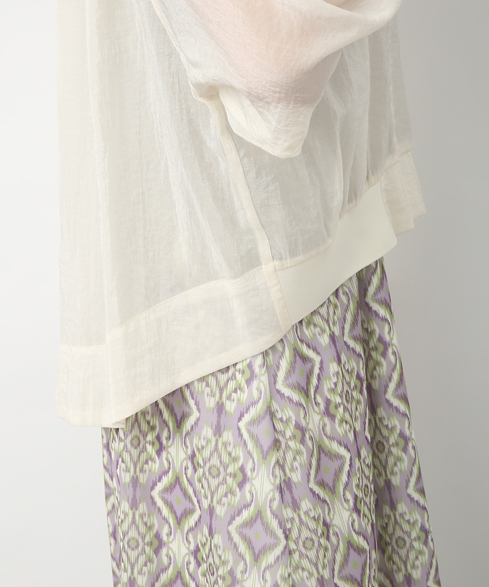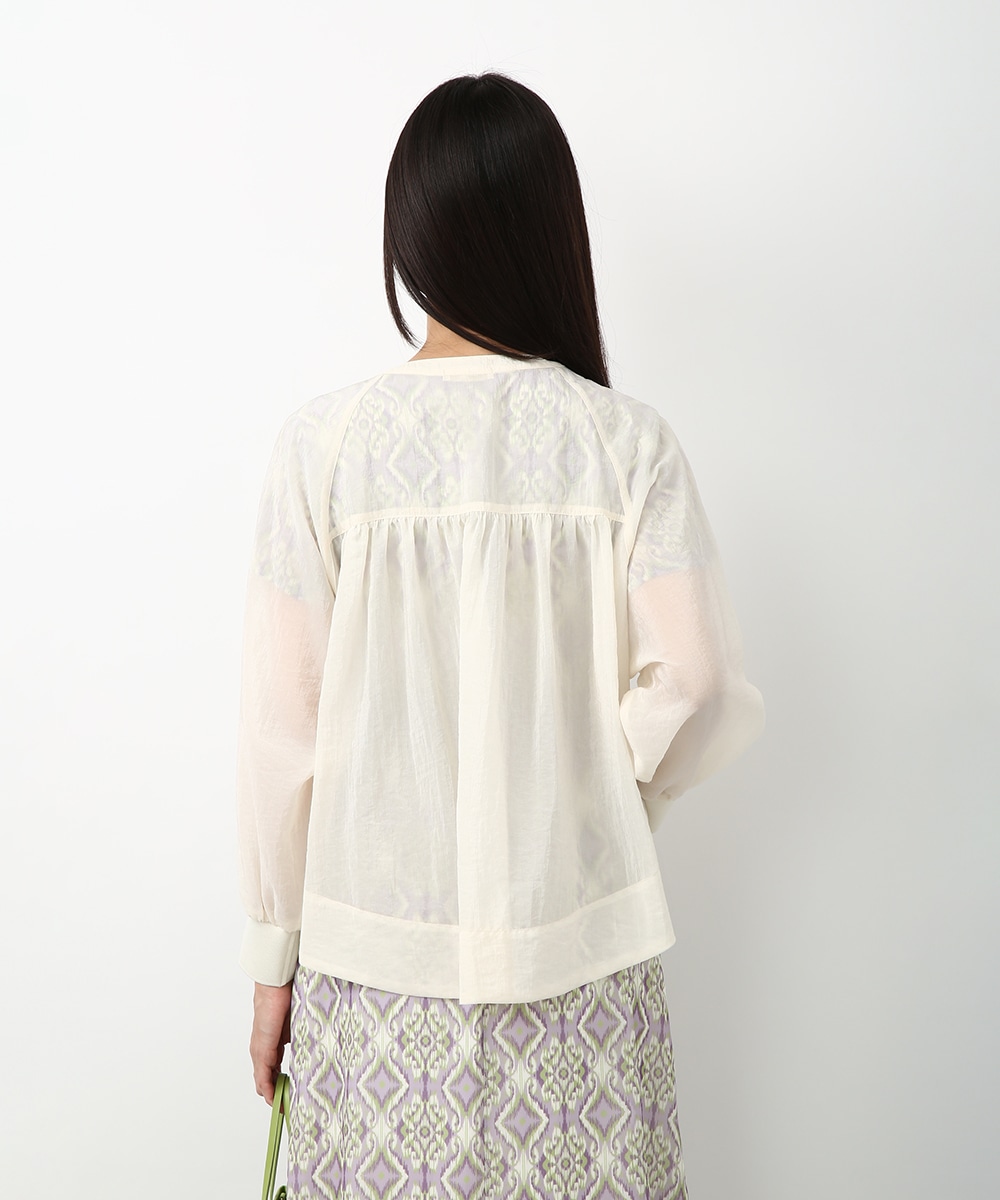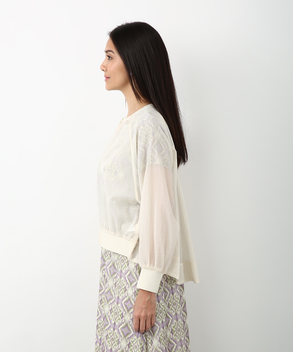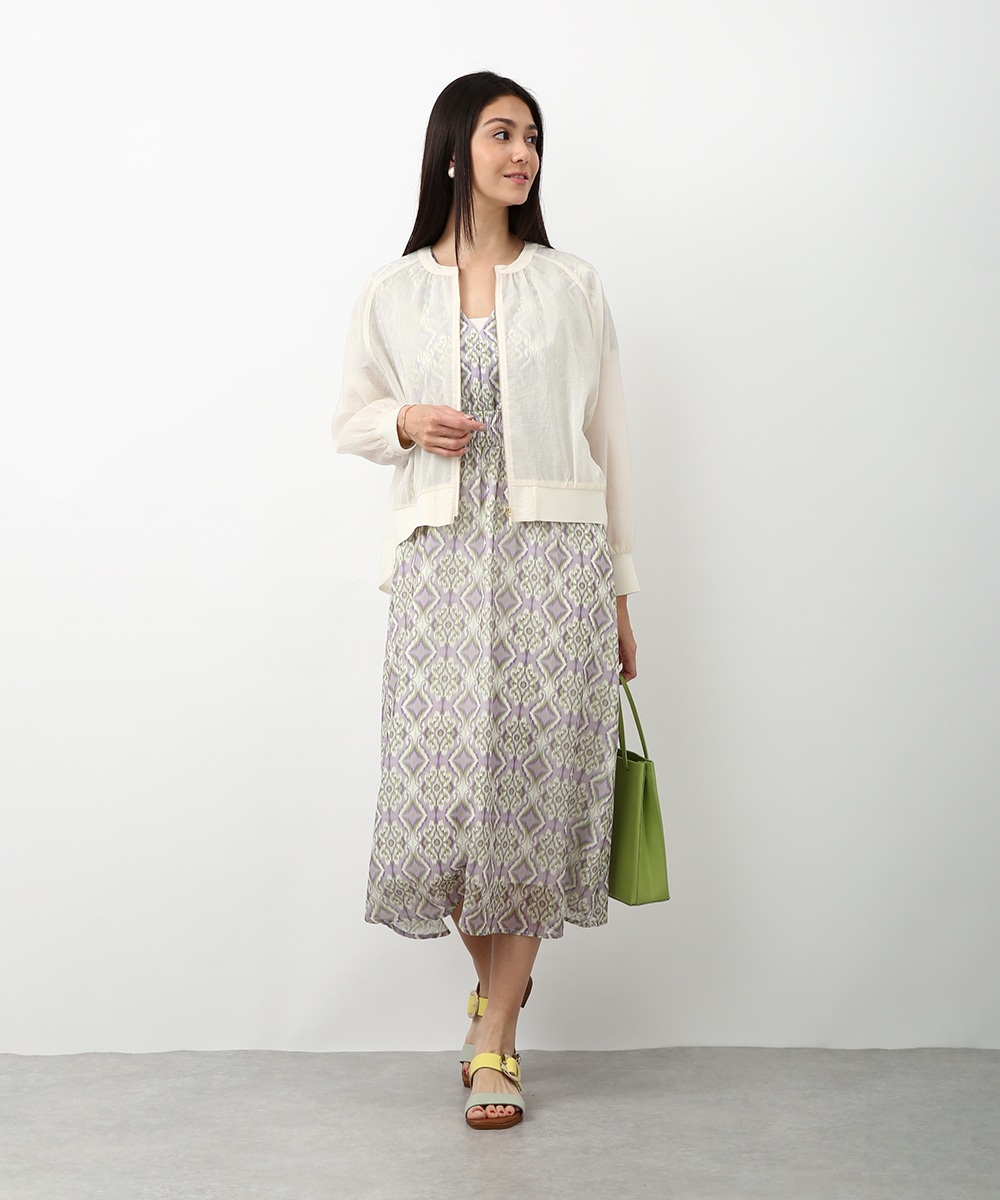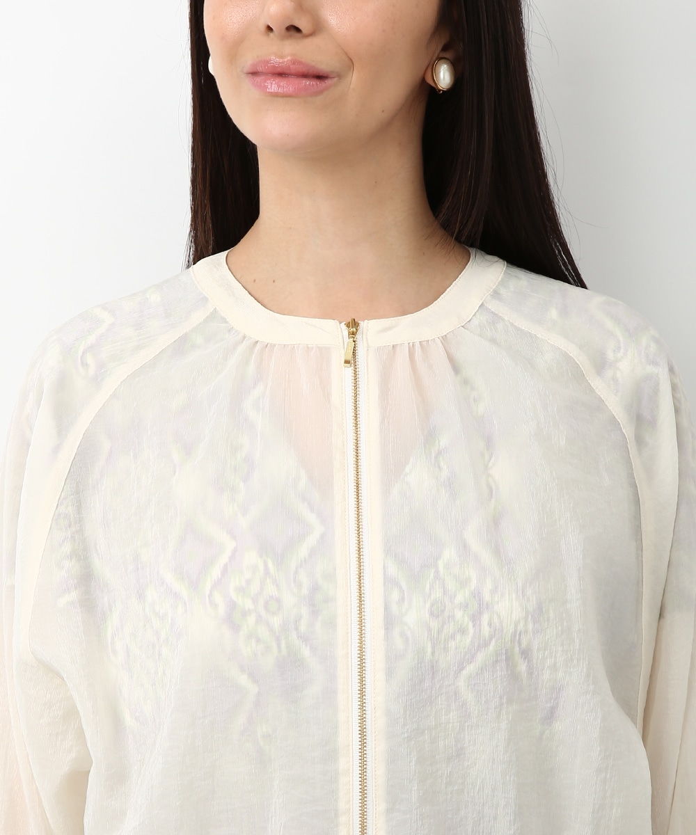 透け感のある軽やかな素材が特徴のシアーブルゾン。羽織るだけでコーディネートに抜け感を加え、季節の変わり目にも取り入れやすい一枚です。ワンピースに合わせればやわらかな印象でまとまり、カットソーとパンツのスタイルに羽織れば軽やかなアクセントに。室内外の温度調整や日差し対策としても活躍するアイテムです。